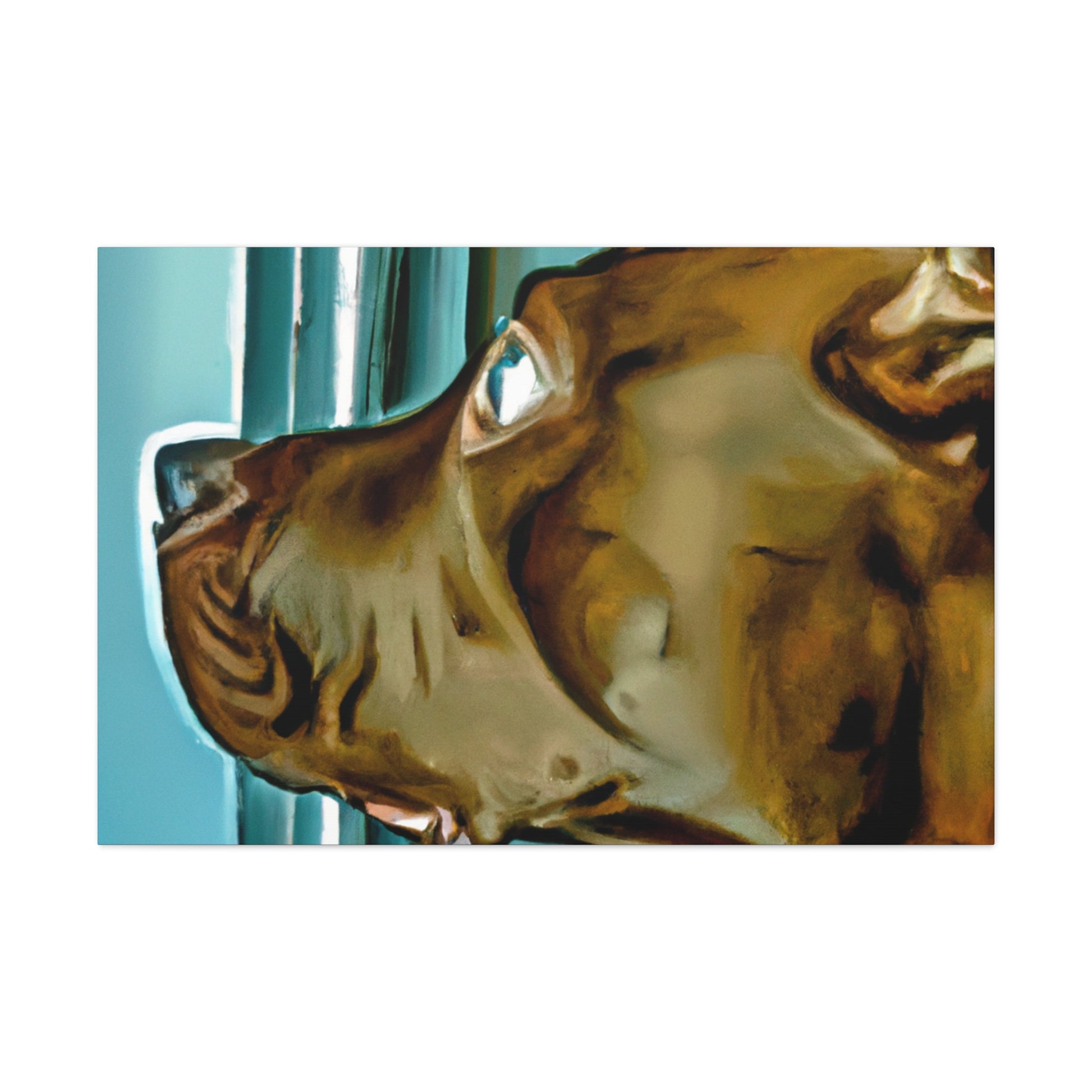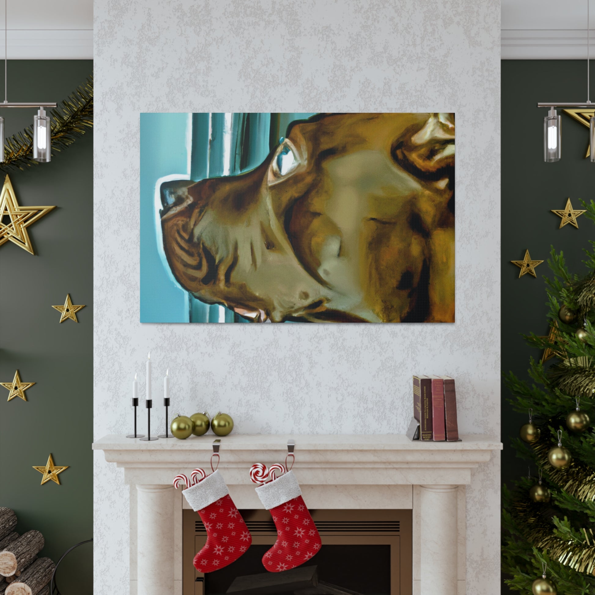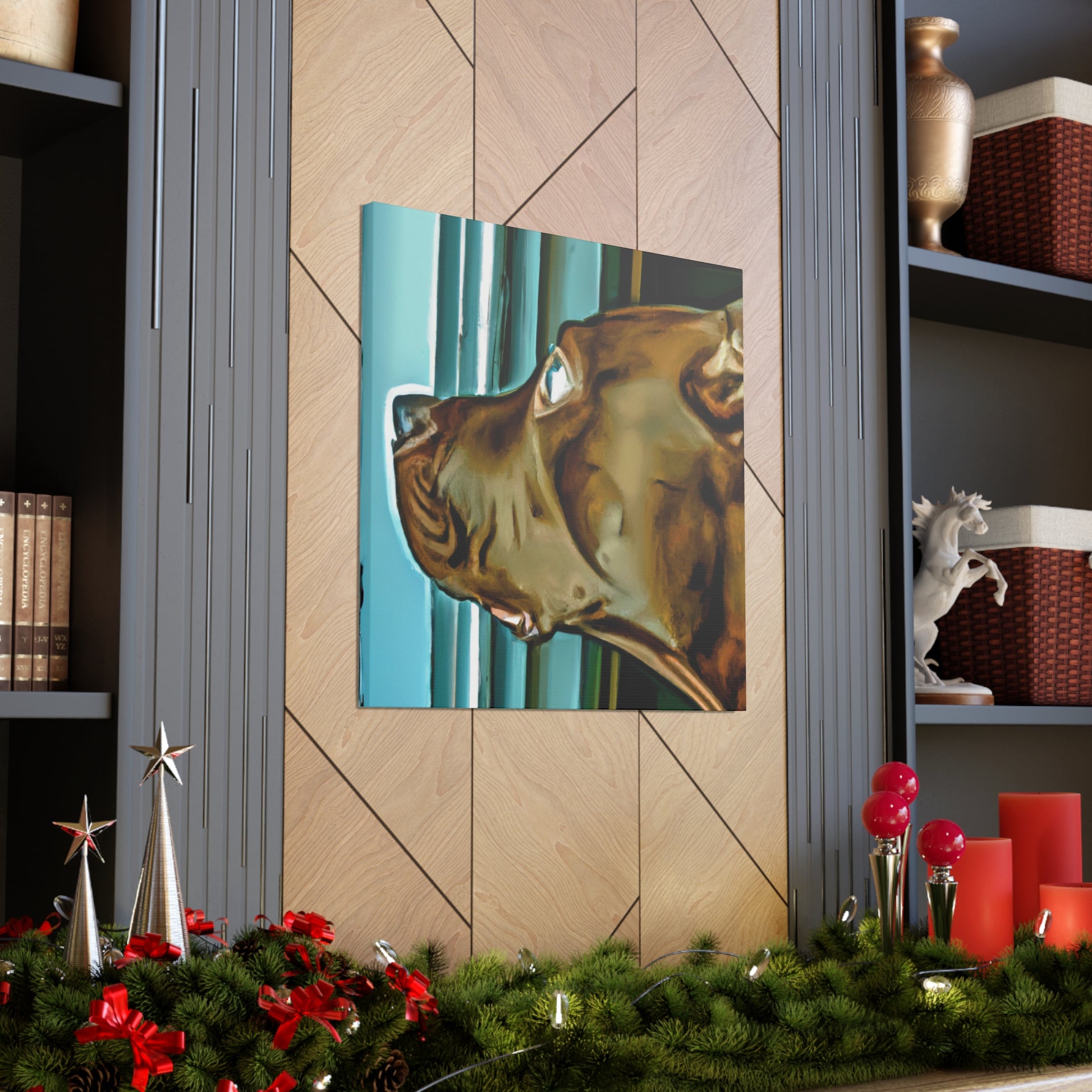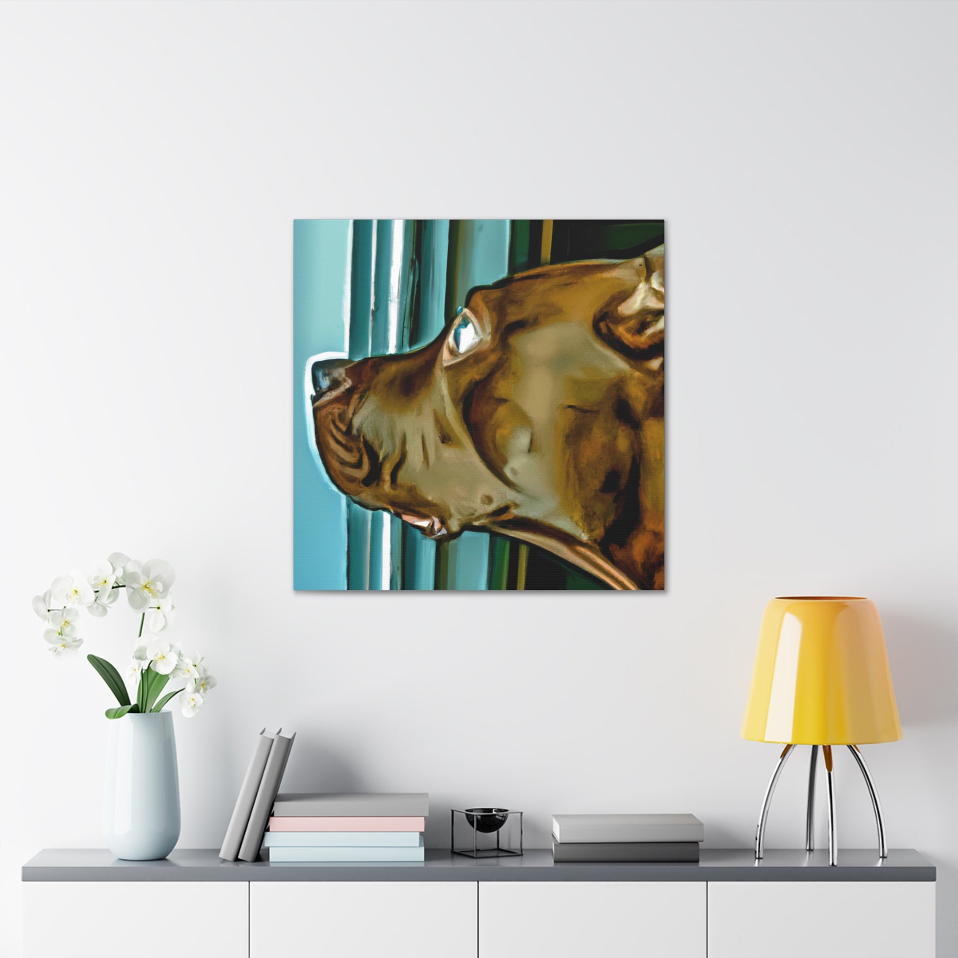 This abstract painting features a young brown pit bull with eyes full of life and longing, gazing out of a psychedelic window. Each element of the painting has been carefully designed and crafted to create an aesthetically pleasing and classy work of art. Let your guests be drawn in by the realism of the pup and mesmerized by its otherworldly elements. #puppy #pitbull #dog #canvas #painting #abstract #art #psychedelic #realistic #young #classy