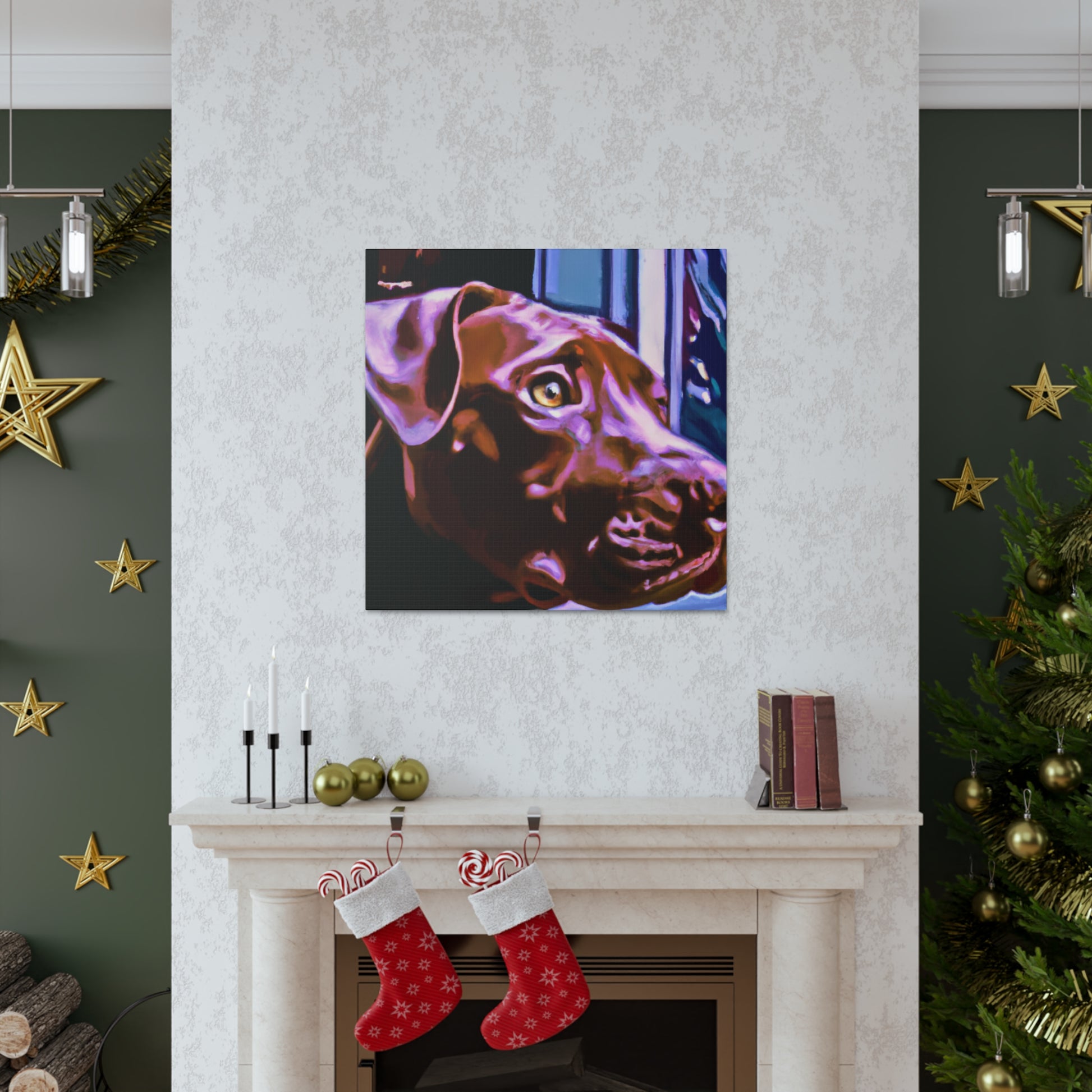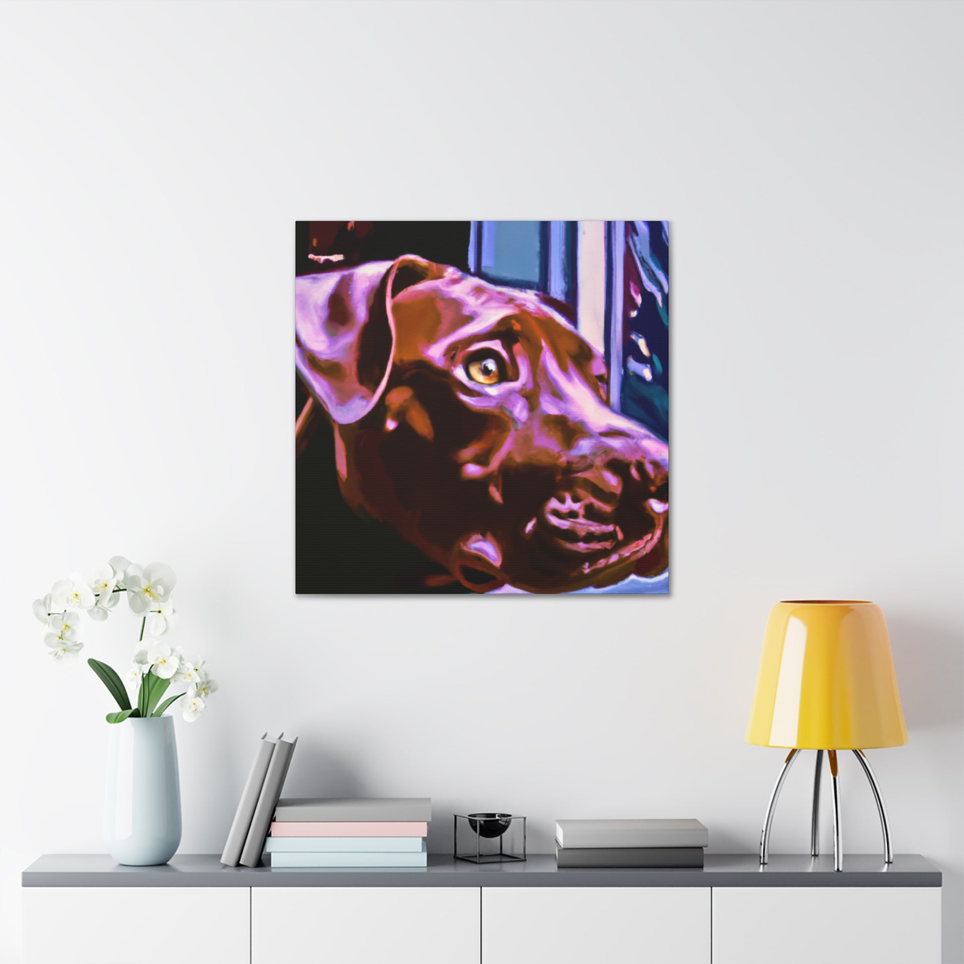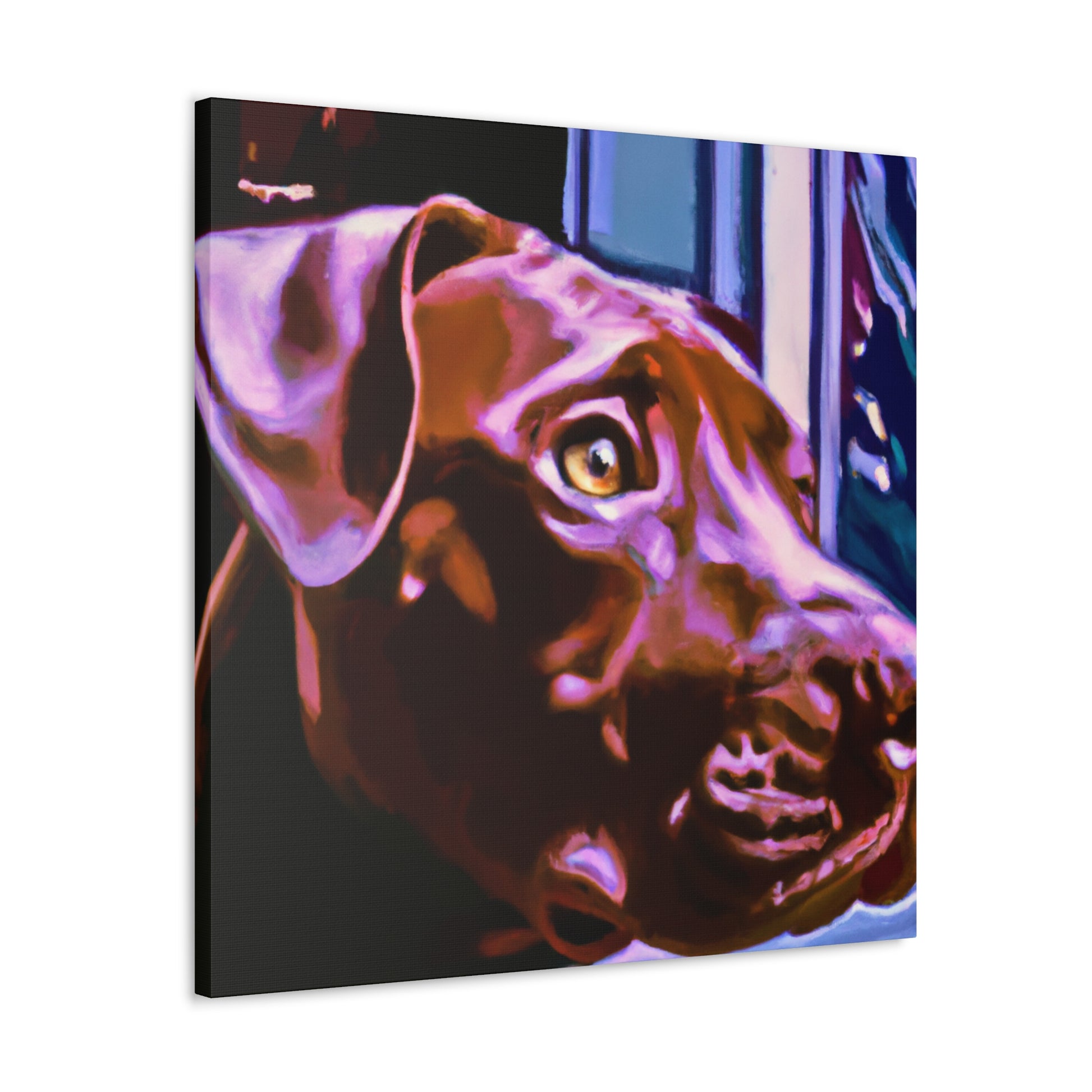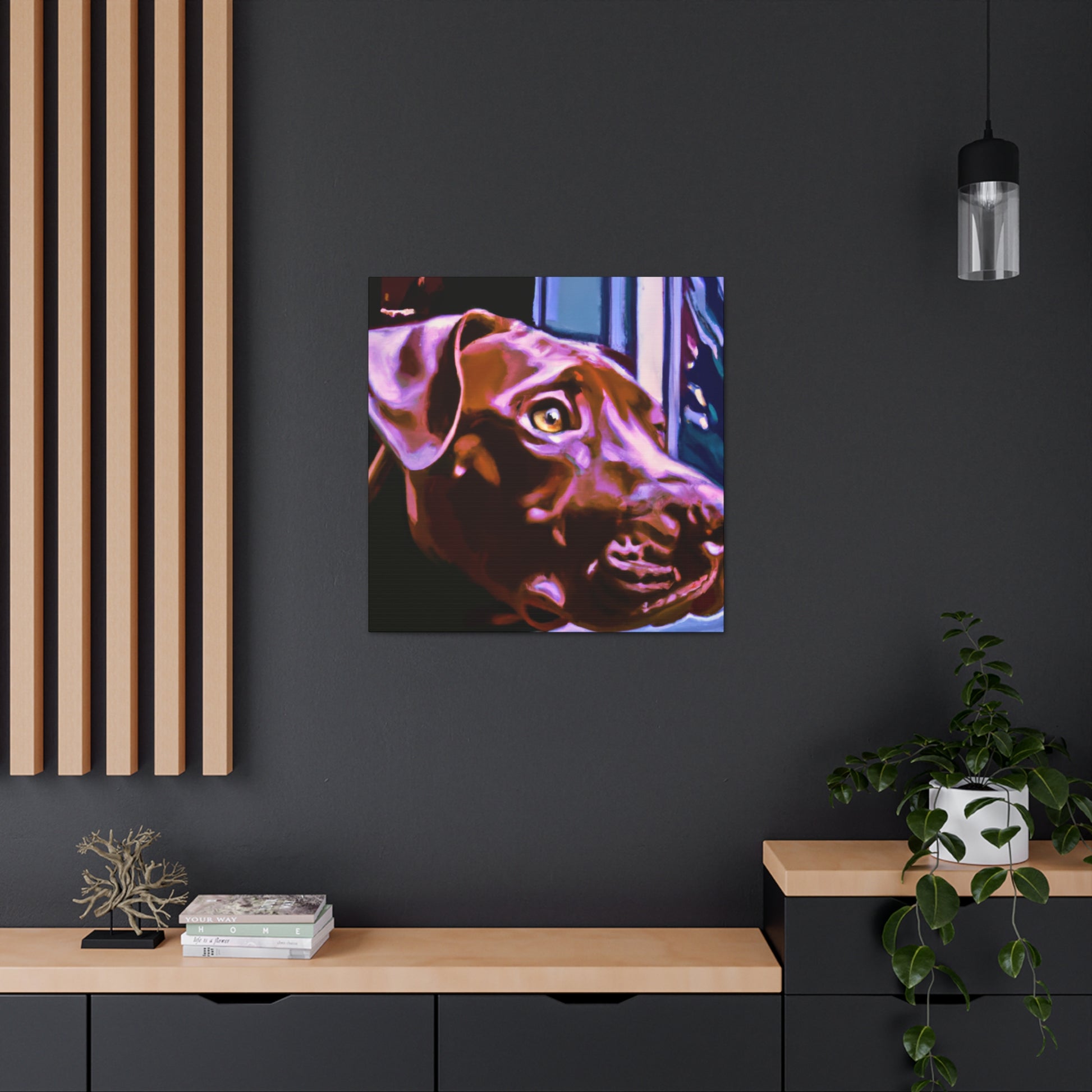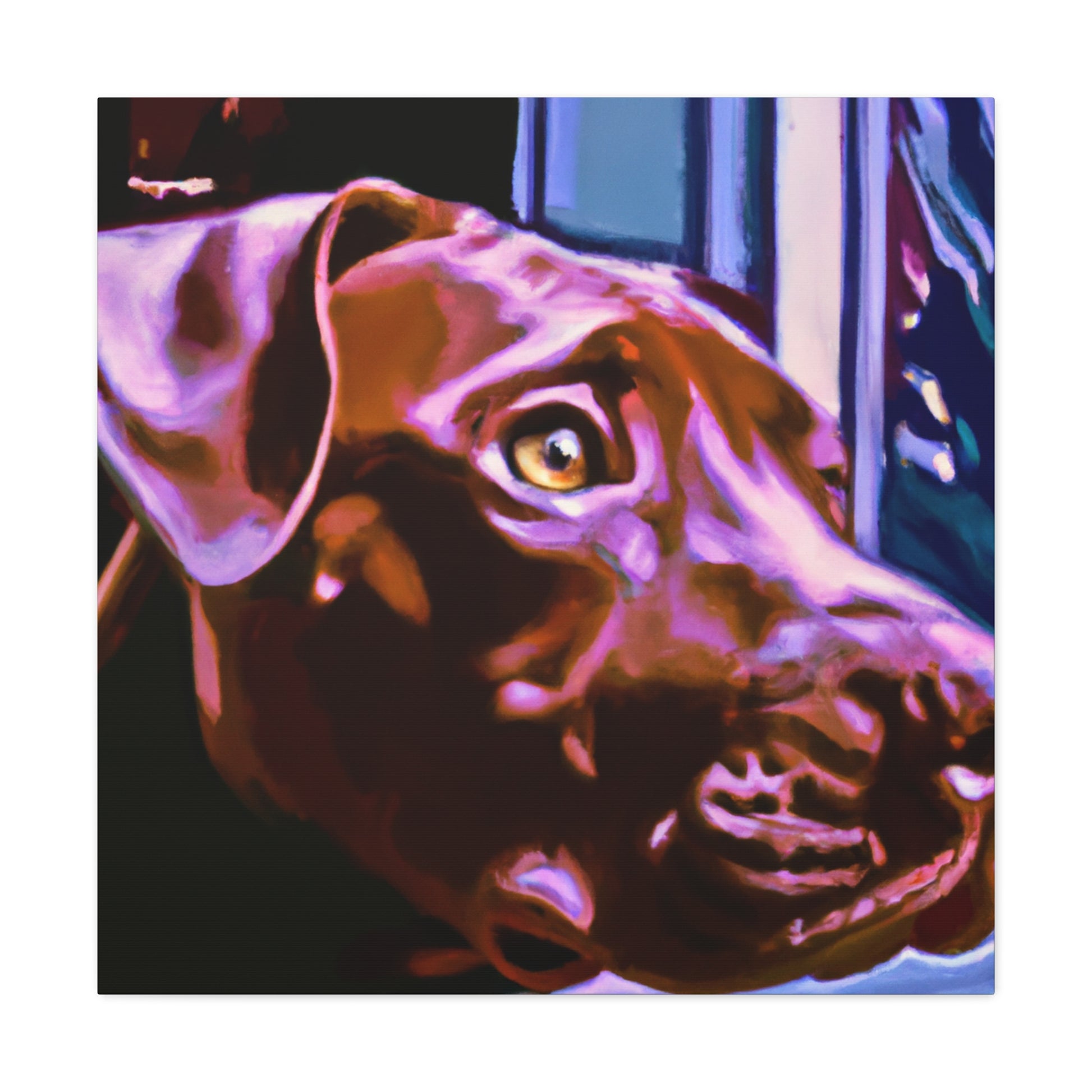 This modern and stylish abstract painting of a young brown pit bull is carefully crafted to bring life to the room. The dog looks longingly out the window, full of energy and spirit. While the dog is clear to see, the background is a vibrant arrangement of trippy colors that provide an eye-catching contrast. This unique painting is sure to turn heads and bring life to any space. #art #abstract #pittbull #doglove #windowview #abstractpainting #contrast #vibrant #energy #style #modern #unique