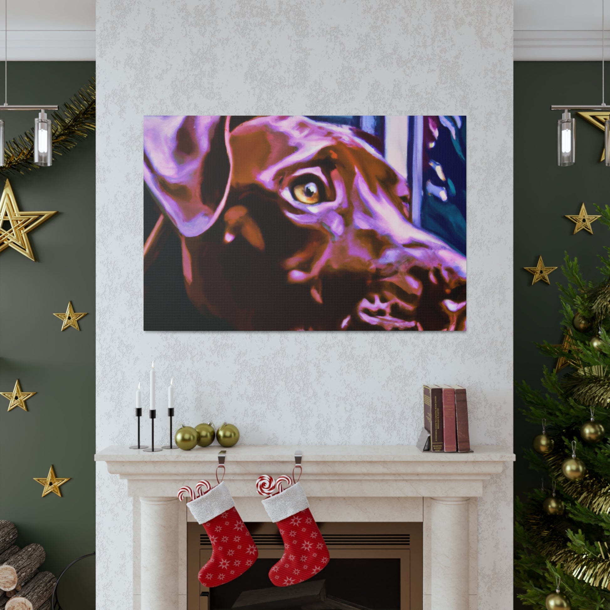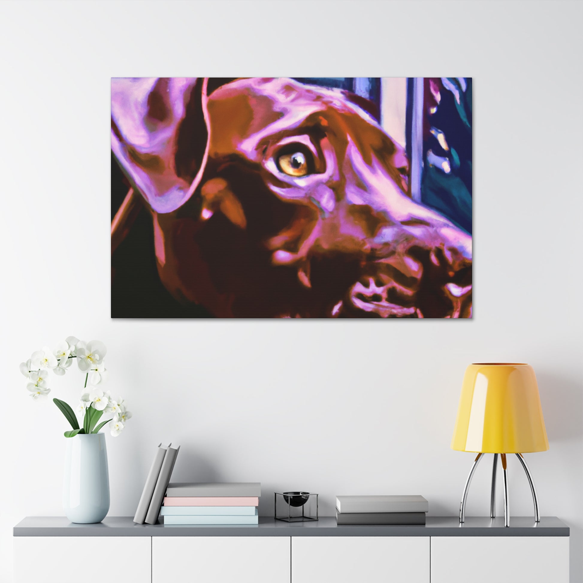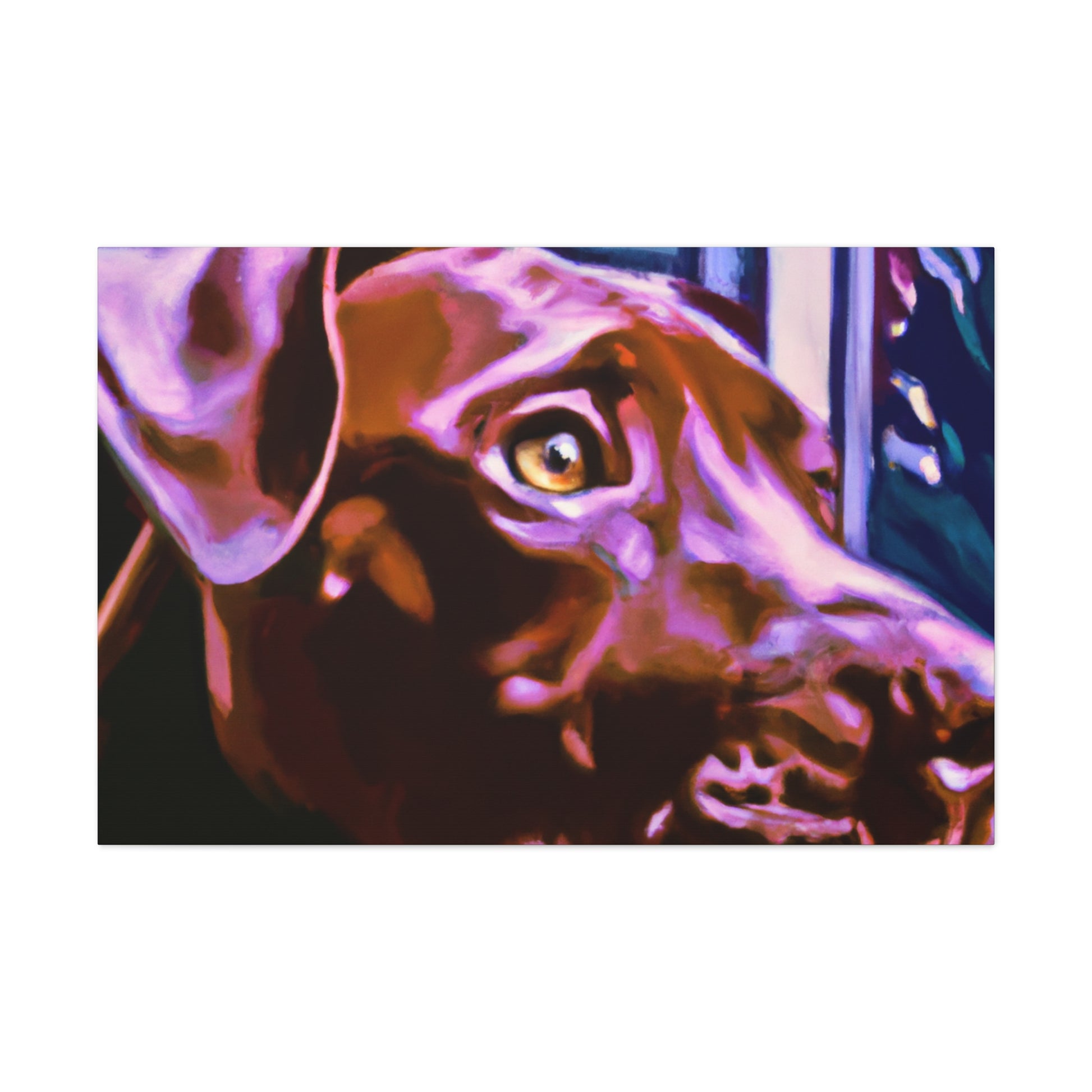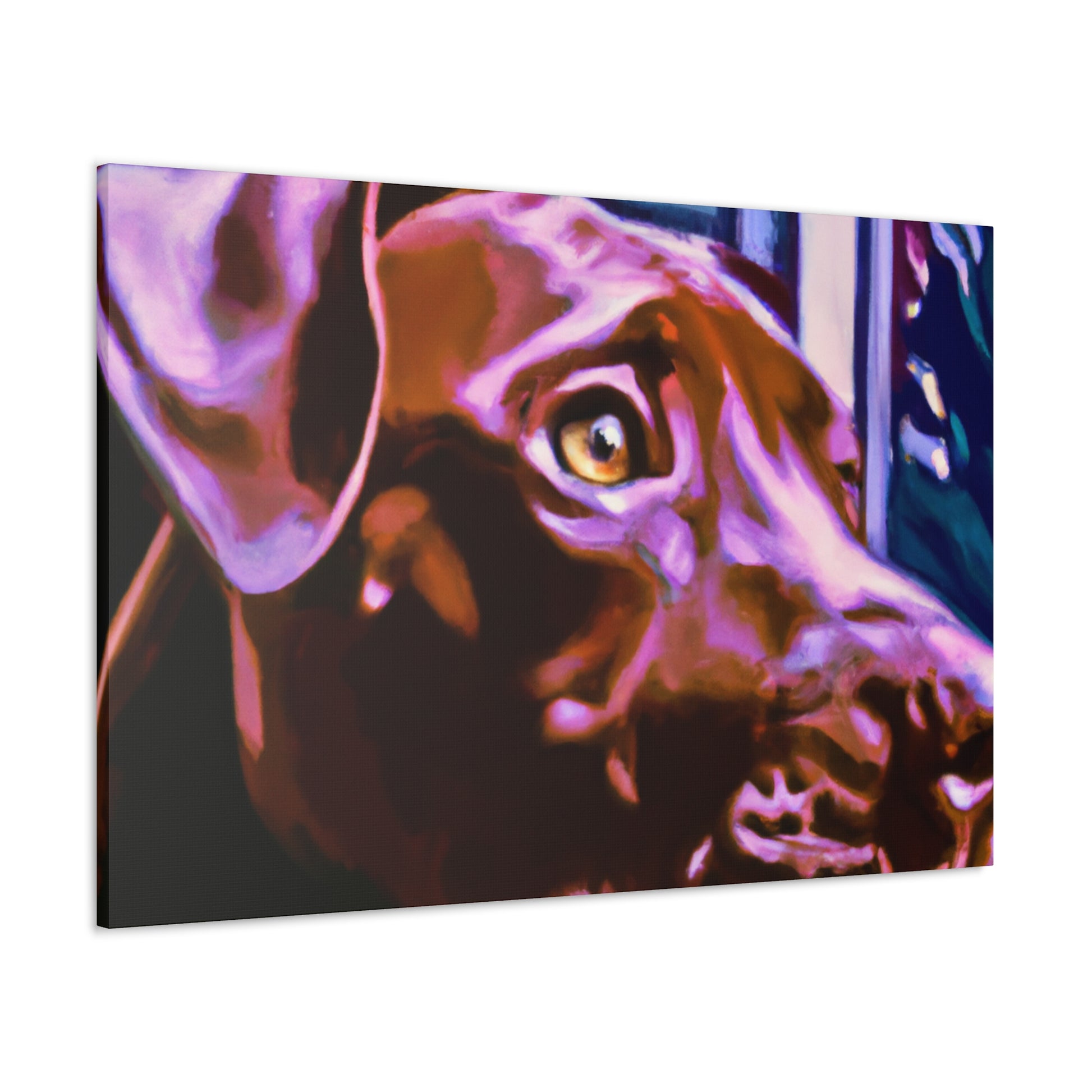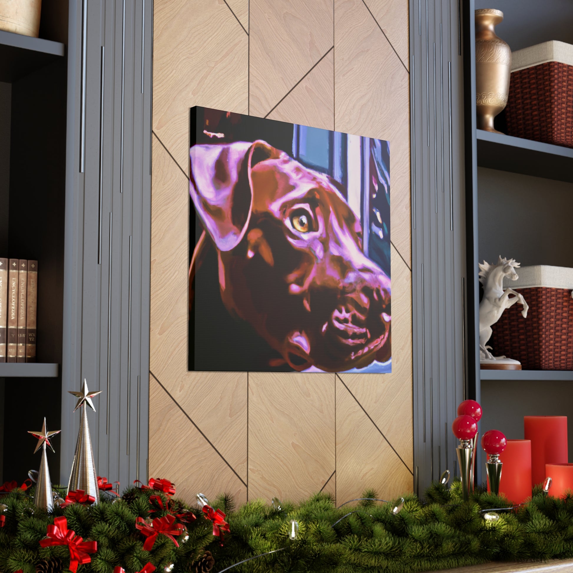 This modern and stylish abstract painting of a young brown pit bull is carefully crafted to bring life to the room. The dog looks longingly out the window, full of energy and spirit. While the dog is clear to see, the background is a vibrant arrangement of trippy colors that provide an eye-catching contrast. This unique painting is sure to turn heads and bring life to any space. #art #abstract #pittbull #doglove #windowview #abstractpainting #contrast #vibrant #energy #style #modern #unique