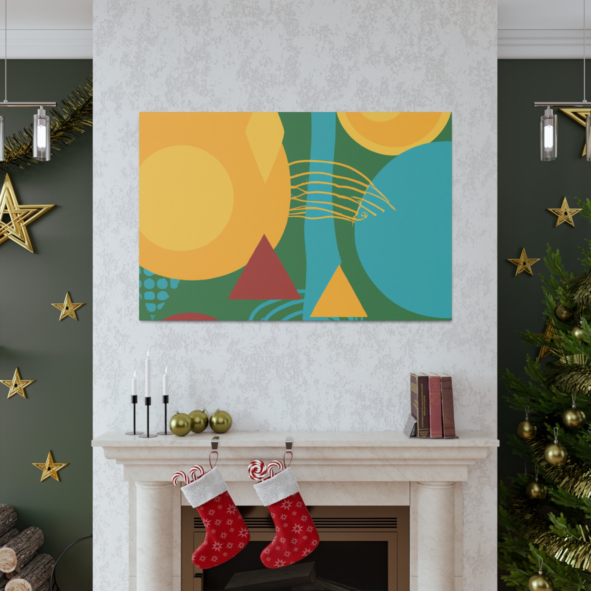 This vibrant abstract canvas brings cosmopolitan color and energy to any living space. A carefully composed geometric pattern in cool tones of blue, green, and yellow will draw attention and refresh your space. Perfect for injecting a fun, modern element to any decor, this canvas will make and ideal accent in any room. #abstractcanvas #abstractart #geometricpattern #abstractgeometric #modernart #cooltones #blue #green #yellow #canvas #homedecor