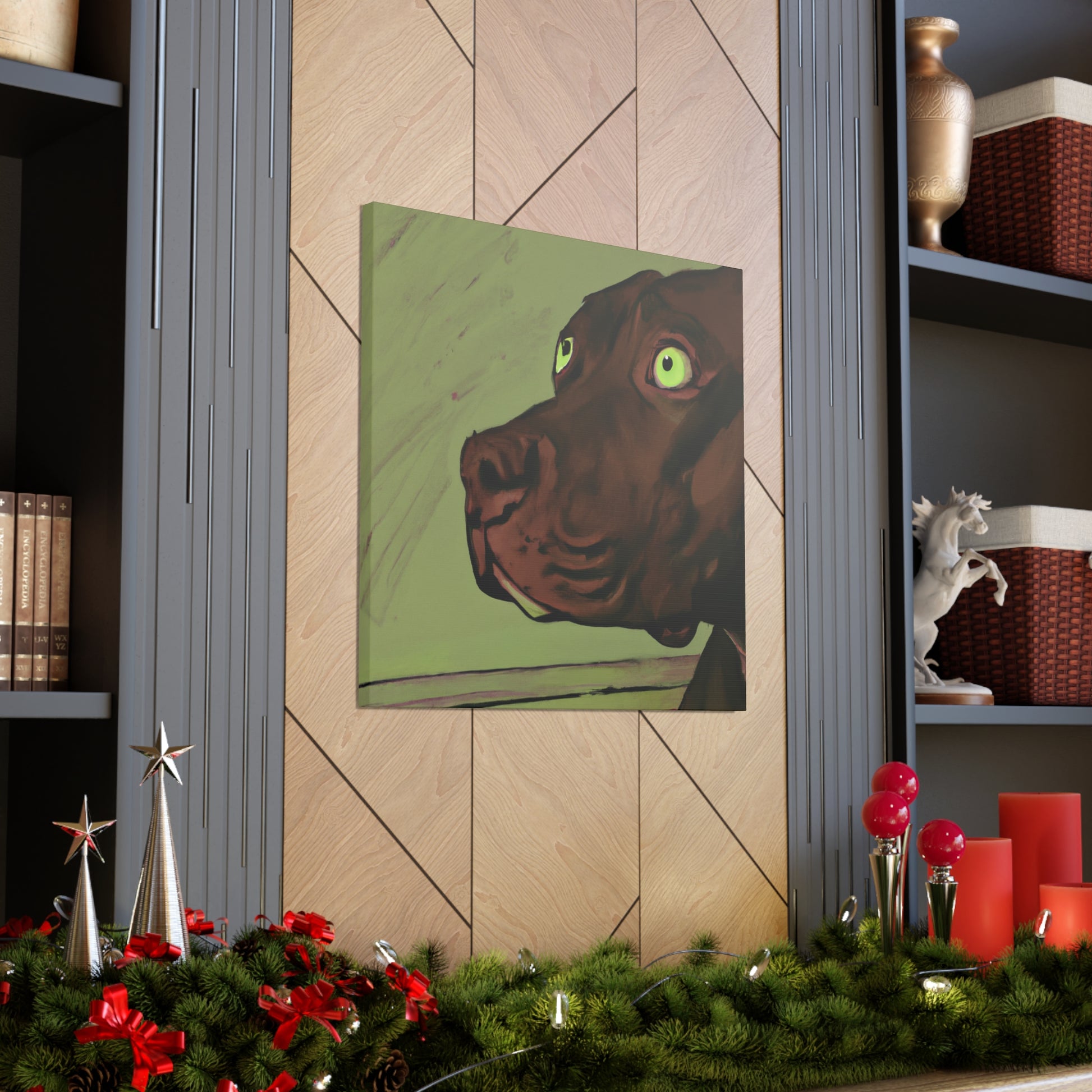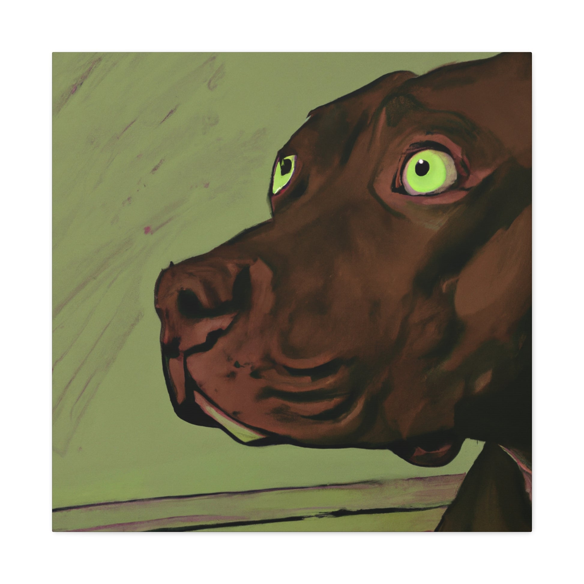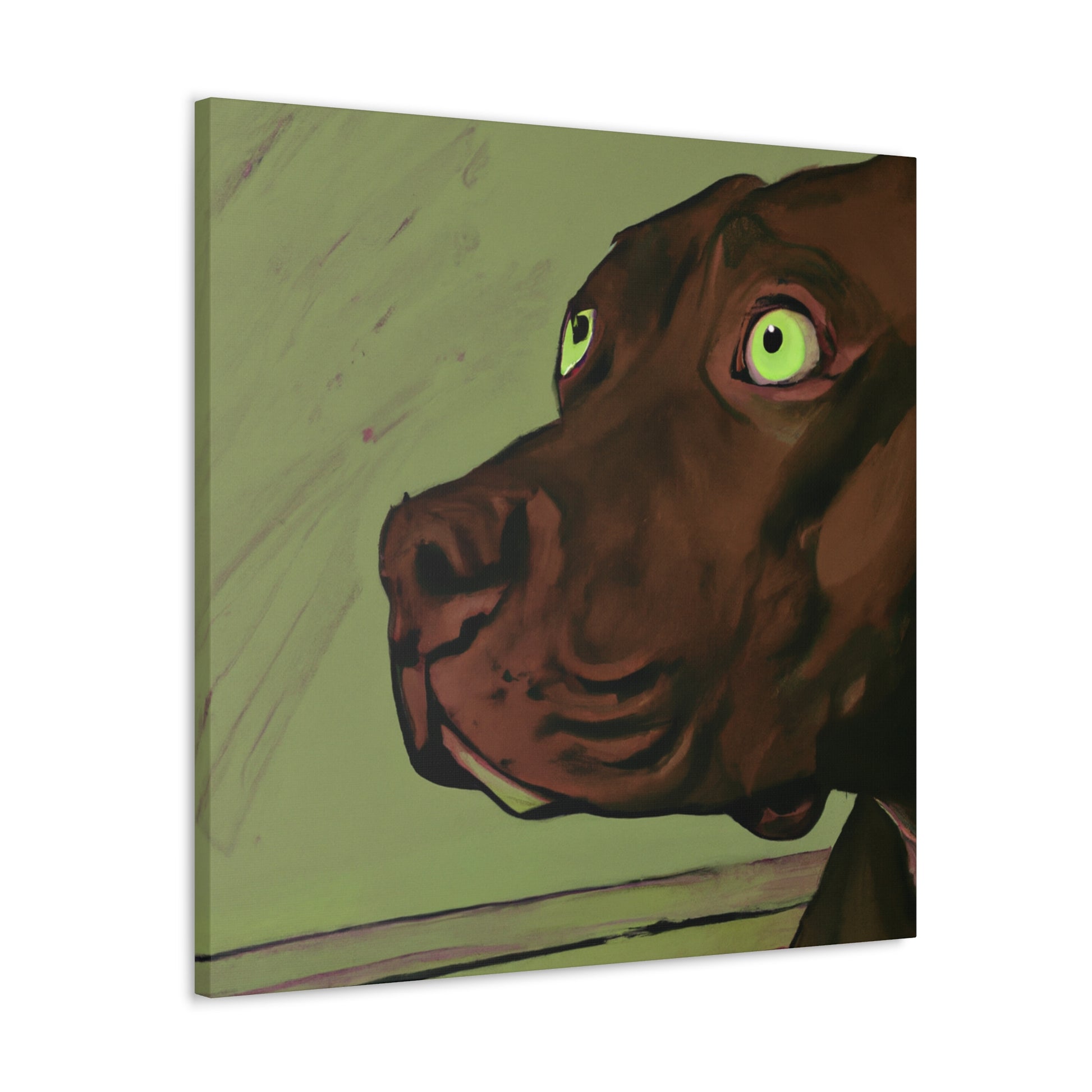 This canvas painting is a vivid representation of a young, soulful brown pit bull looking out the window with intense emotion and life in his eyes. The background is an abstract, psychedelic pattern of warm hues and shapes, both calming and captivating. The vivid contrast between the brown dog and the surrounding colors makes this painting a unique and incredibly eye-catching piece. #abstractpainting #abstract #canvaspainting #brownpittbull #psychedelic #hues #captivating #unique #soulful #warmcolors #contrast #soulfulart