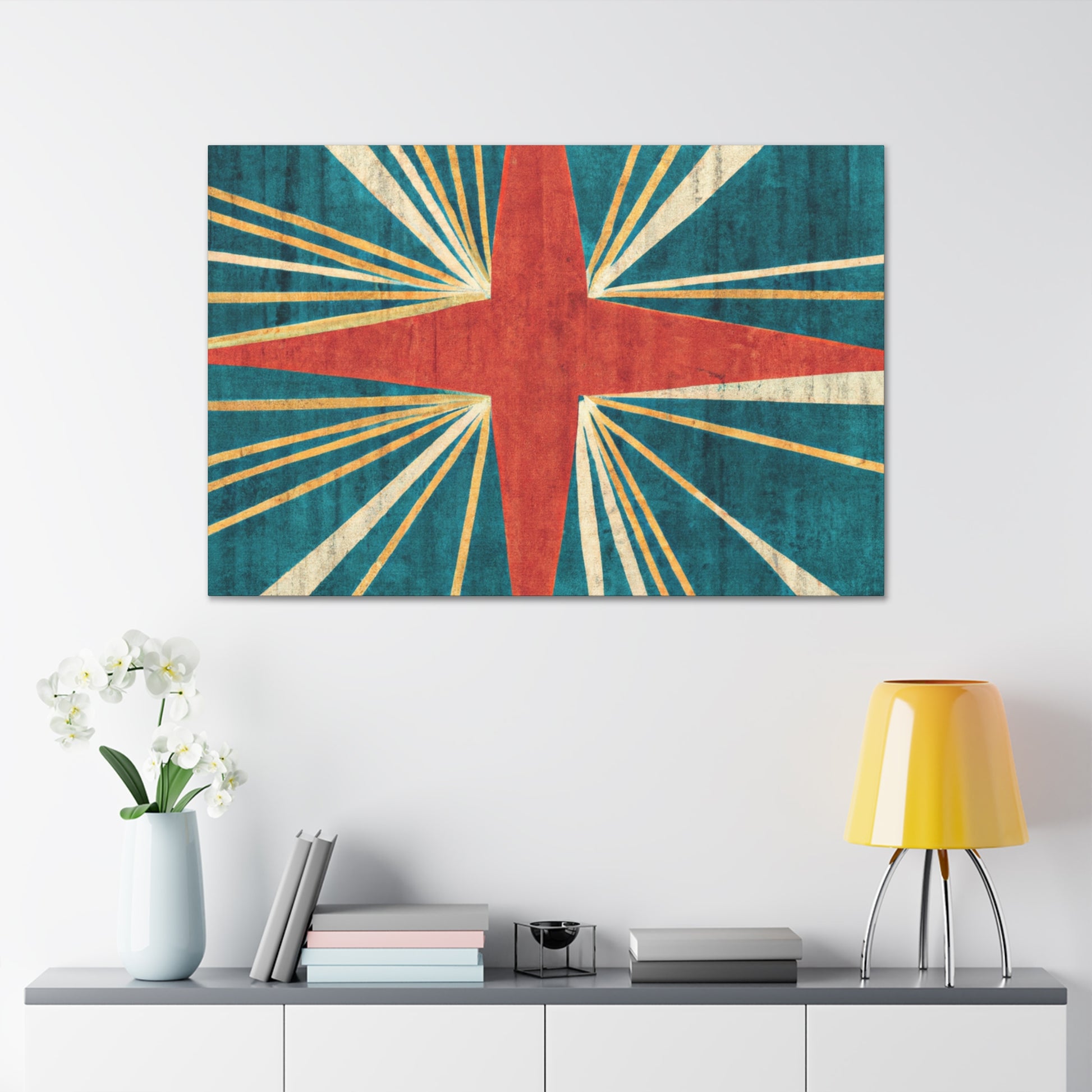 Take artistry to your living room with this Digital Art print of a patterned geometry painting. The bold and striking composition of the painting in colour combinations of yellow and blue will add a new dimension to your walls. Enjoy maximum resolution and corner to corner accuracy with our special premium lustre canvases. Bring a touch of creative sophistication to your décor and spruce up your home instantly! #digitalart #printart #canvaspainting #geometrypainting #livingroomdecor #patternedpainting #homedecor #artforsale #modernart #paintingprint #abstractstyleart