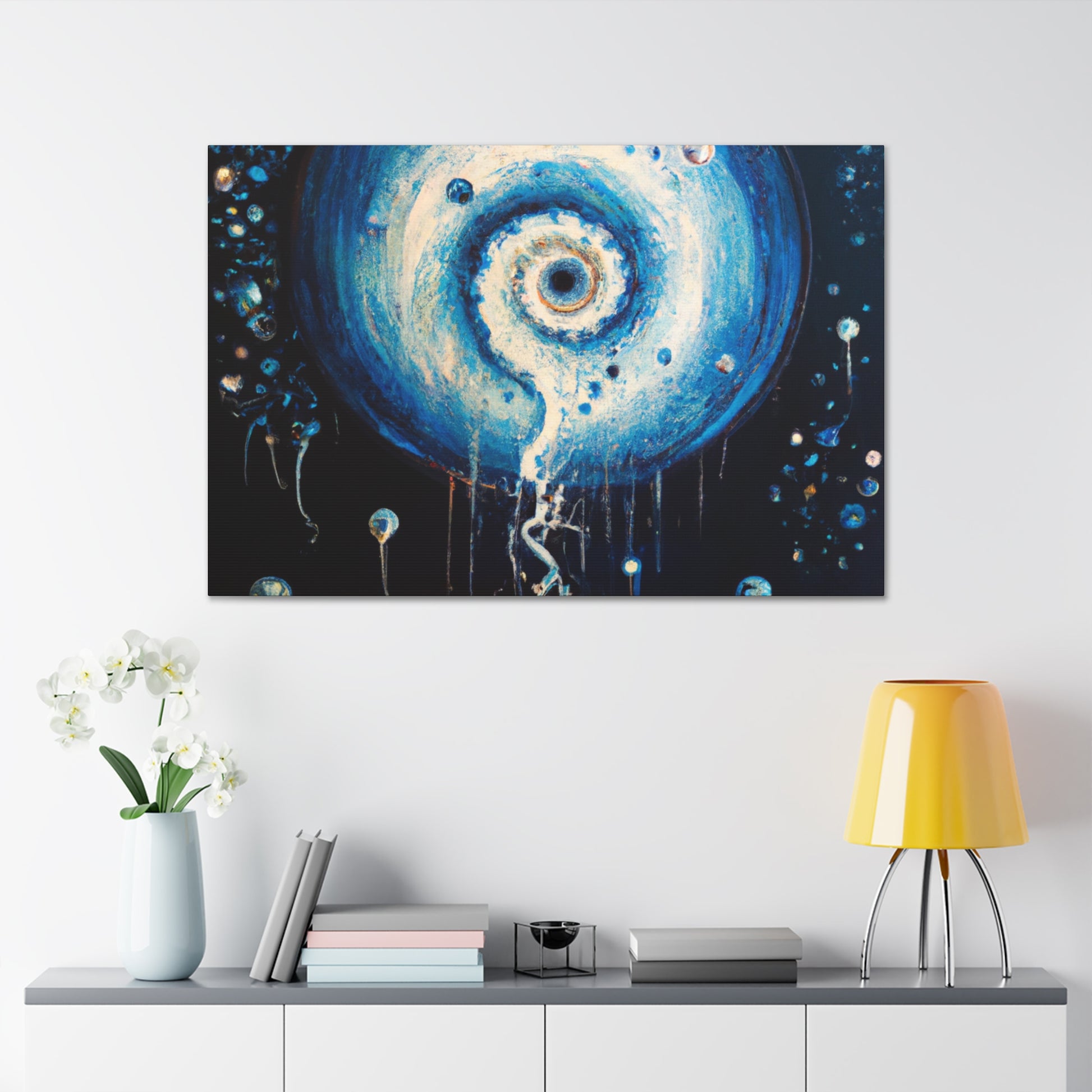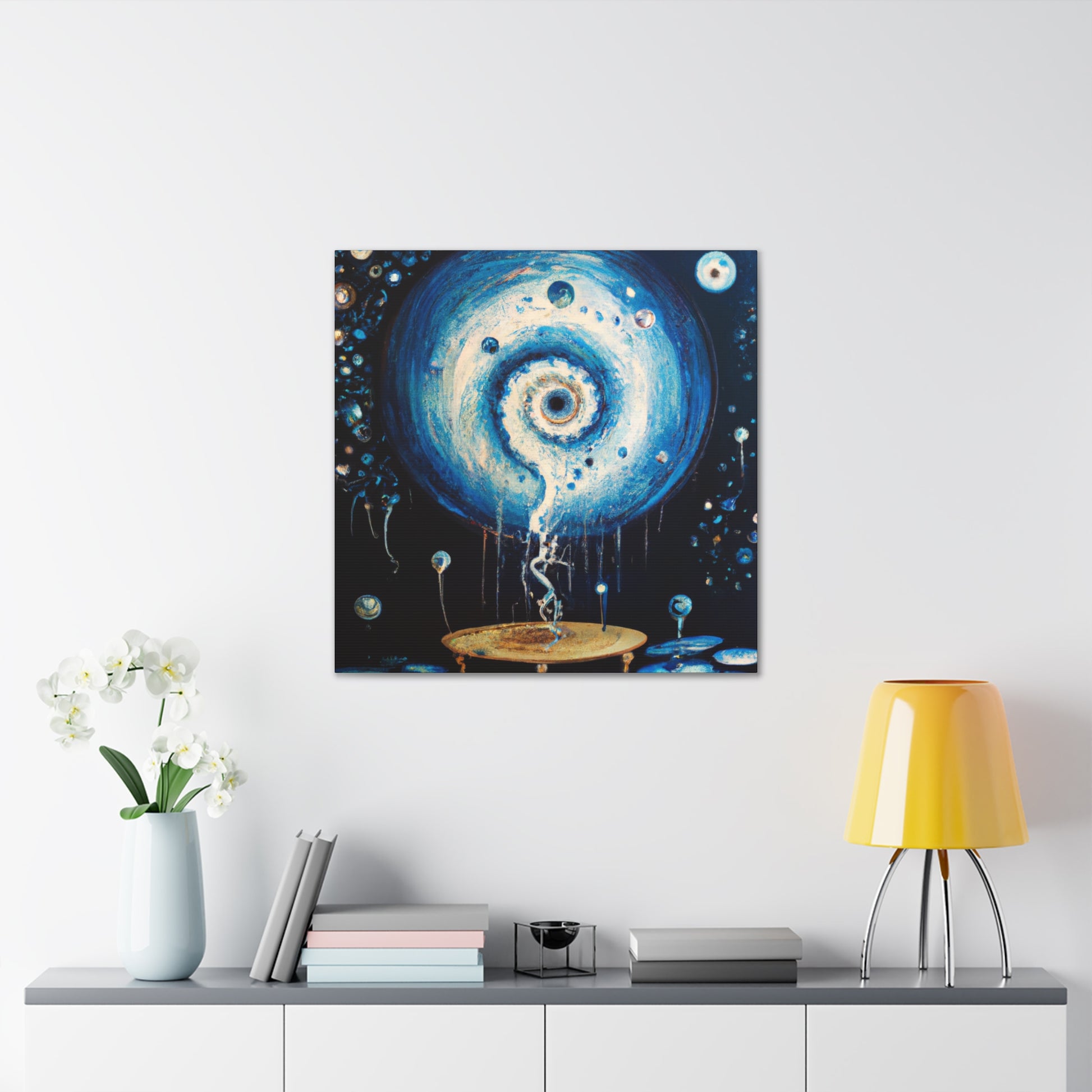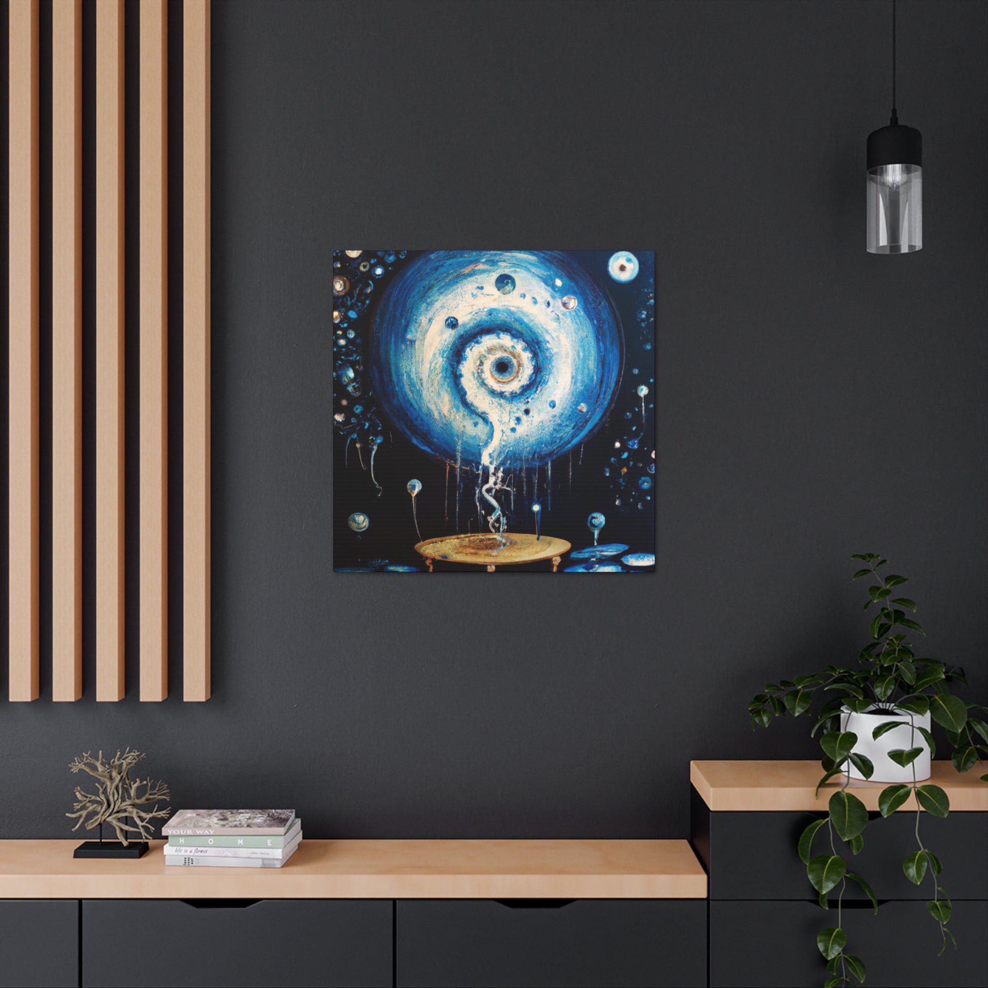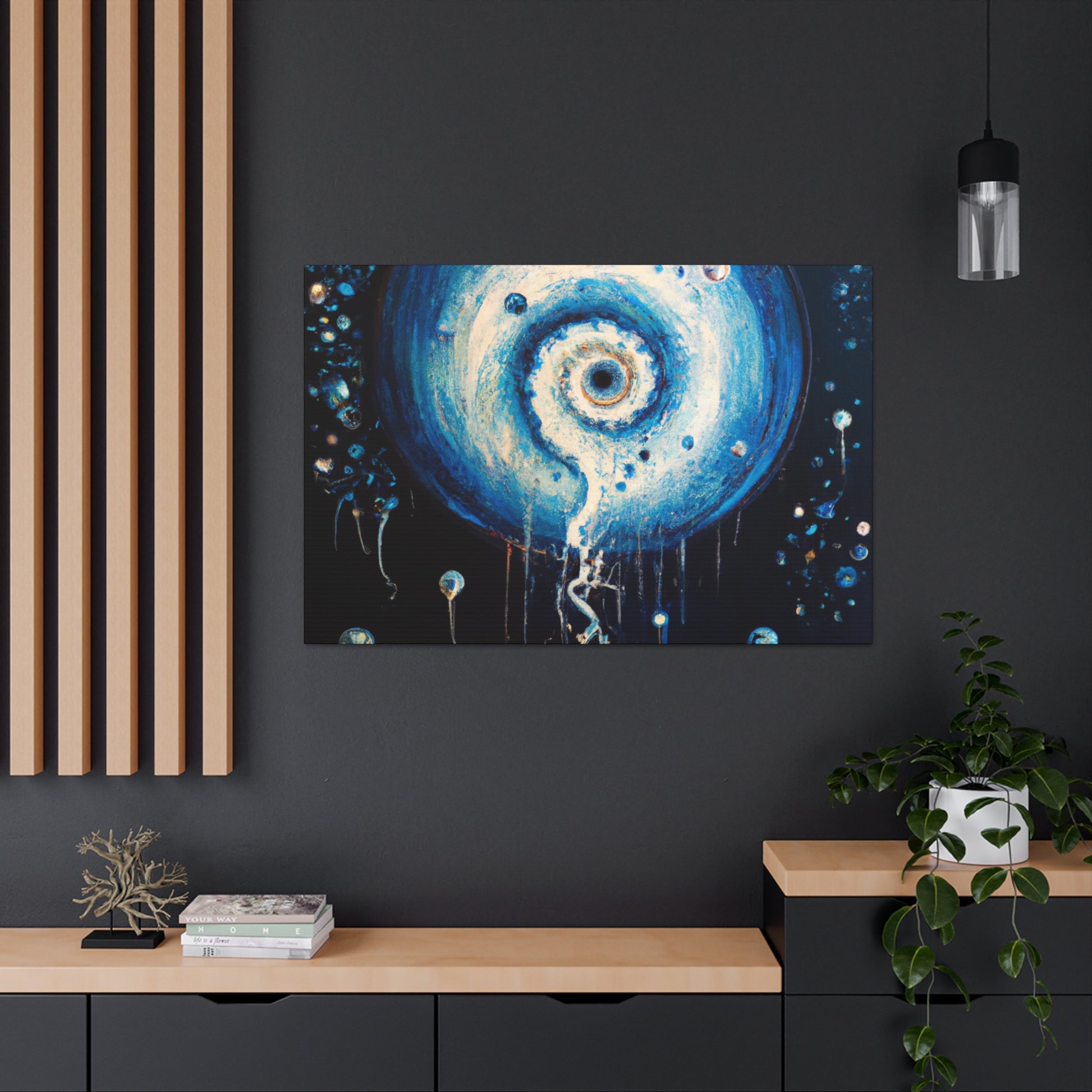 This trippy digital painting will bring an extra element of creativity and vibrancy to your living room. The painting will evoke a unique and surreal atmosphere, and will no doubt be the talking point of many conversations and gatherings. Coming in a bold and eye-catching canvas, it’s sure to be an inspiring addition to your home. #digitalart #painting #interiordesign #trippy #surreal #bold #creativity #home #livingroom #decor #vibrant