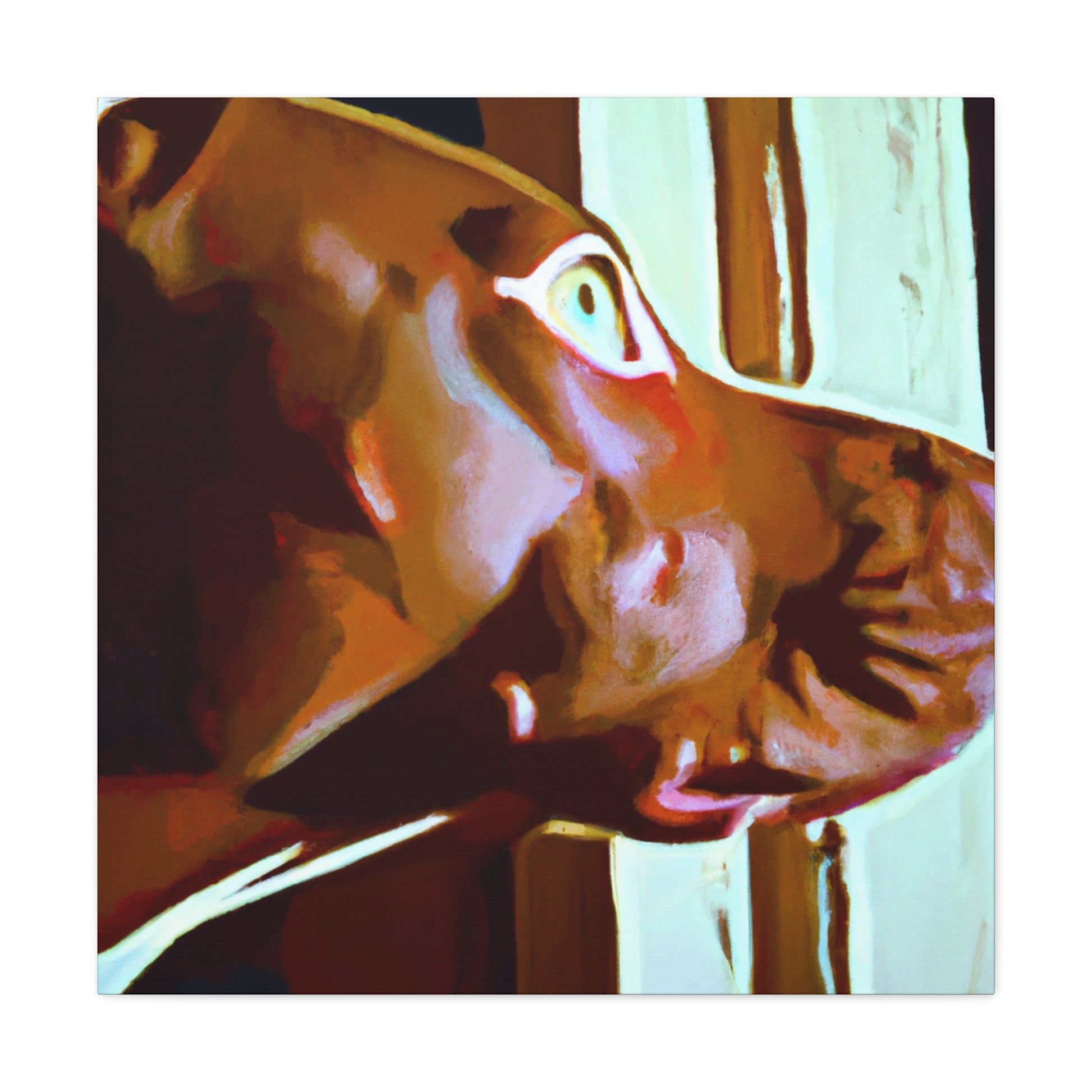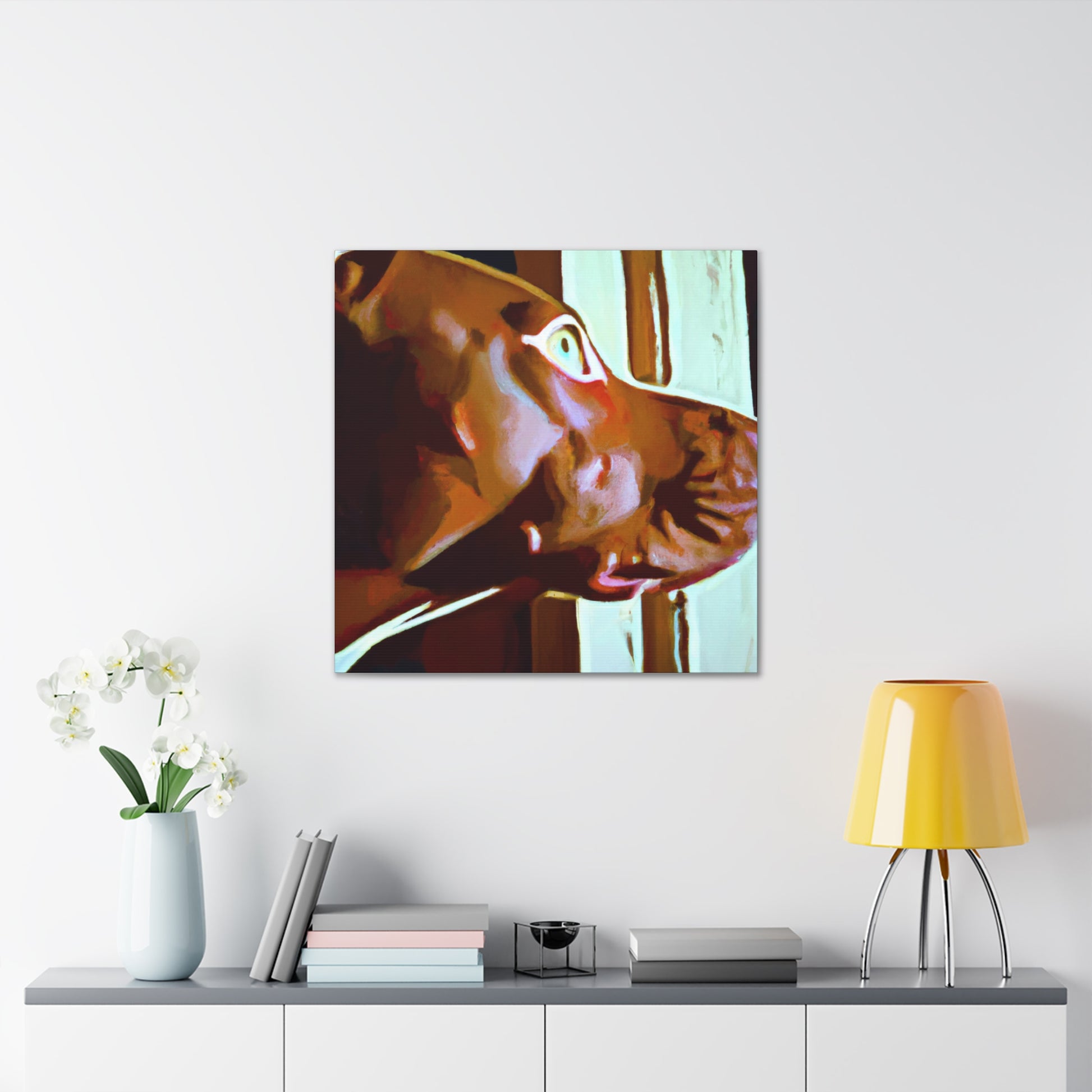 This trippy abstract painting of a young brown pit bull looking longingly out the window offers an interesting perspective of life with its vivid colors and surreal shapes. The pit bull has an alive, mischievous spark in his eyes that contrasts the mysteriousness of the backdrop. This piece will bring a subtle, classy touch of vibrancy to your home. #abstractpainting #paint #trippyart #art #doglovers #dogpainting #pittbull #brown #window #vibrant #surreal #oilpainting #canvas