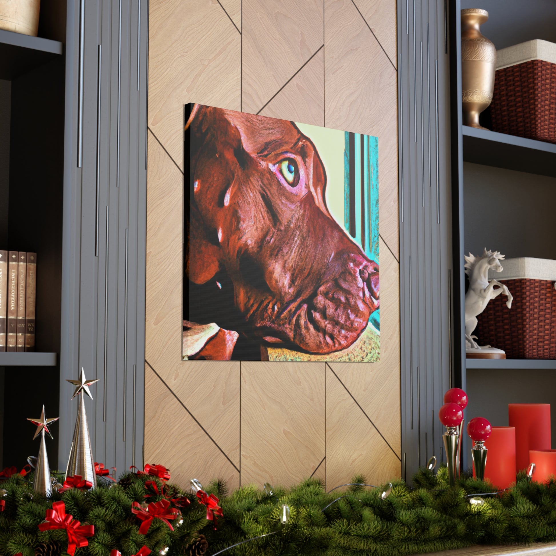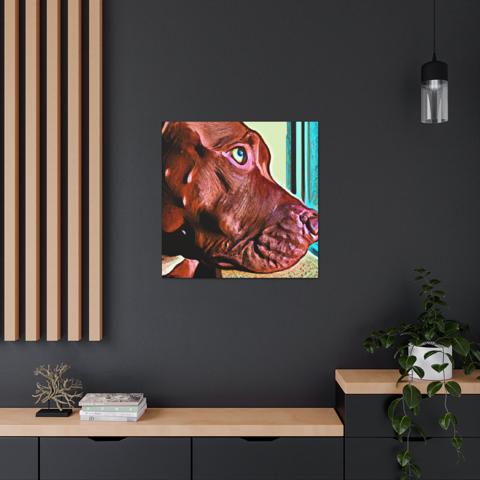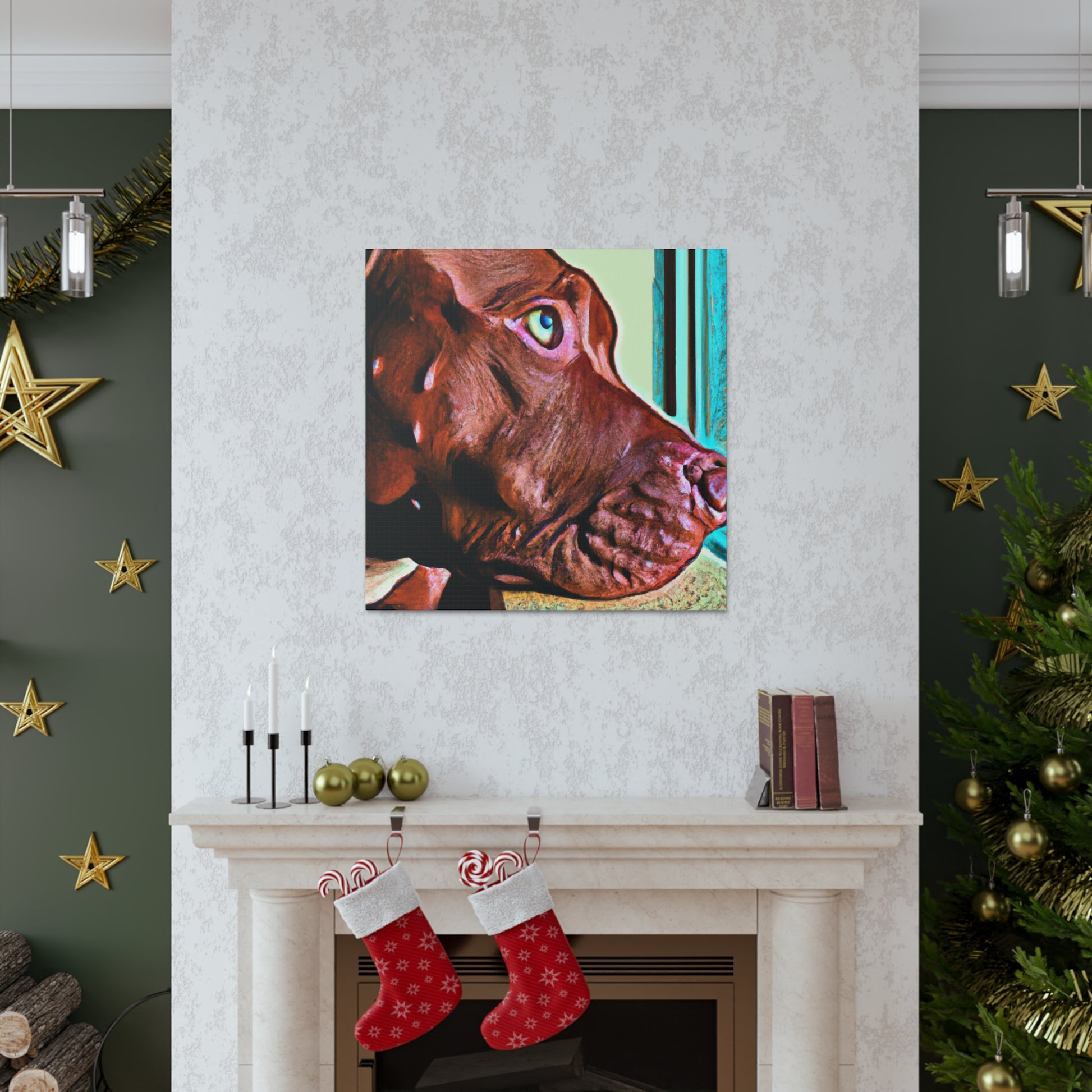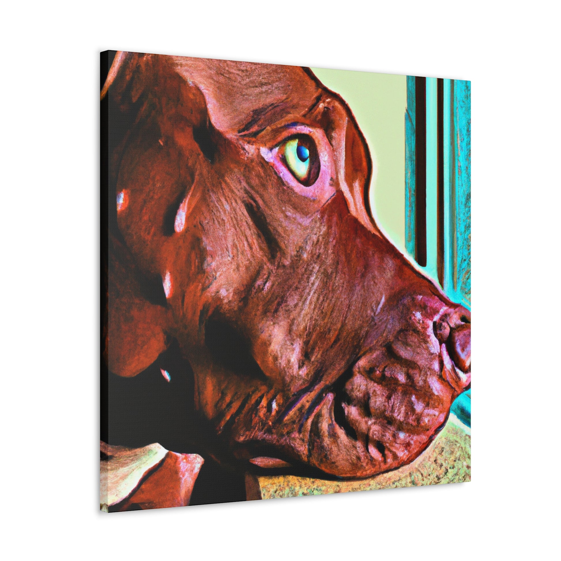 This stunning abstract canvas of a young brown pitbull shows a mesmerizing gaze of life and longing. With hues of blue, pink, and yellow contrasting the coffee brown of the pup, this artwork's deep meaningfulness is seen in its unique and funky expression. Get this one-of-a-kind art piece for your space and bring a captivating atmosphere into your home. #Painting #Abstract #Dogs #Art #Canvas #Decor #Young #AbstractArt #Home #Pitbull #Life #Mesmerizing
