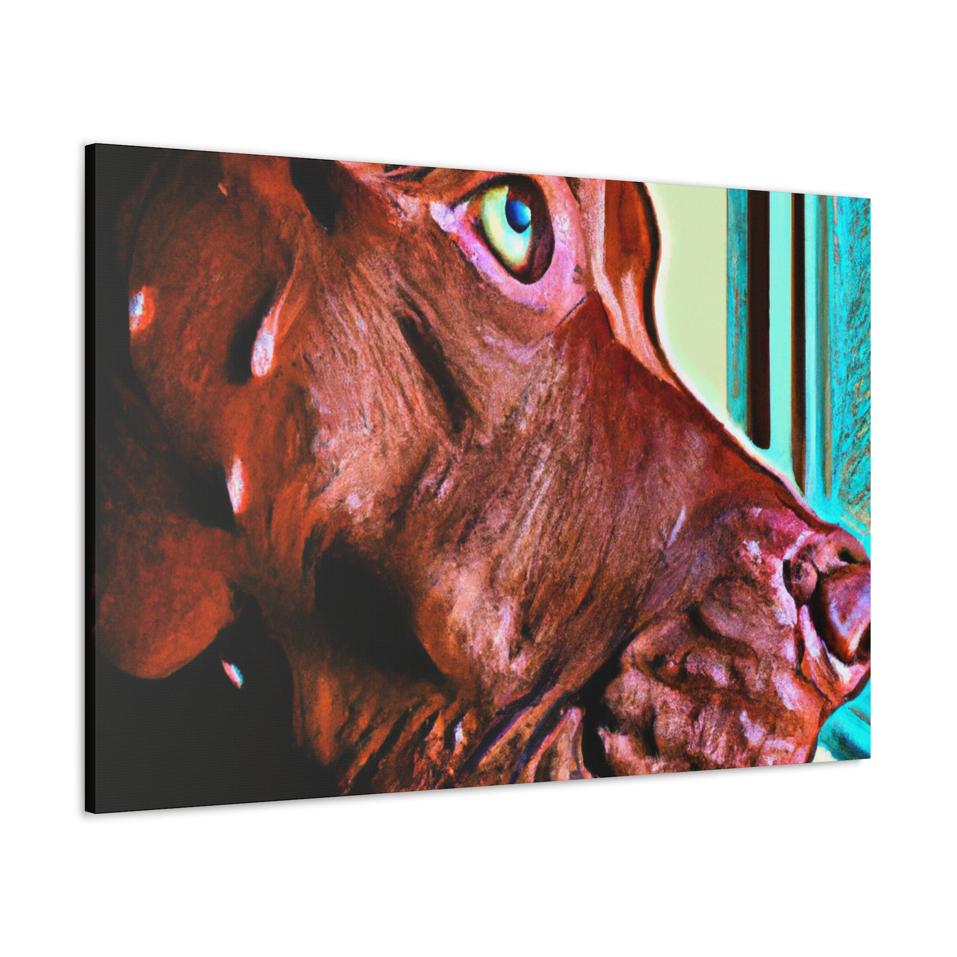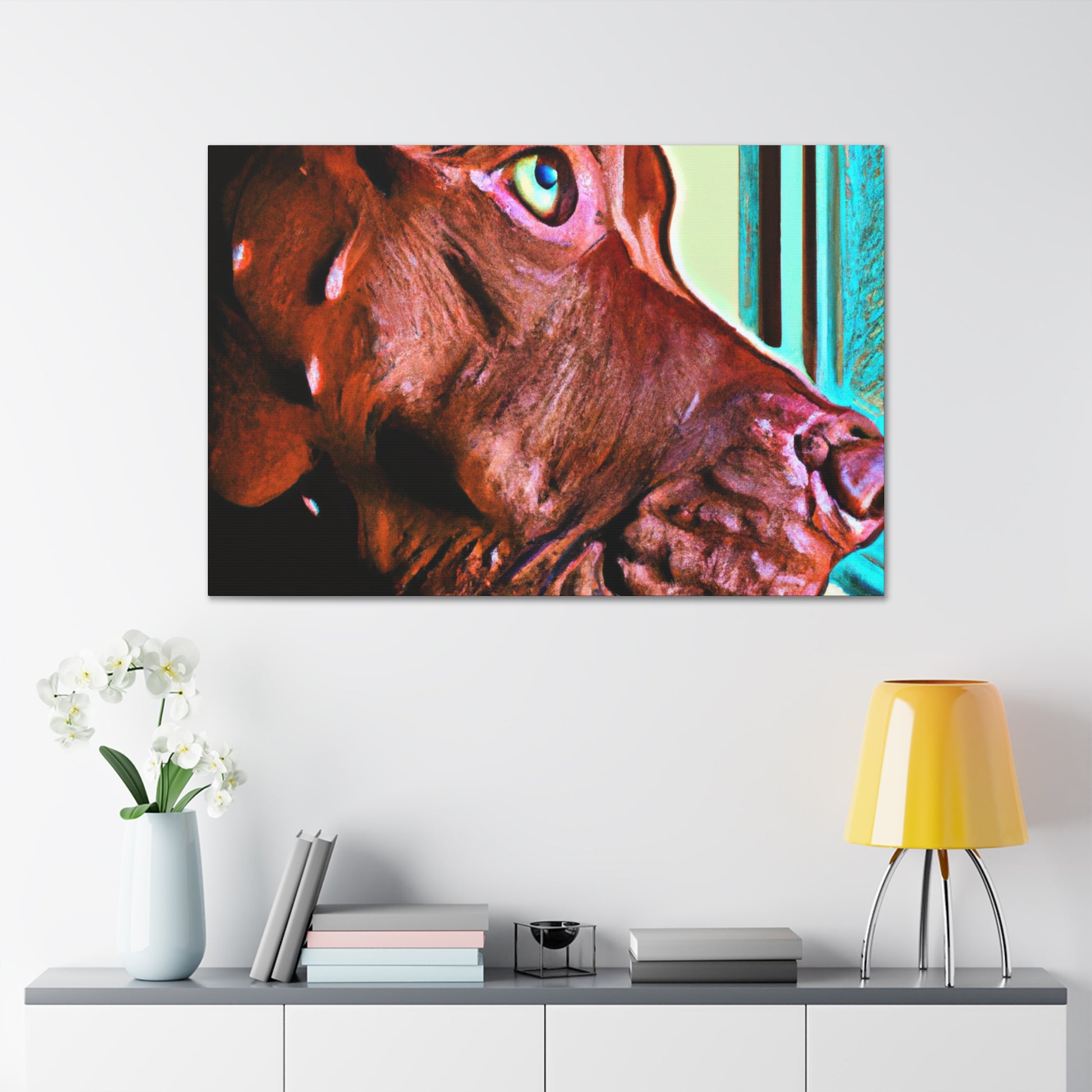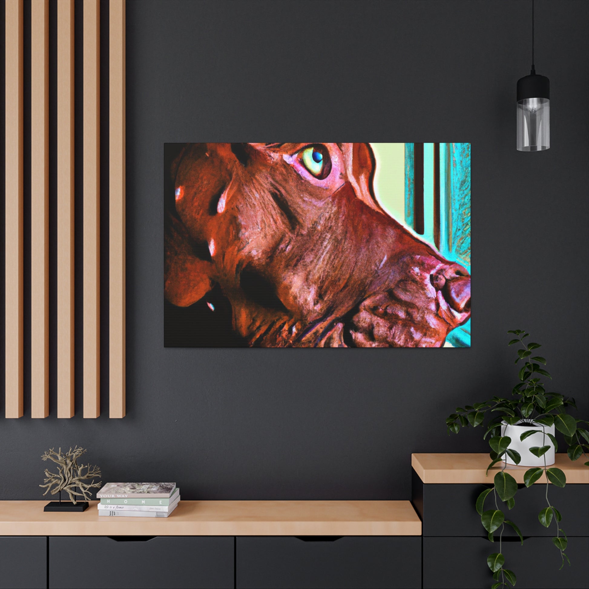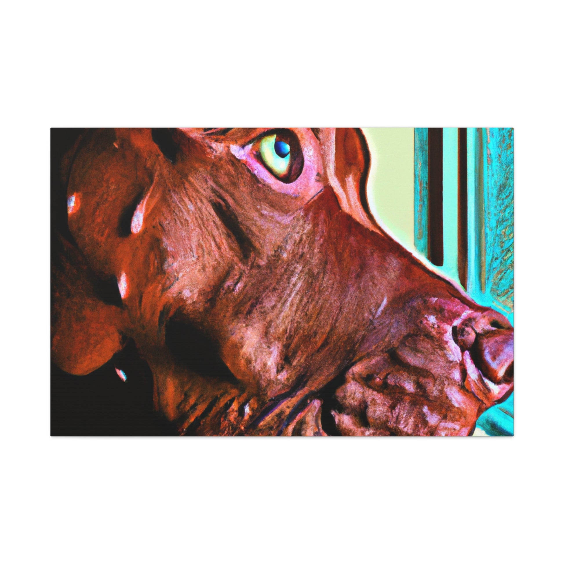 This stunning abstract canvas of a young brown pitbull shows a mesmerizing gaze of life and longing. With hues of blue, pink, and yellow contrasting the coffee brown of the pup, this artwork's deep meaningfulness is seen in its unique and funky expression. Get this one-of-a-kind art piece for your space and bring a captivating atmosphere into your home. #Painting #Abstract #Dogs #Art #Canvas #Decor #Young #AbstractArt #Home #Pitbull #Life #Mesmerizing