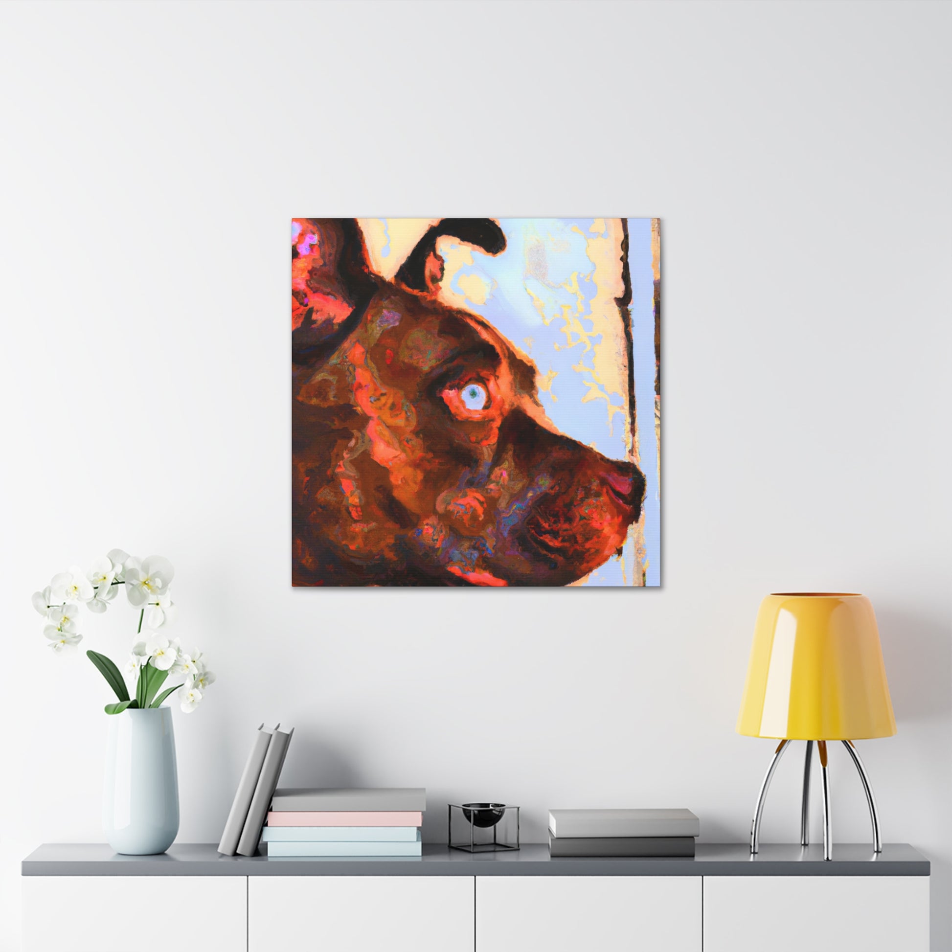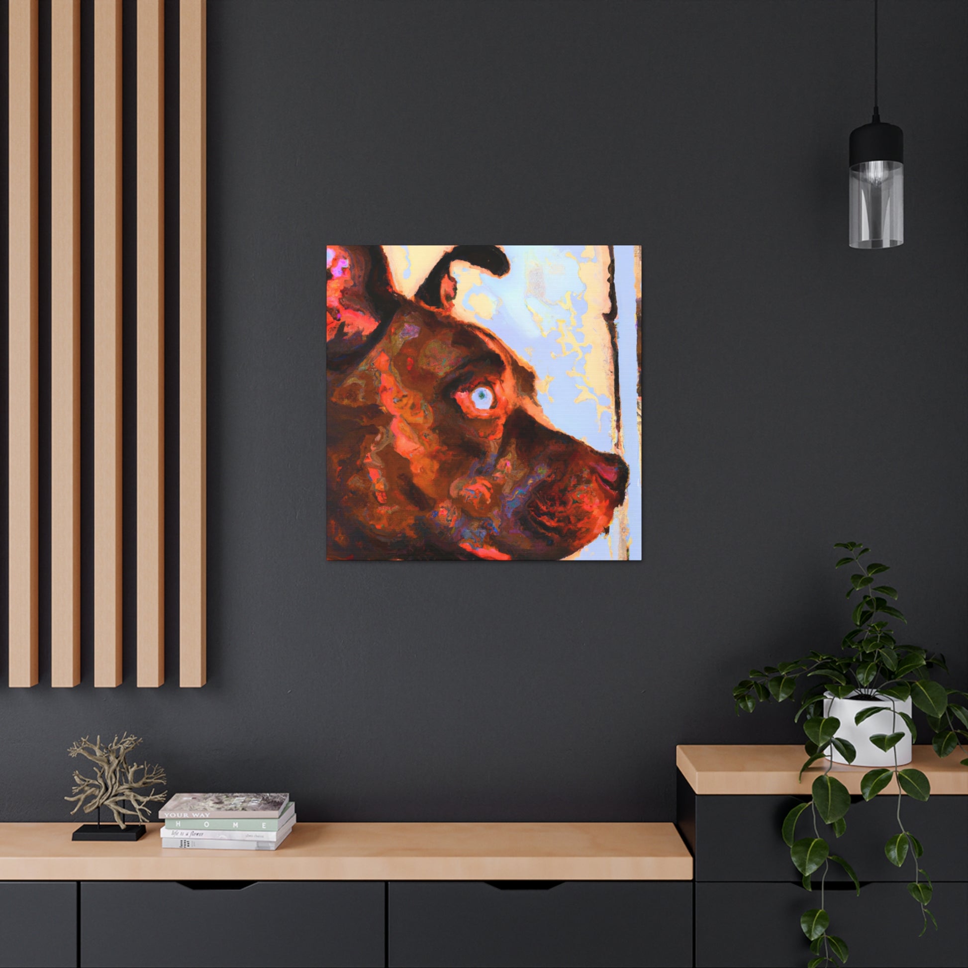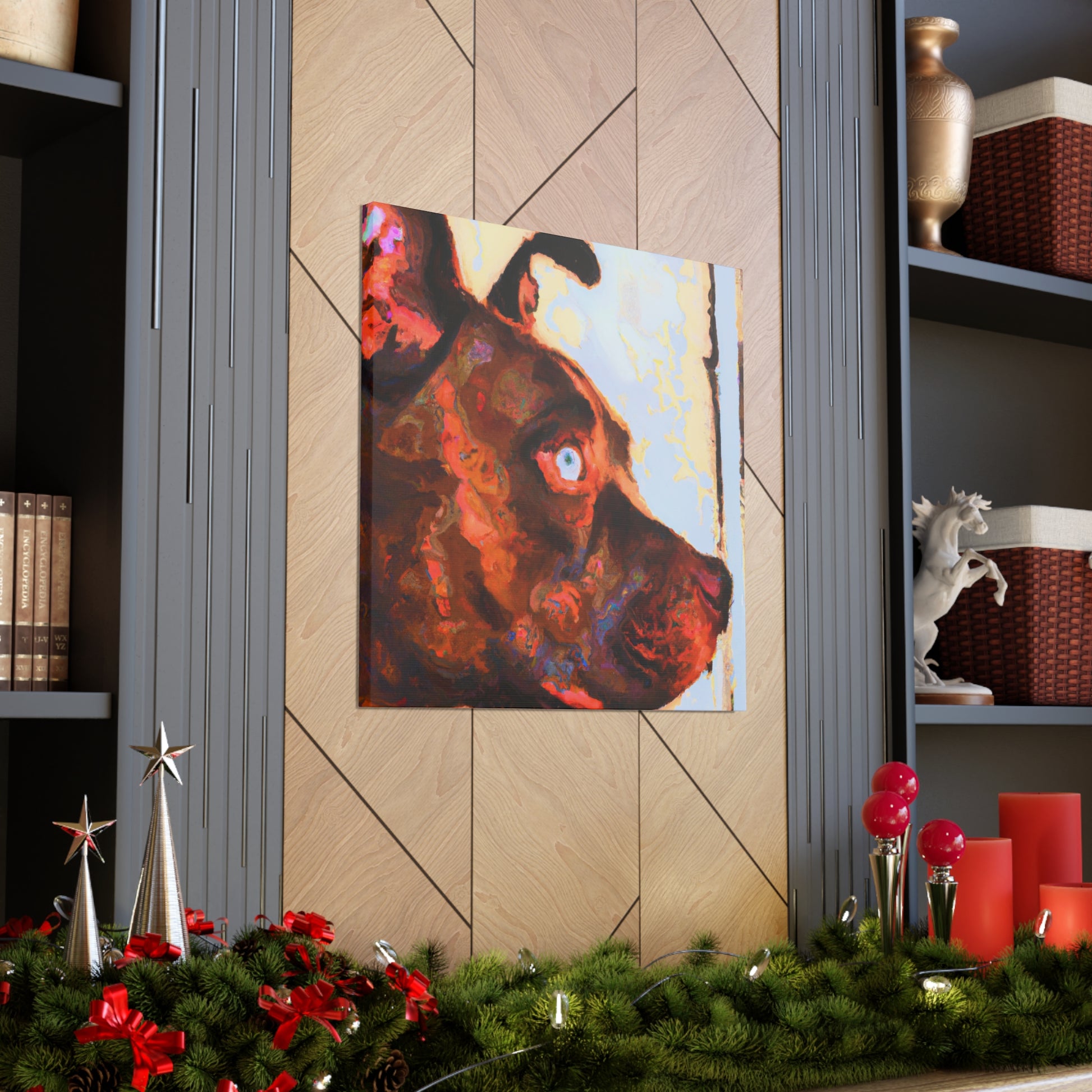 This abstract painting features a loyal young pitbull, whose kingly presence is seen in his deep brown eyes. Amongst the trippy colors of the piece, his calmness and endearing clarity stand out among the frenzied background. This canvas gives an exciting and unique take on the relationship between man and animal. #Painting #AbstractArt #DogLover #PitBull #PaletteKnifePainting #ContemporaryArt #HomeDecor #CanvasArt #CanvasPainting #Inspirational #WallArt