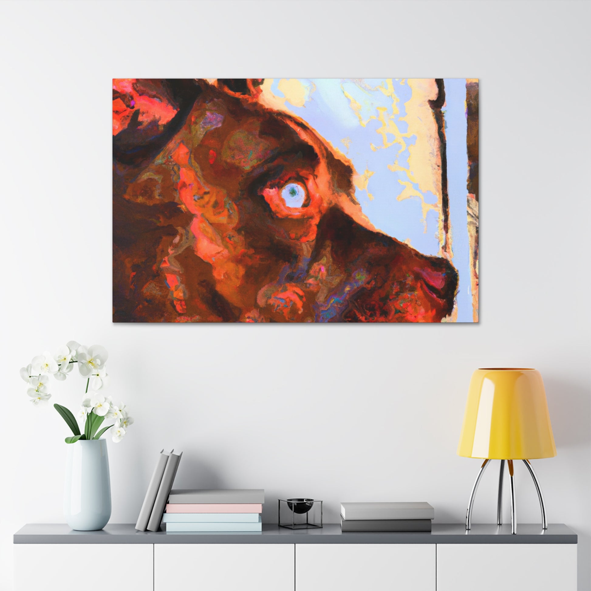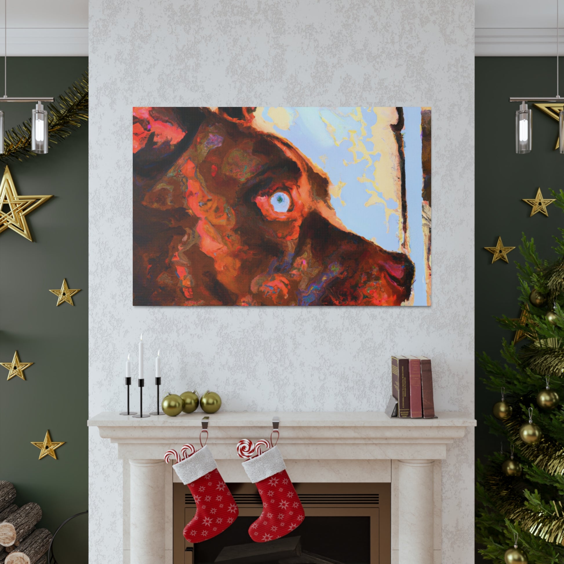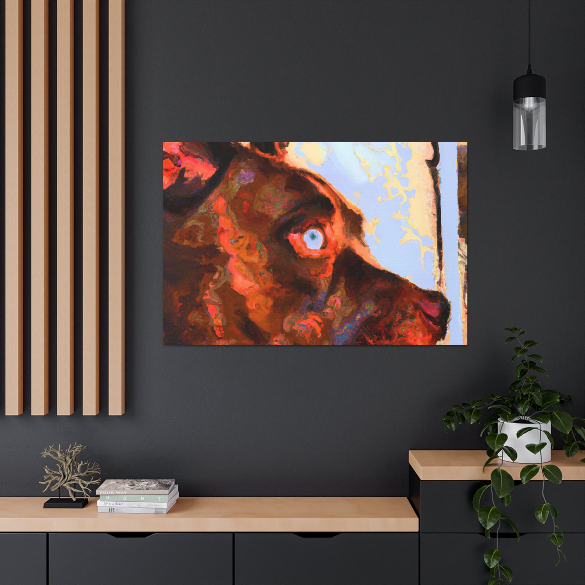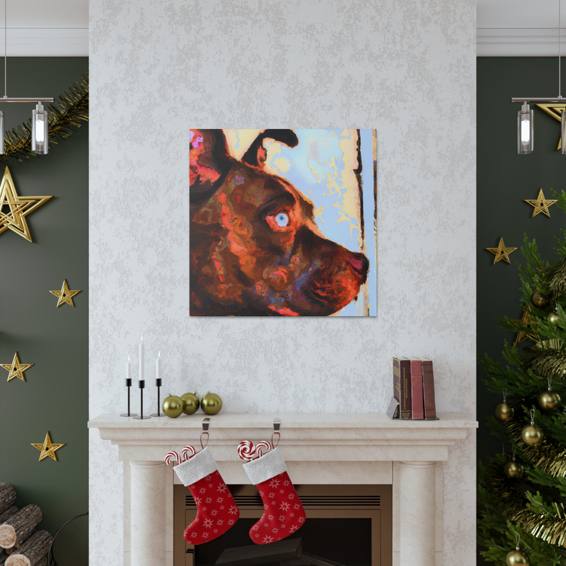 This abstract painting features a loyal young pitbull, whose kingly presence is seen in his deep brown eyes. Amongst the trippy colors of the piece, his calmness and endearing clarity stand out among the frenzied background. This canvas gives an exciting and unique take on the relationship between man and animal. #Painting #AbstractArt #DogLover #PitBull #PaletteKnifePainting #ContemporaryArt #HomeDecor #CanvasArt #CanvasPainting #Inspirational #WallArt