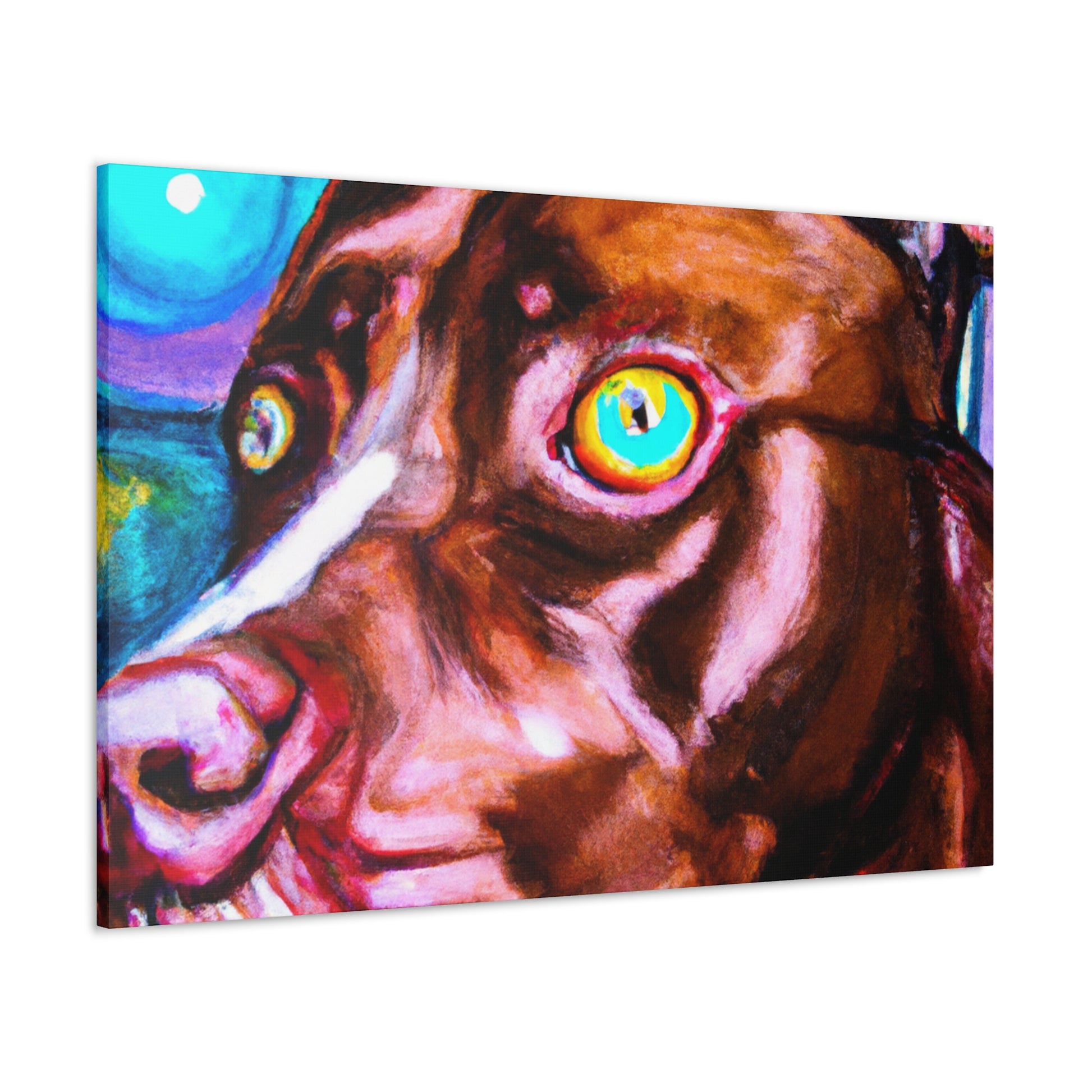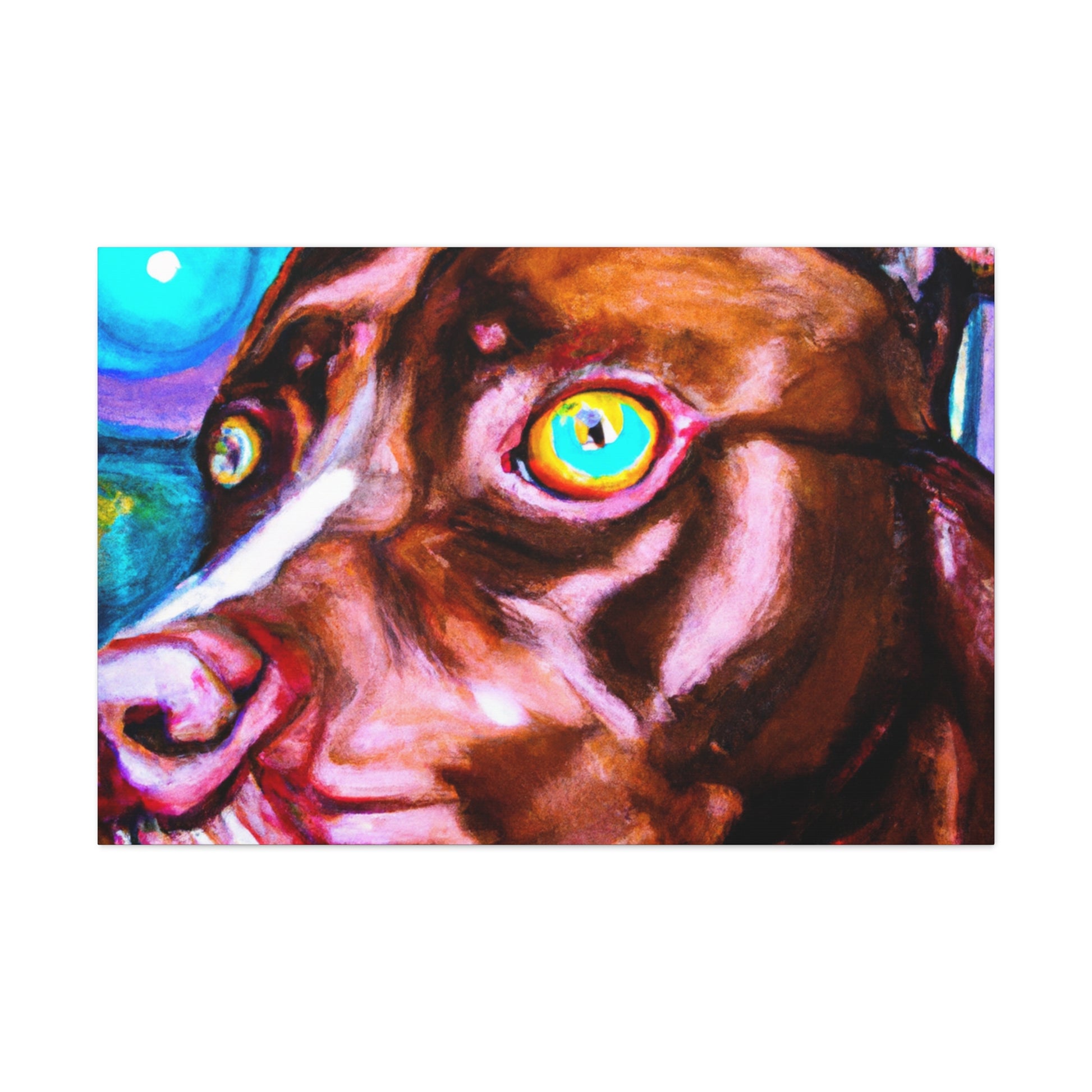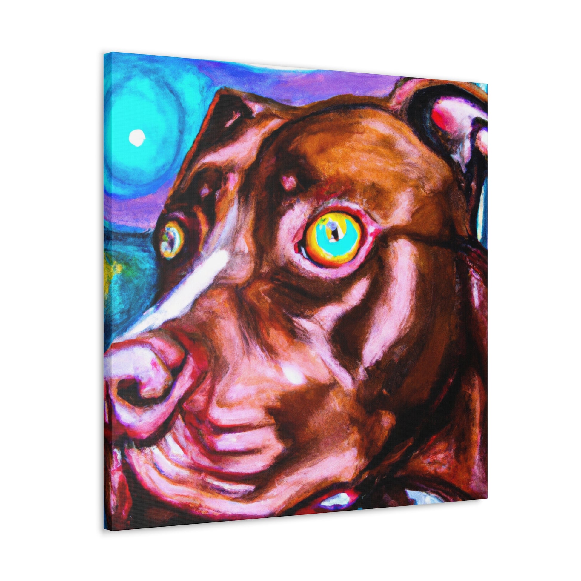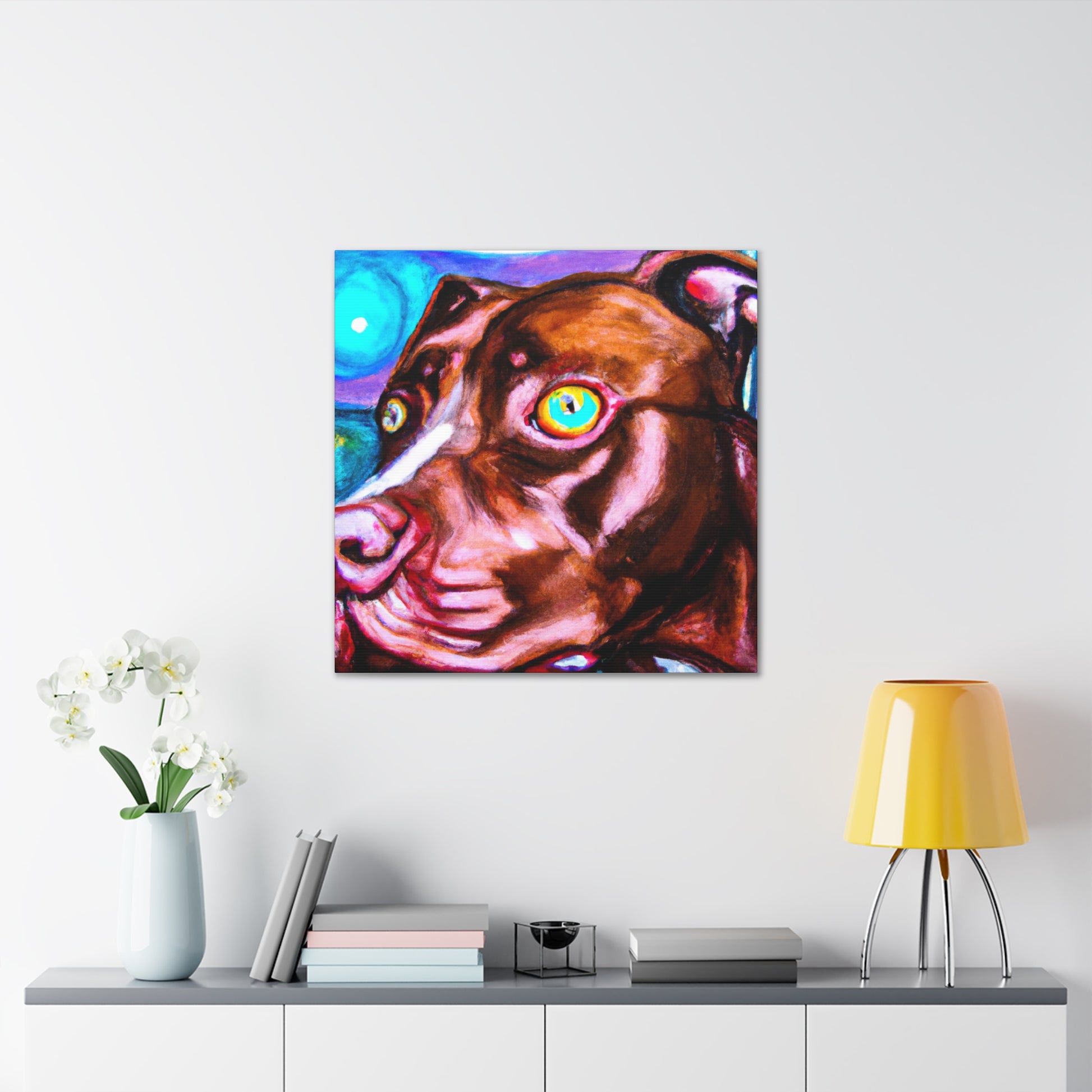 This abstract painting captures a powerful moment of longing for life. A young brown pit bull stares longingly out the window as his vibrant eyes come alive amidst a fascinating, trippy background. It's sure to be the centerpiece of any room and a perfect conversation starter. A stunning display of emotion #youngdog #pup #animalpainting #abstractart #abstractdog #lookingoutthewindow #modernart #emotionalart #pitbull #trippylook #protectoroflife