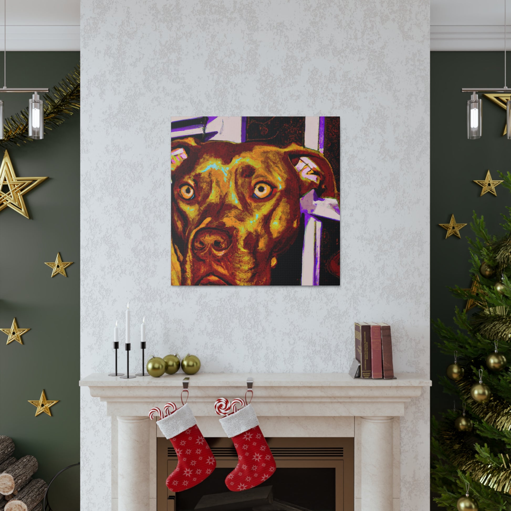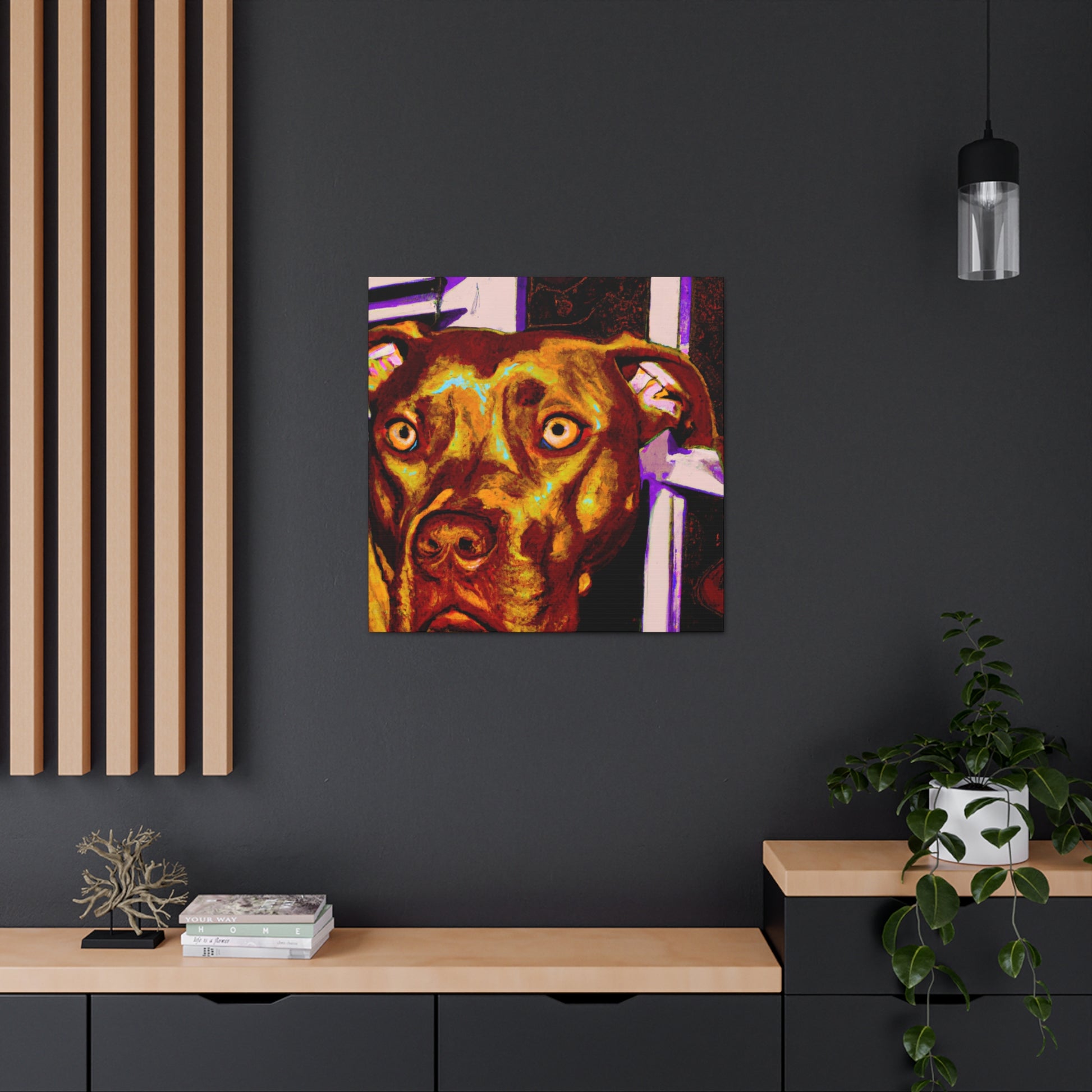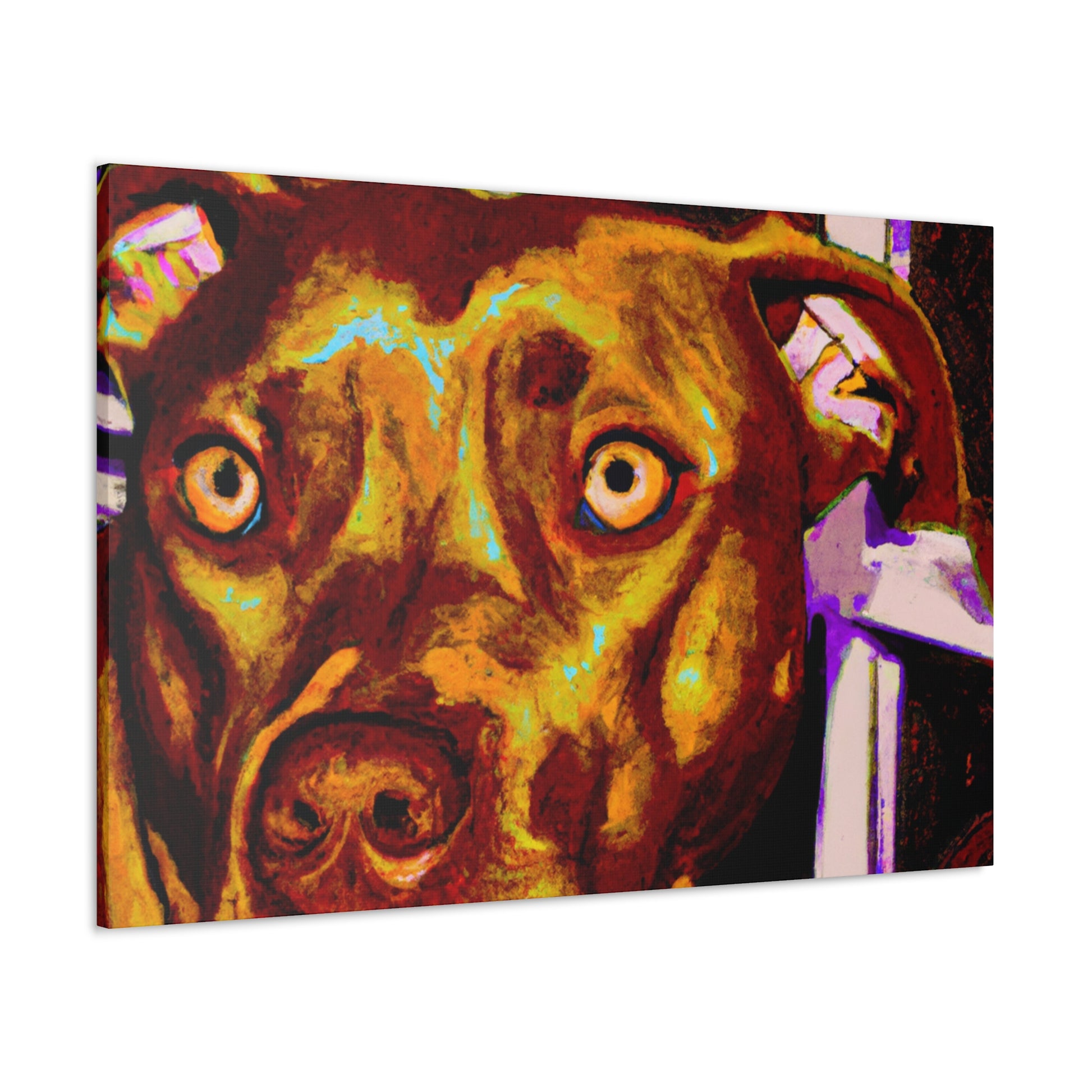 Introducing 'Longing', a unique abstract painting featuring a young brown pit bull looking longingly out the window. With a clear sight of life in his eyes, the canvas is made even more exciting with its trippy design and colors. Hang this modern artwork in your home and be inspired by the dog's longing. #abstract #trippy #pitbull #canvas #modern #brown #dog #unique #young #longing #painting