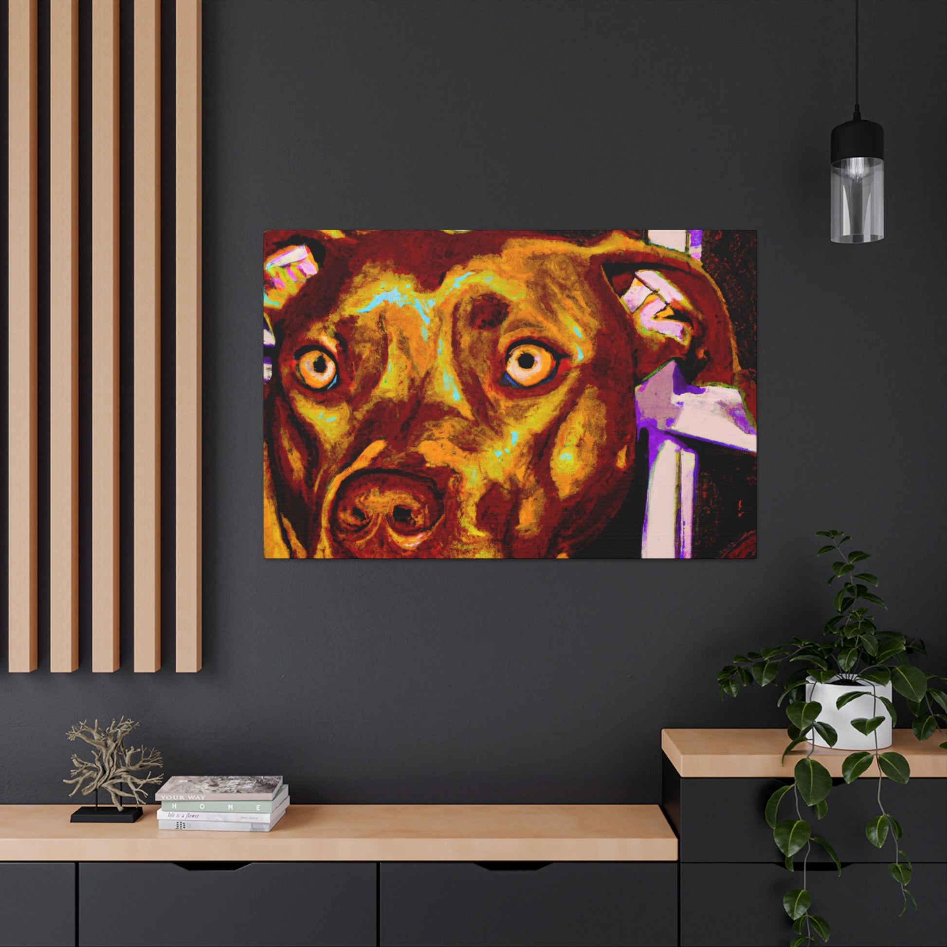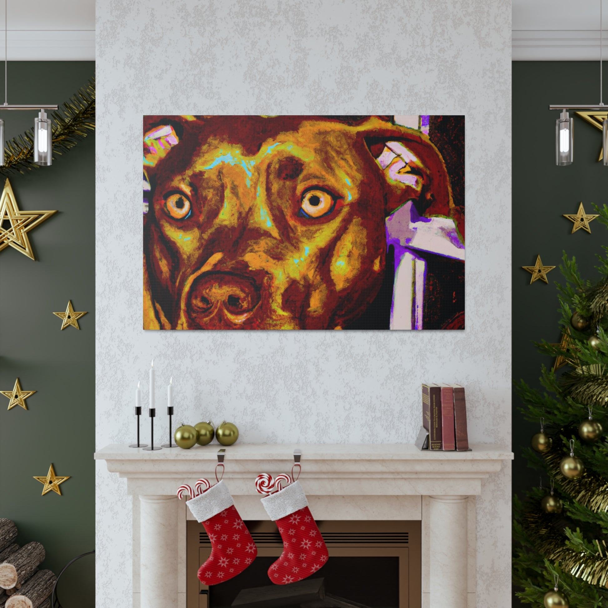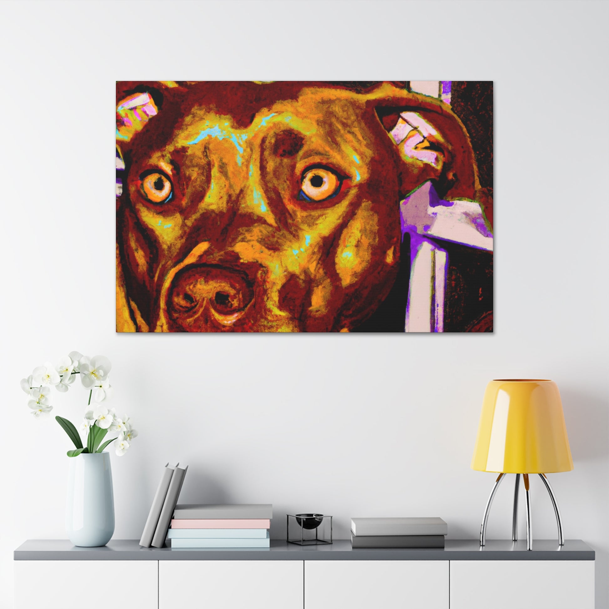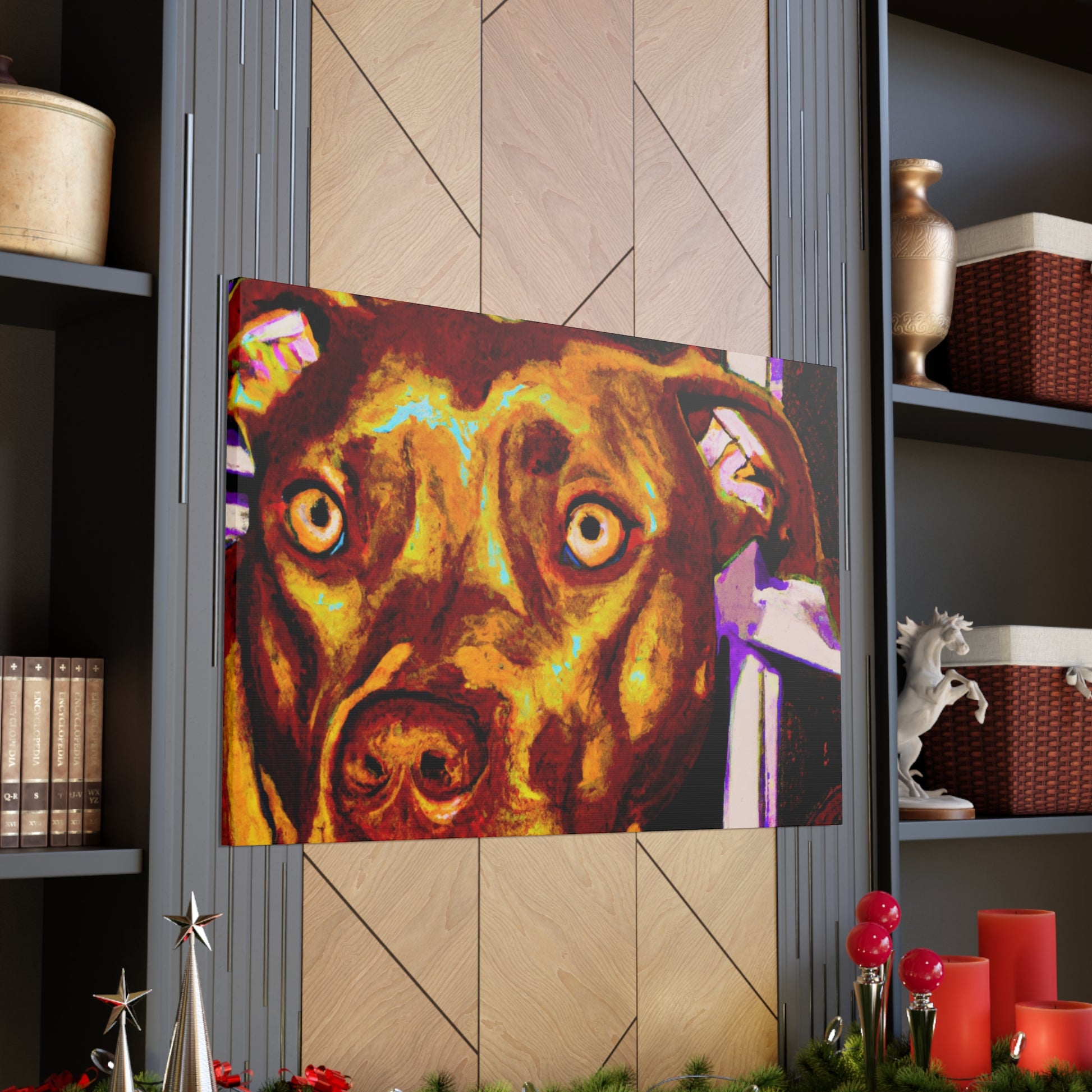 Introducing 'Longing', a unique abstract painting featuring a young brown pit bull looking longingly out the window. With a clear sight of life in his eyes, the canvas is made even more exciting with its trippy design and colors. Hang this modern artwork in your home and be inspired by the dog's longing. #abstract #trippy #pitbull #canvas #modern #brown #dog #unique #young #longing #painting
