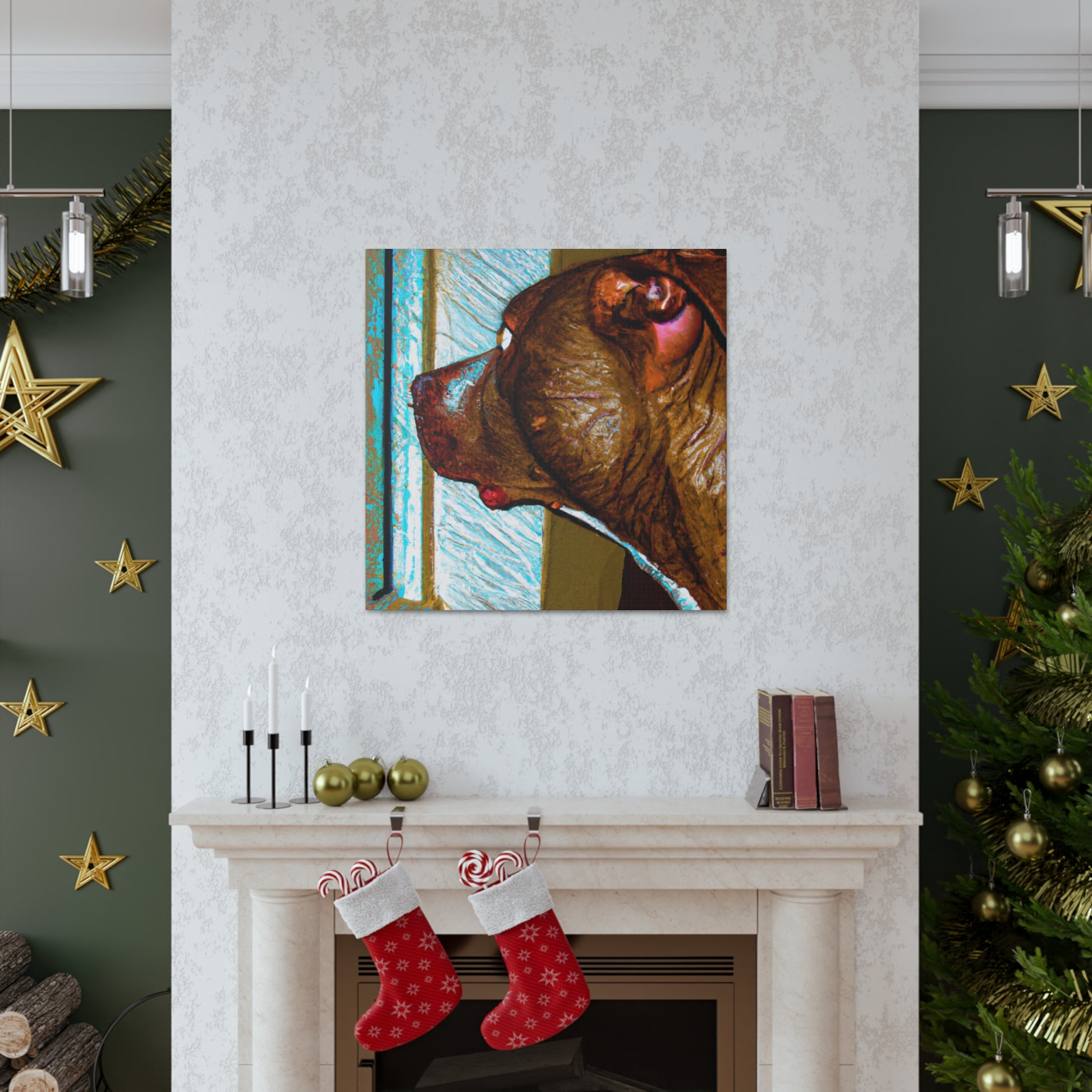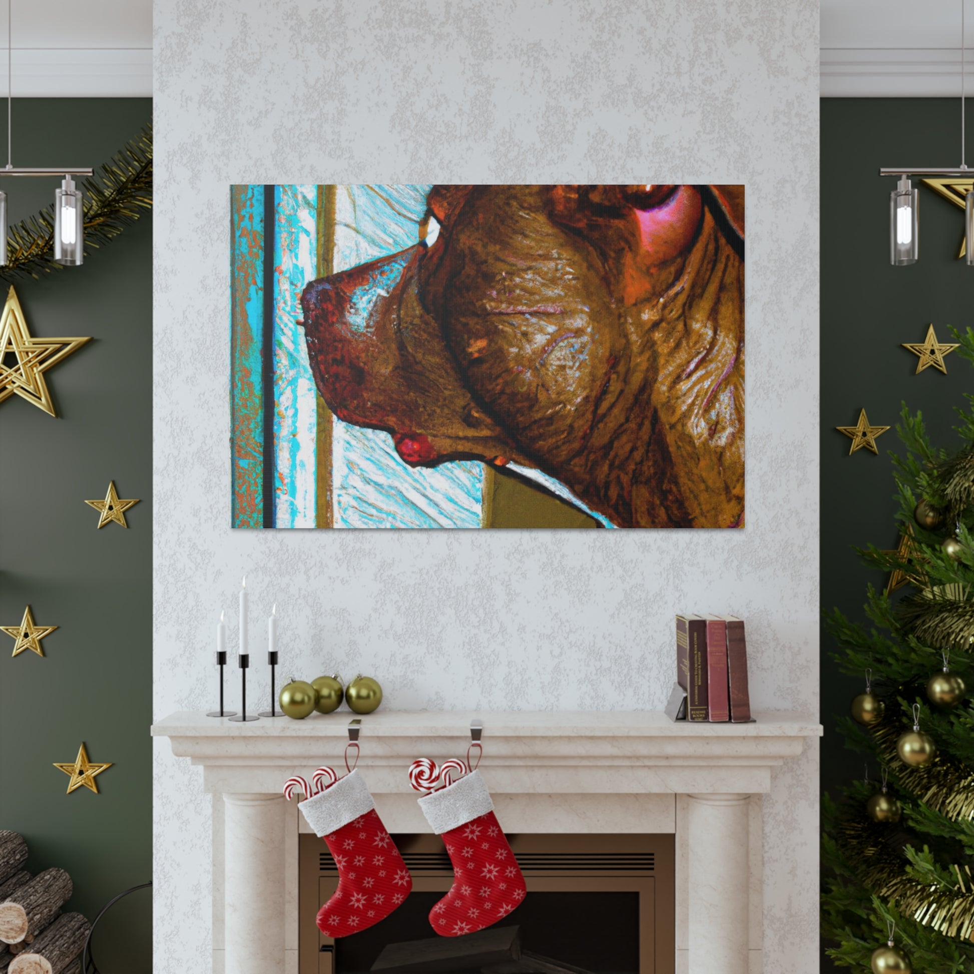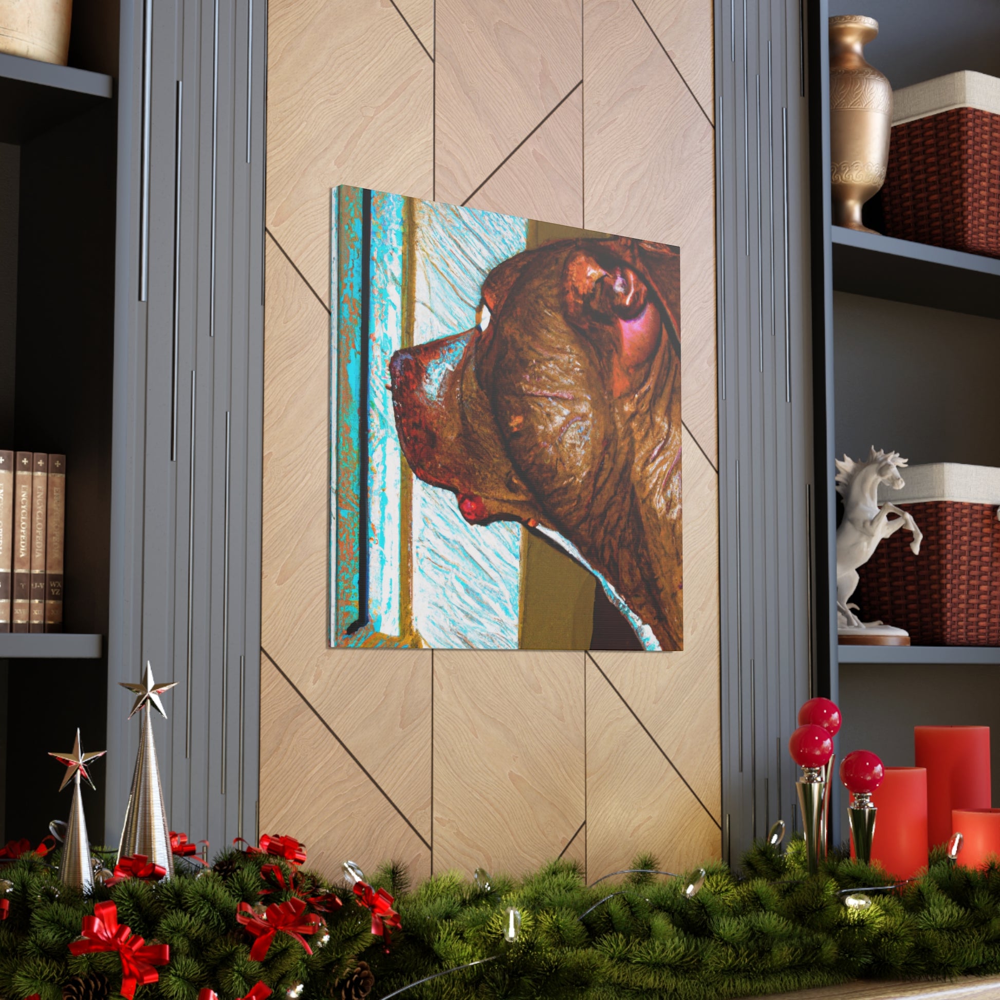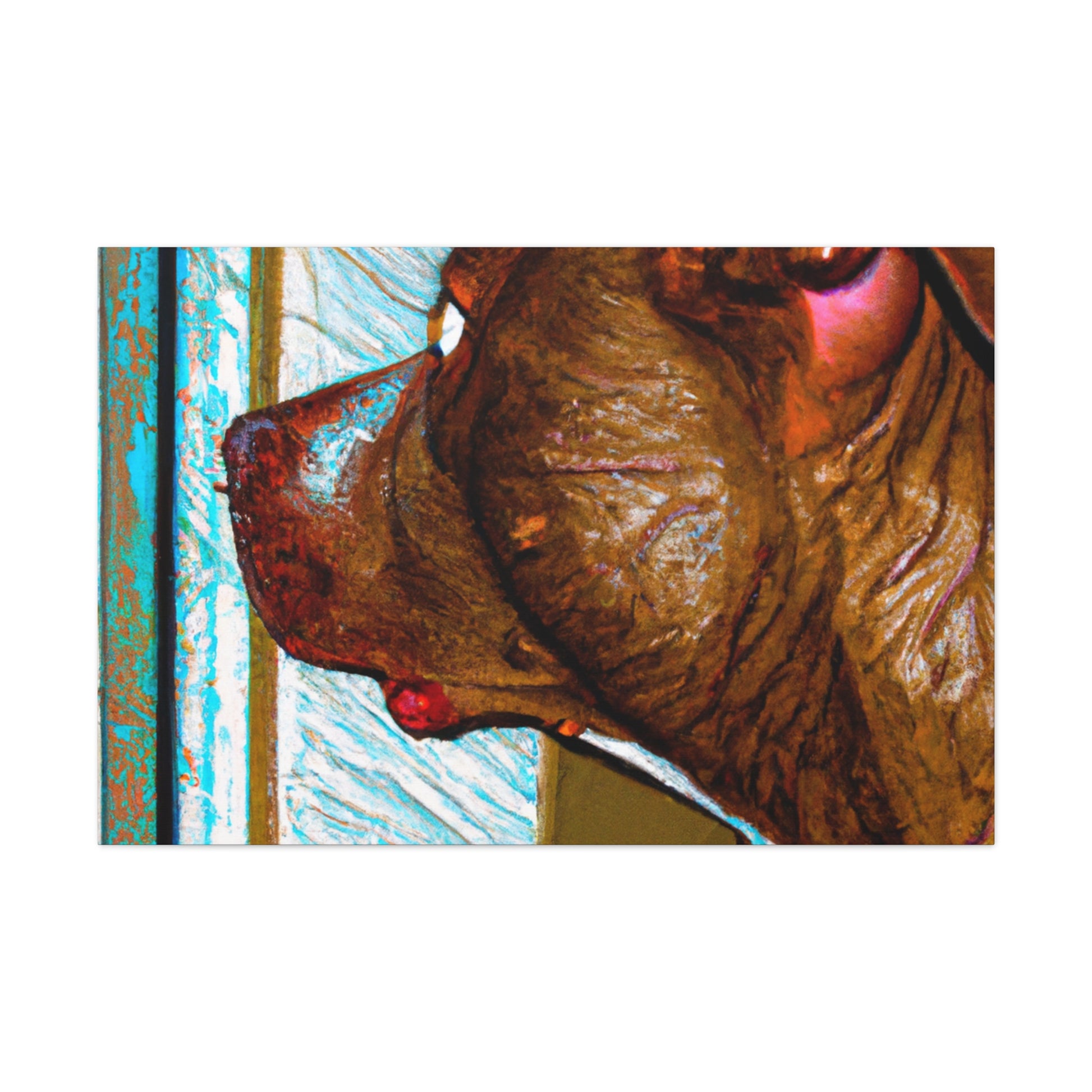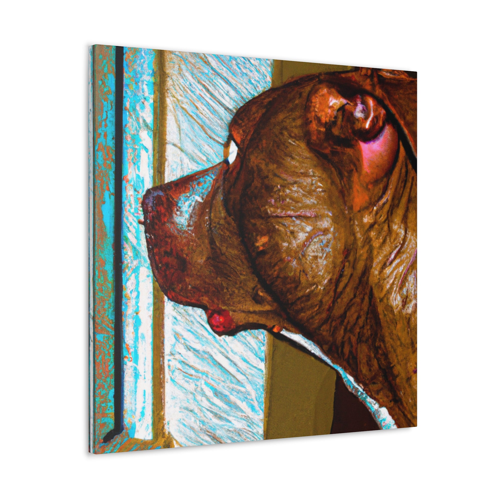 This eye-catching canvas drawing of a young brown pit bull looking out the window will capture hearts. His eyes brim with life, while the trippy surroundings keep him grounded. This piece is alluring and classy and perfect for anyone who wants to bring a unique artistic feel to their home. #abstract #doglovers #pitbullsofinstagram #pupsofinstagram #artlovers #canvasart #dogart #homestyling #wallart #dogstagram #homeinspo