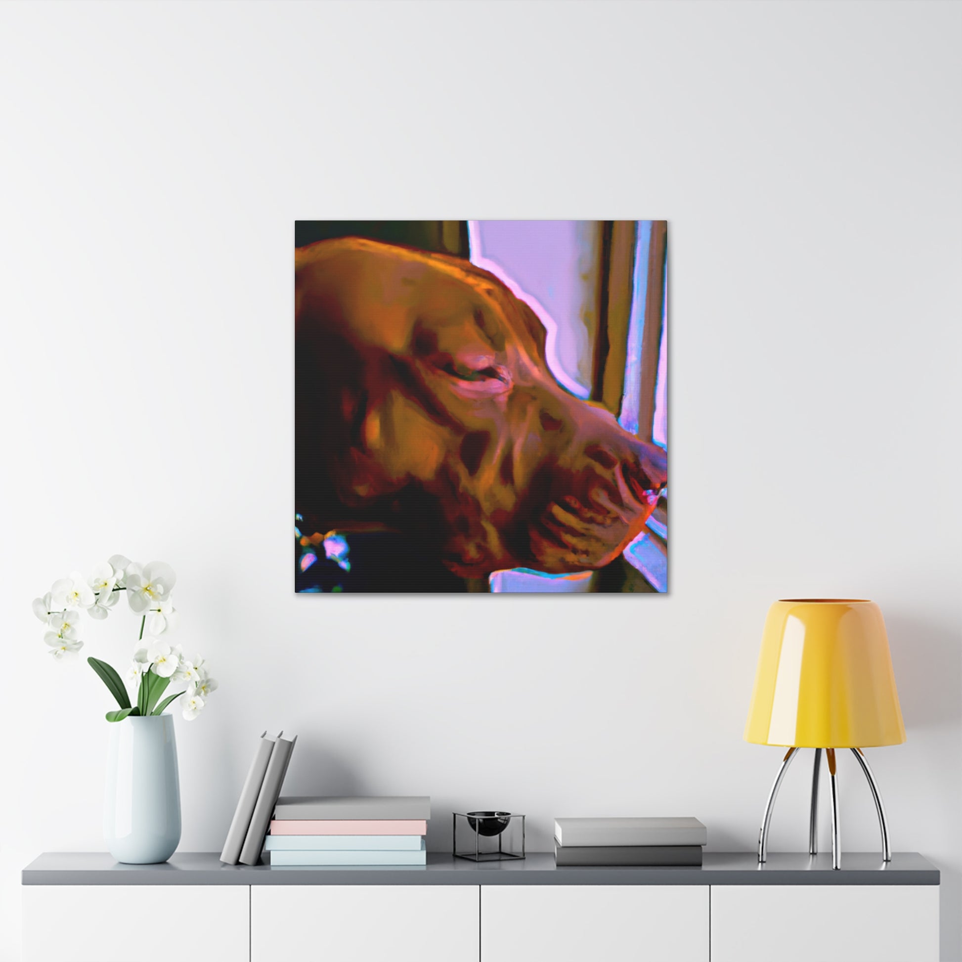 Bringing warmth to your home, the Abstract Pitbull canvas art painting is a beautiful piece that will add personality to any room. An adorable young brown pitbull is featured, gazing out of a colorful and creative window with bright energetic colors and engaging shapes. The main focus of this painting is the mysterious and lively expression on the dog's face, and the bold colors will bring life and energy to your décor. #WalkingArt #Giclee #AbstractVibes #PitbullPaint #AbstractEye #WindowViewing #ModernArt #CanvasArt #PaintingLife #ArtLover #HomeStyle