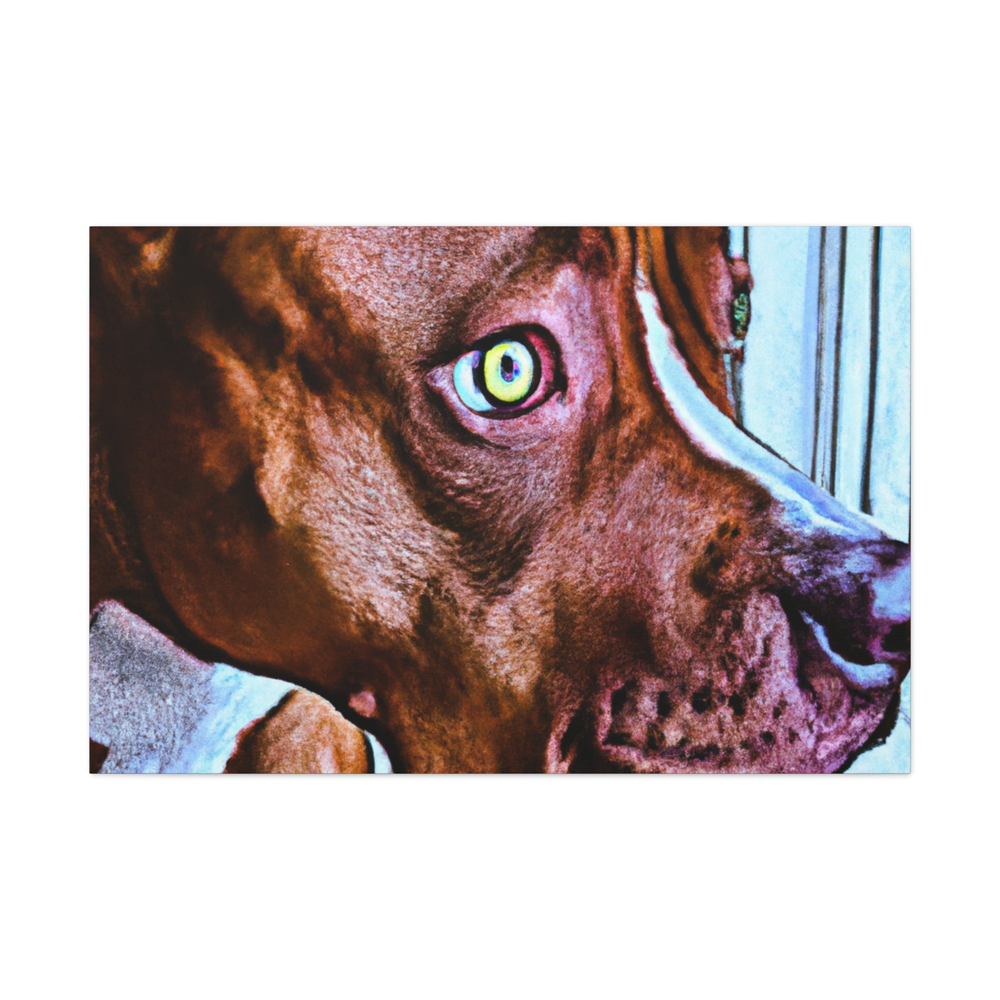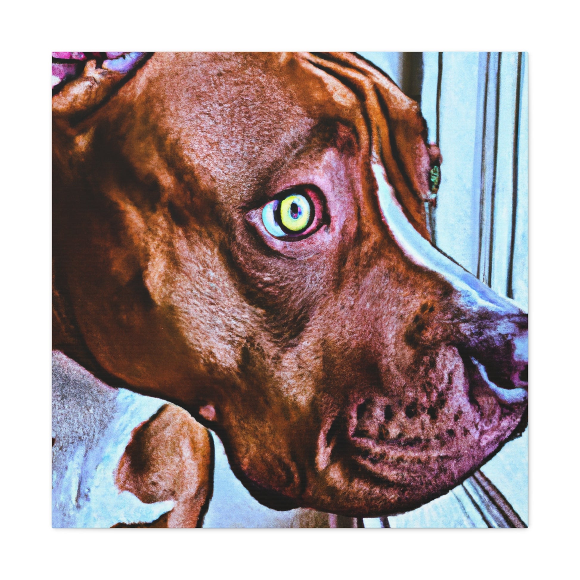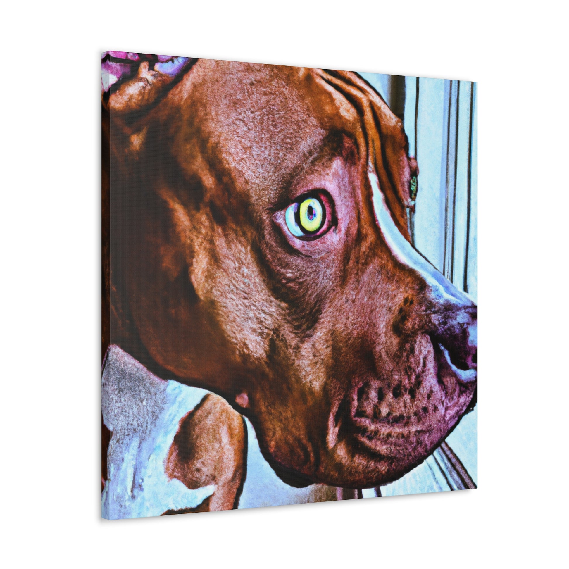This stunning piece of wall art will add a modern and stylish look to any home. Expertly crafted with vivid colors, this canvas painting captures a young brown pit bull looking out a vibrant, trippy-looking window filled with life and longing. The juxtaposition between the simple serene representation of the dog and the chaotic activity in the rest of the piece makes it a one of a kind must-have. #art #abstract #painting #design#decor #homedecor #photography#canvas #craftsmanship #style #beautiful