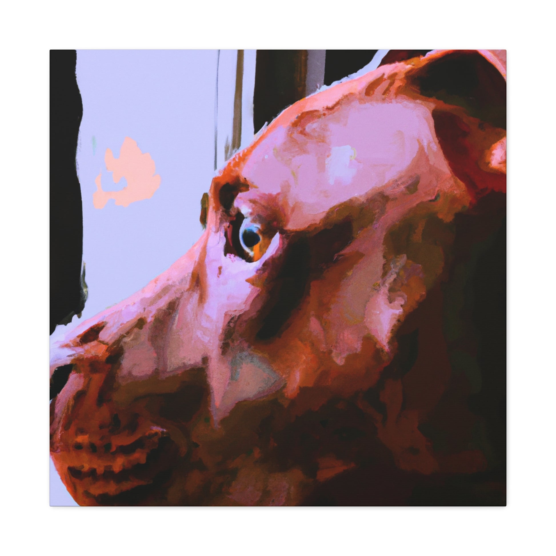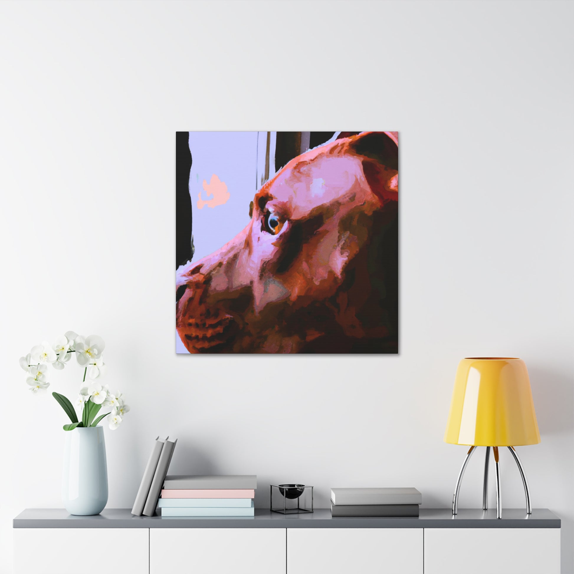 Captivating and unique, this abstract painting of a young brown pit bull longingly gazing out the window comes alive with trippy colors and life in his eyes. This contemporary masterpiece will enliven any space and provide a conversation starter for years to come. #dogpainting #abstractart #contemporaryart #colourfulart #pitbullart #puppyart #canvasart #windowview #doglover #visualart #classyart