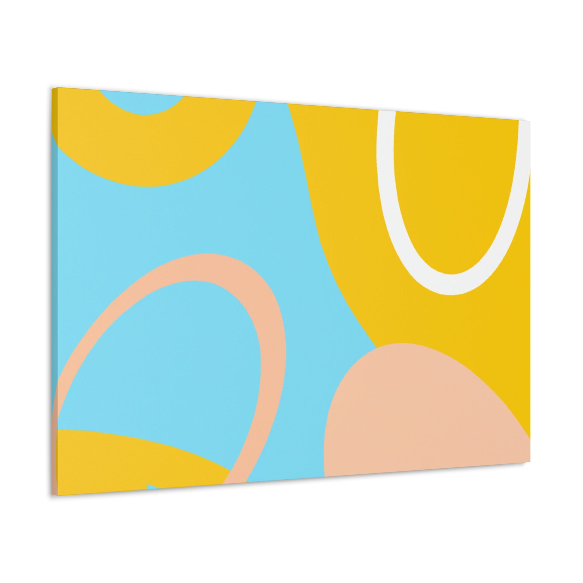 This canvas is bright and vibrant, sure to make a statement in any room. The abstract geometric pattern captivates the eye with its cool colors and unique design. Whether hung on its own or in a collection, this canvas will be an unforgettable addition. #abstract #geometric #pattern #canvas #colorful #art #home #design #style #room #homedecor