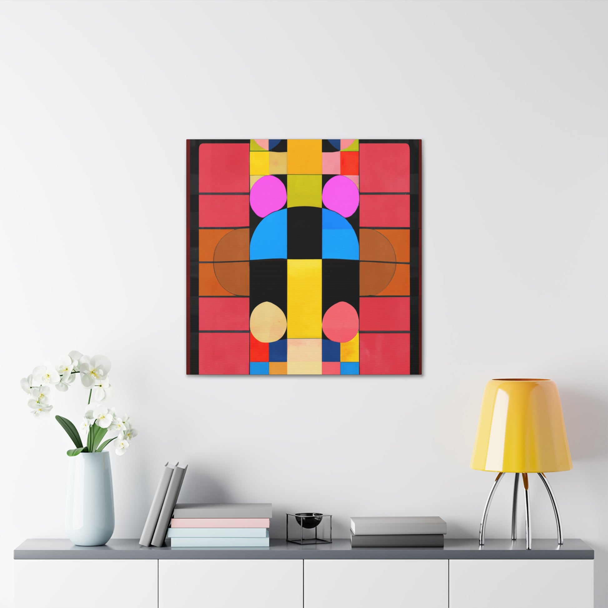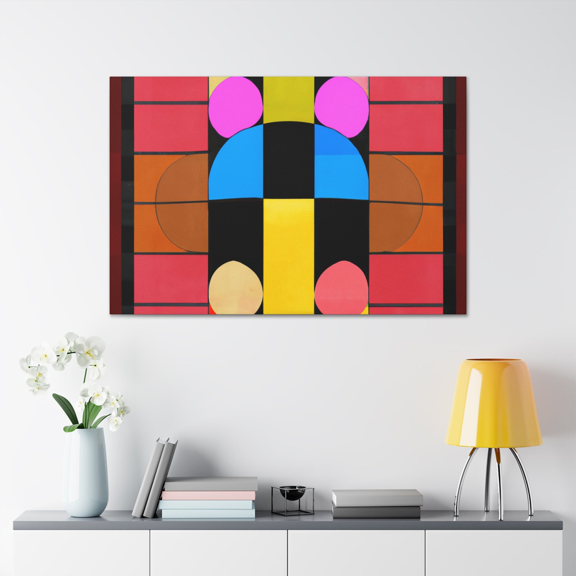This canvas of digital patterned geometry painting is the perfect accent for any contemporary living room. Bright colors and abstract shapes are sure to give your décor an edge. Combined with a modern frame, this painting will be the perfect conversation starter. Show your unique style with this digital art! #digitalart #abstract #geometry #patterned #canvas #painting #livingroom #homeart #contemporary #interiordecor #style