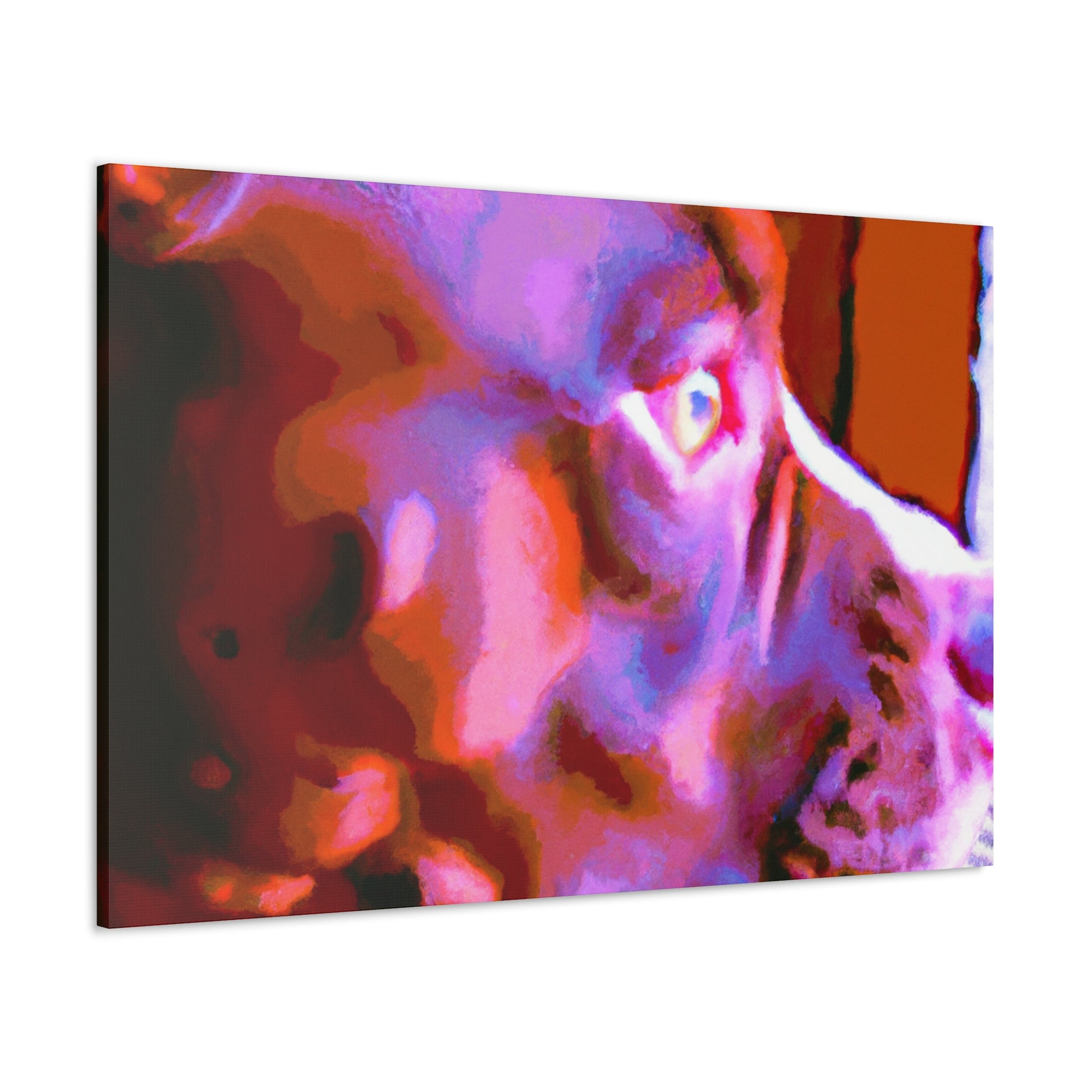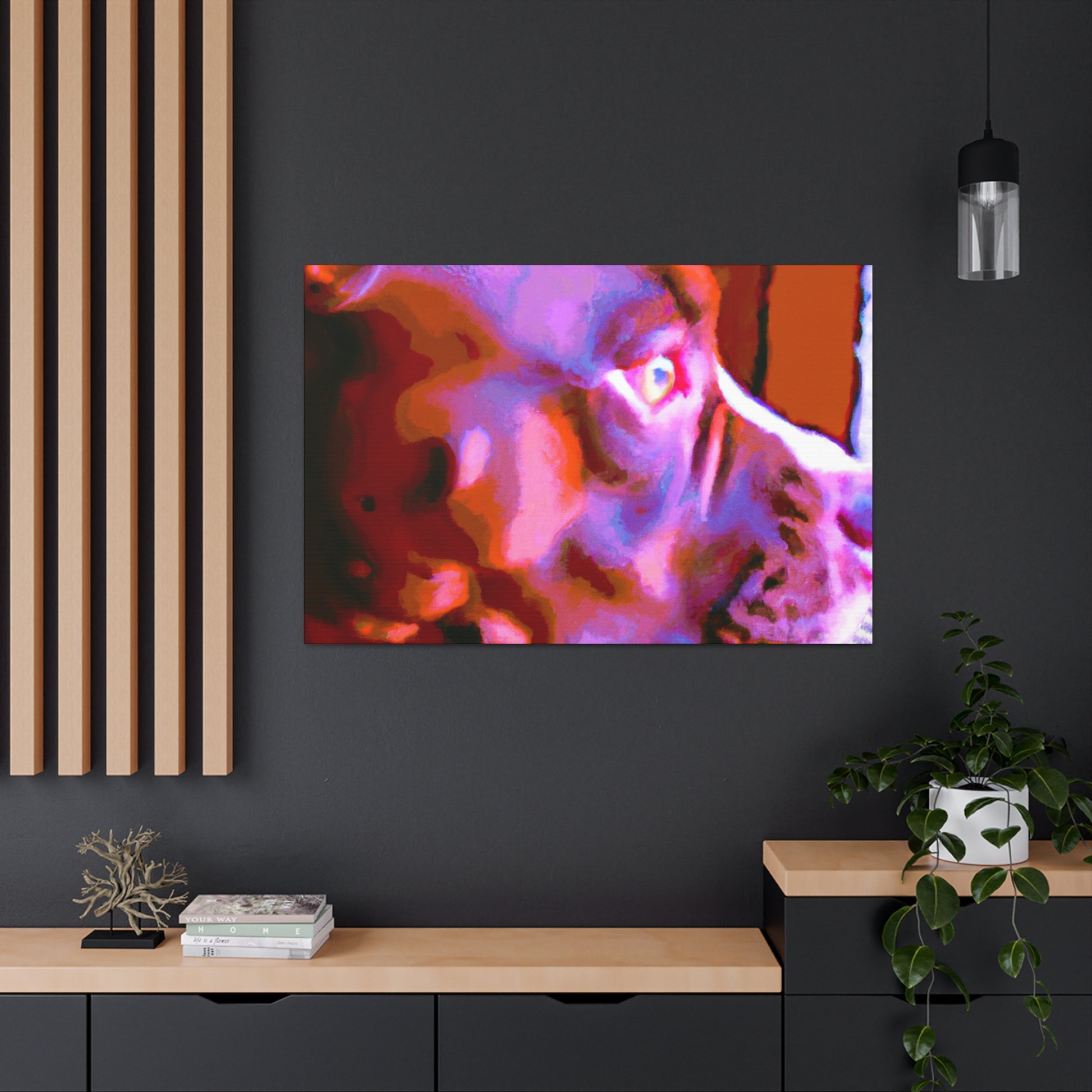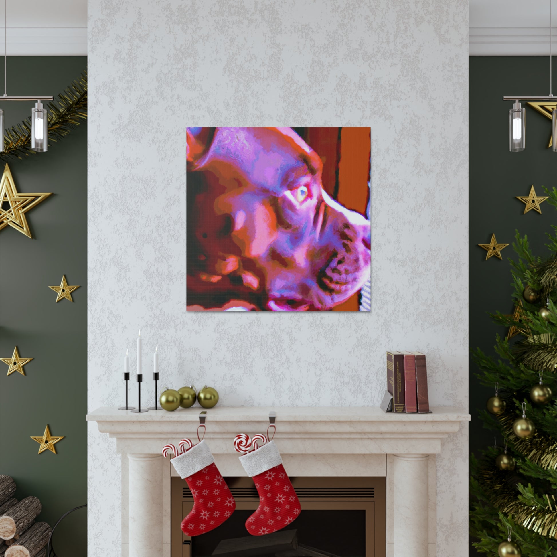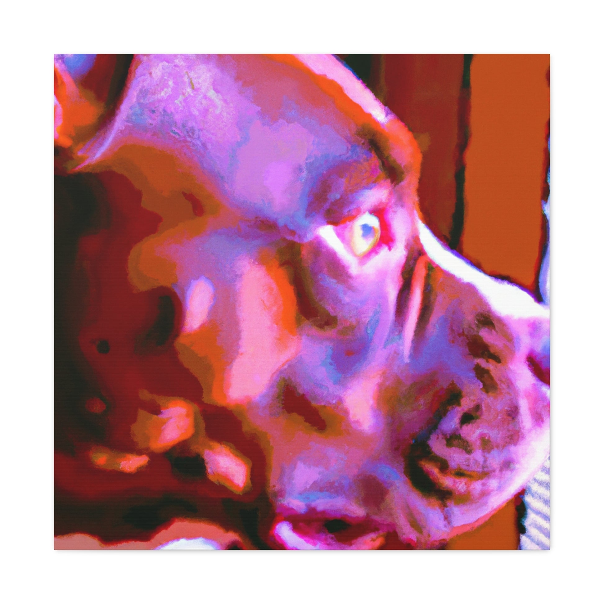 This stunning canvas features an abstract yet realistic portrait of a young brown pit bull looking out longingly into the world. His clear eyes reflect the life the little pup has had, providing a powerful focal point to the canvas. The background is a combination of vivid colors and organic shapes, creating a surreal, trippy original piece of artwork that will brighten up any room. #abstractpainting #youngdog #pittbull #canvasart #colorful #doglover #surrealart #wallart #trippyart #originalart #vividcolors