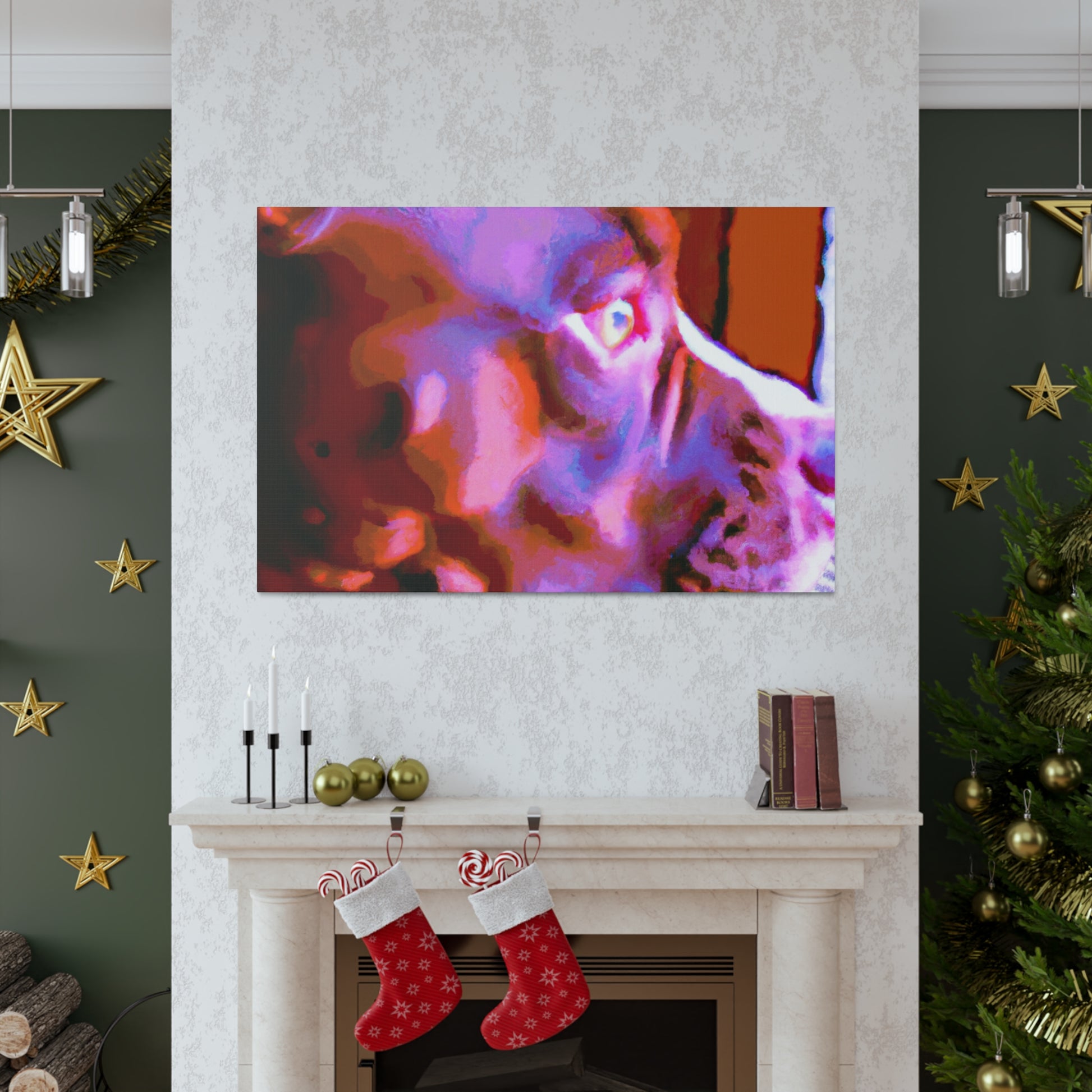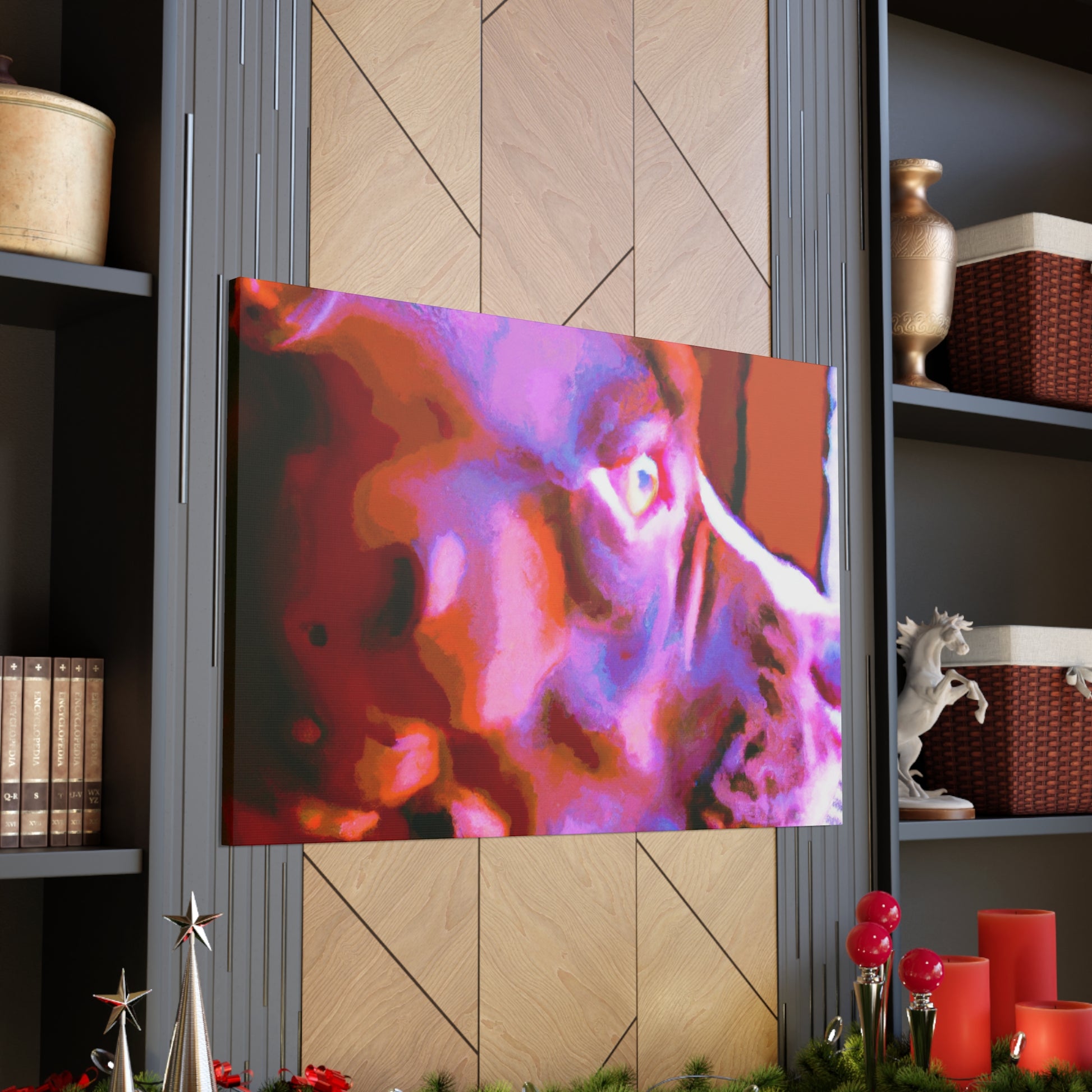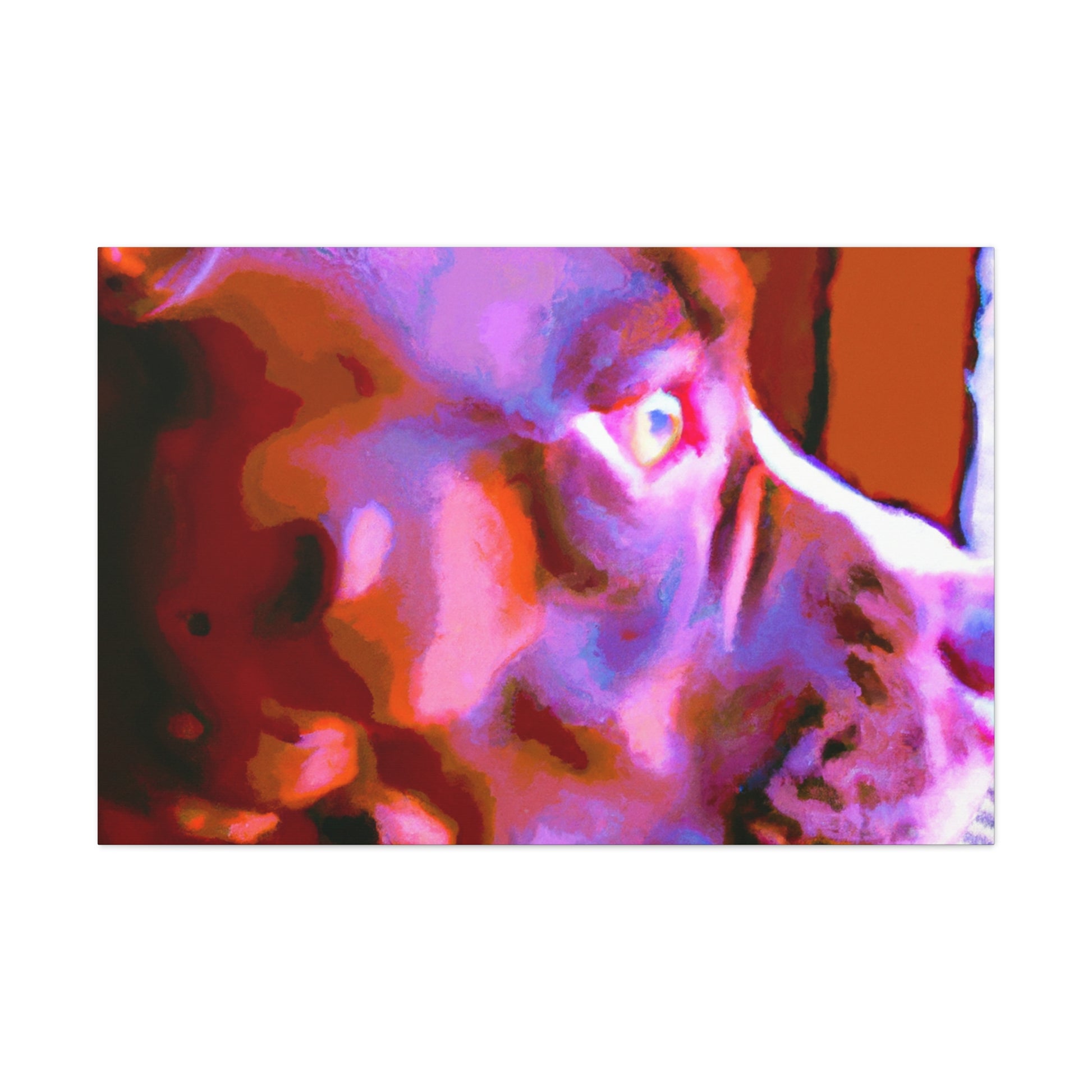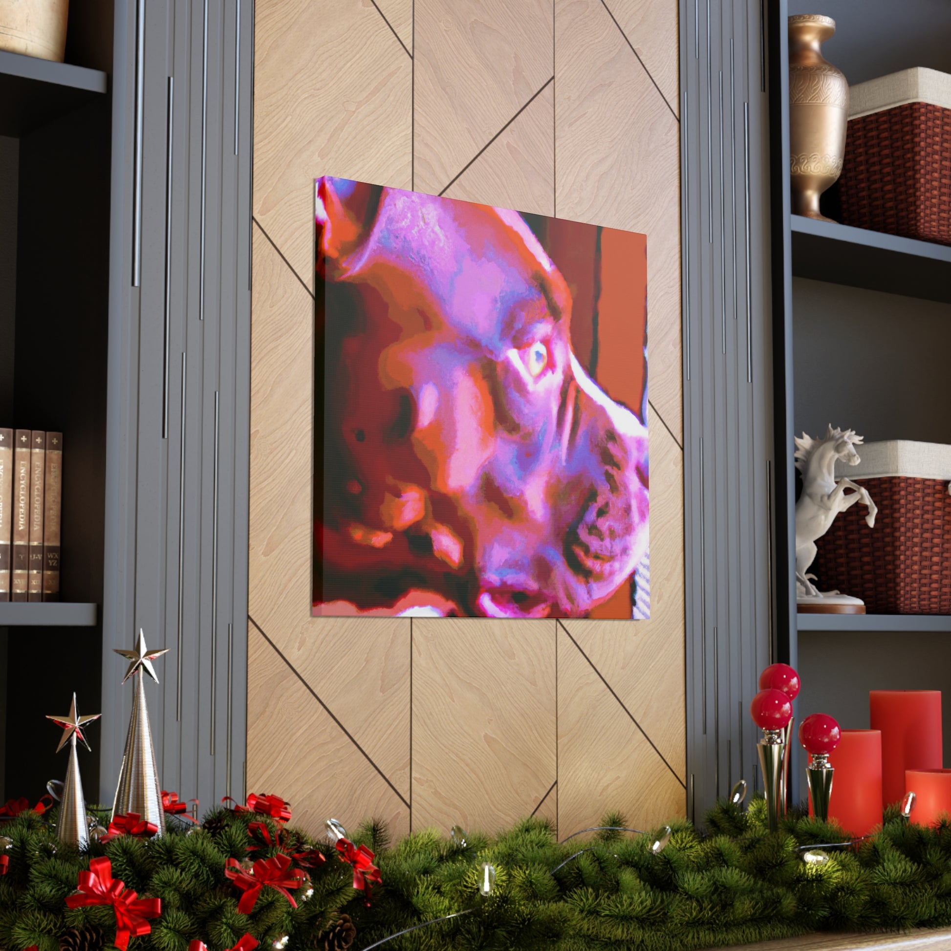 This stunning canvas features an abstract yet realistic portrait of a young brown pit bull looking out longingly into the world. His clear eyes reflect the life the little pup has had, providing a powerful focal point to the canvas. The background is a combination of vivid colors and organic shapes, creating a surreal, trippy original piece of artwork that will brighten up any room. #abstractpainting #youngdog #pittbull #canvasart #colorful #doglover #surrealart #wallart #trippyart #originalart #vividcolors
