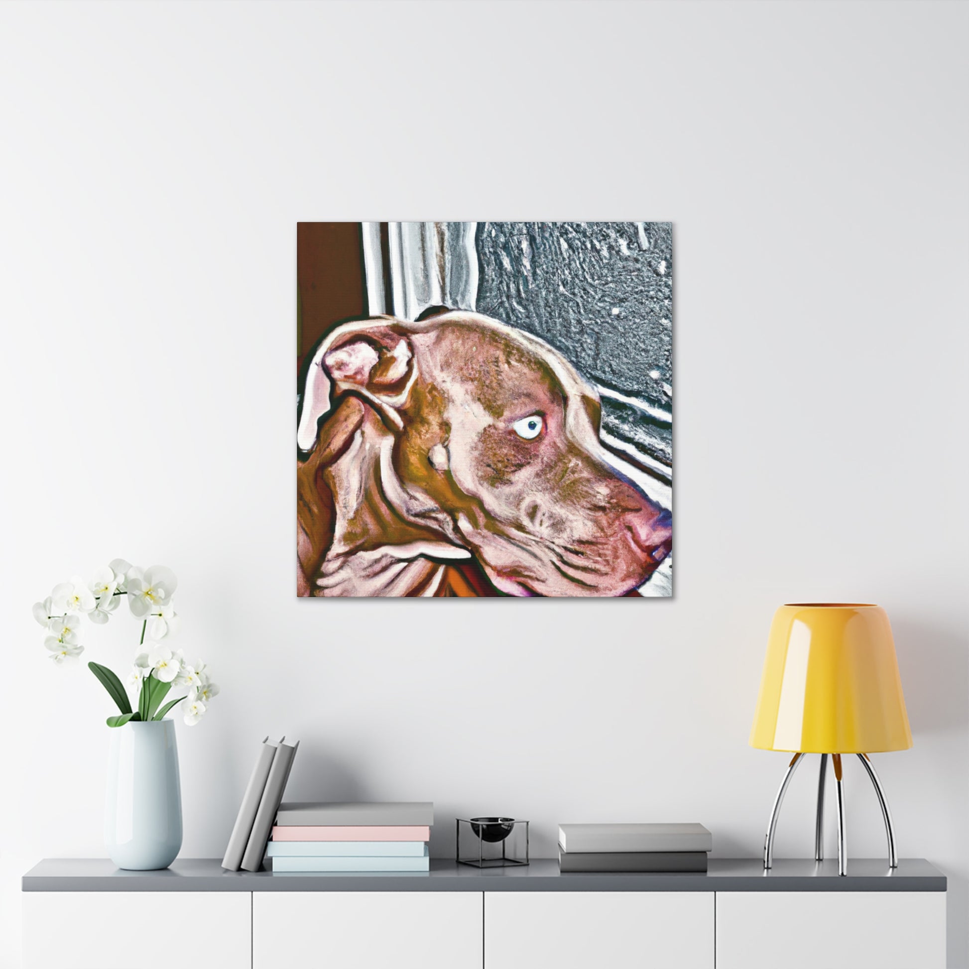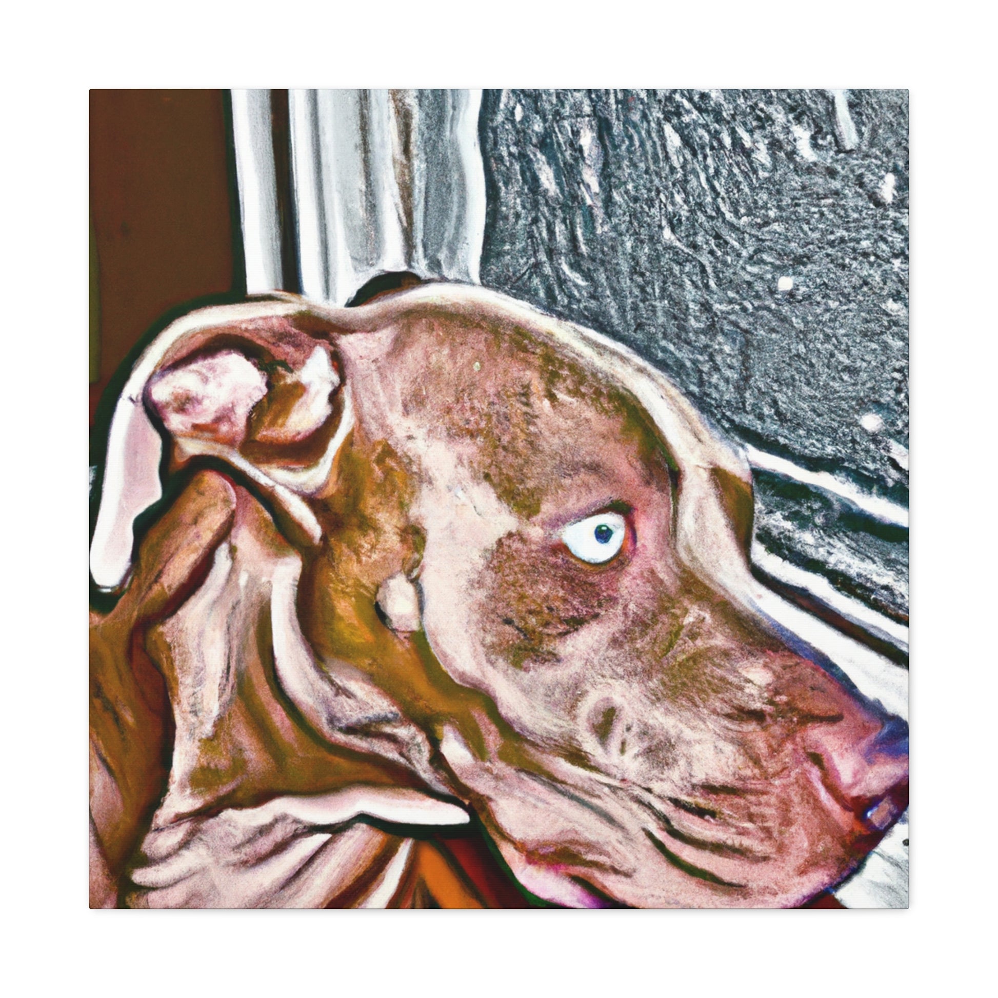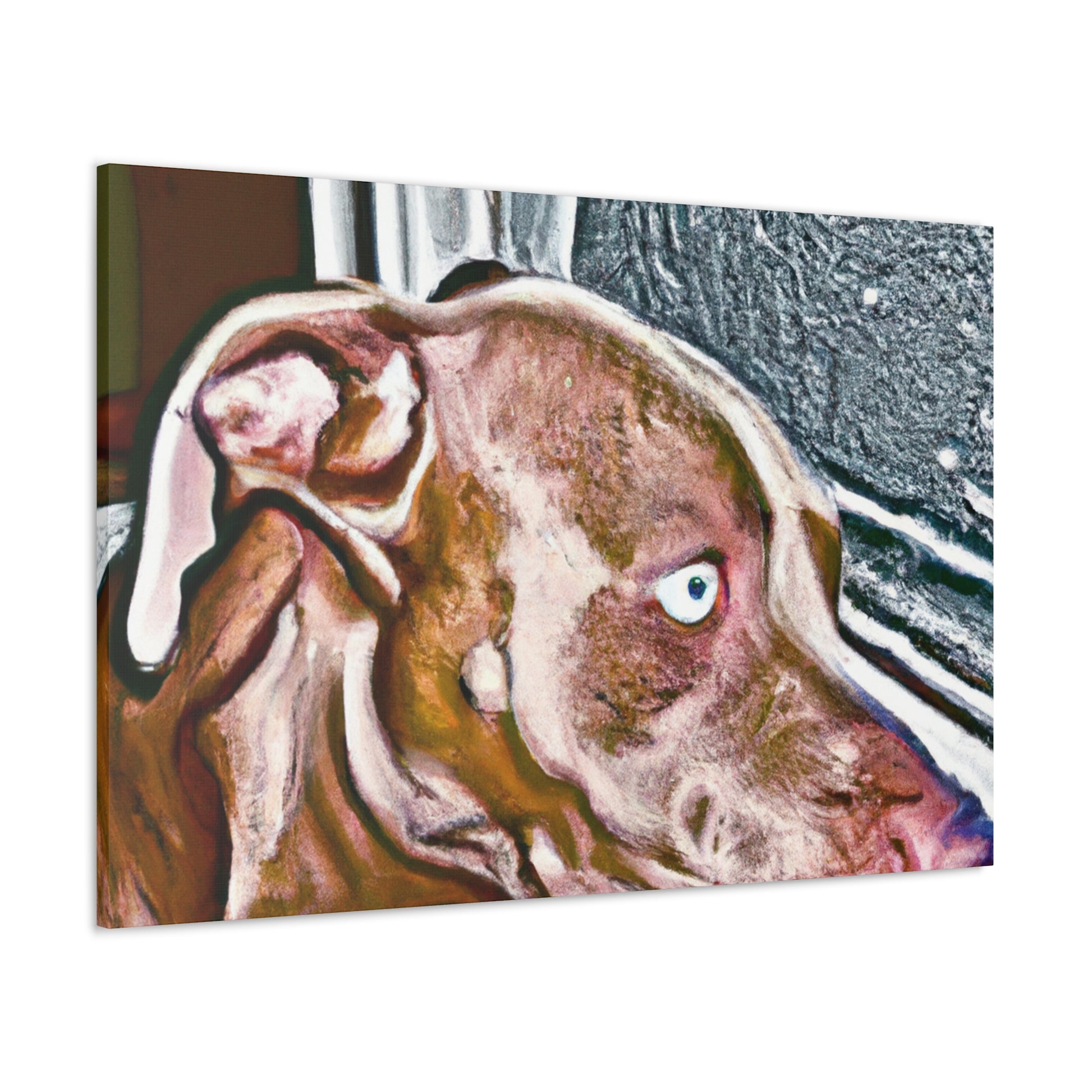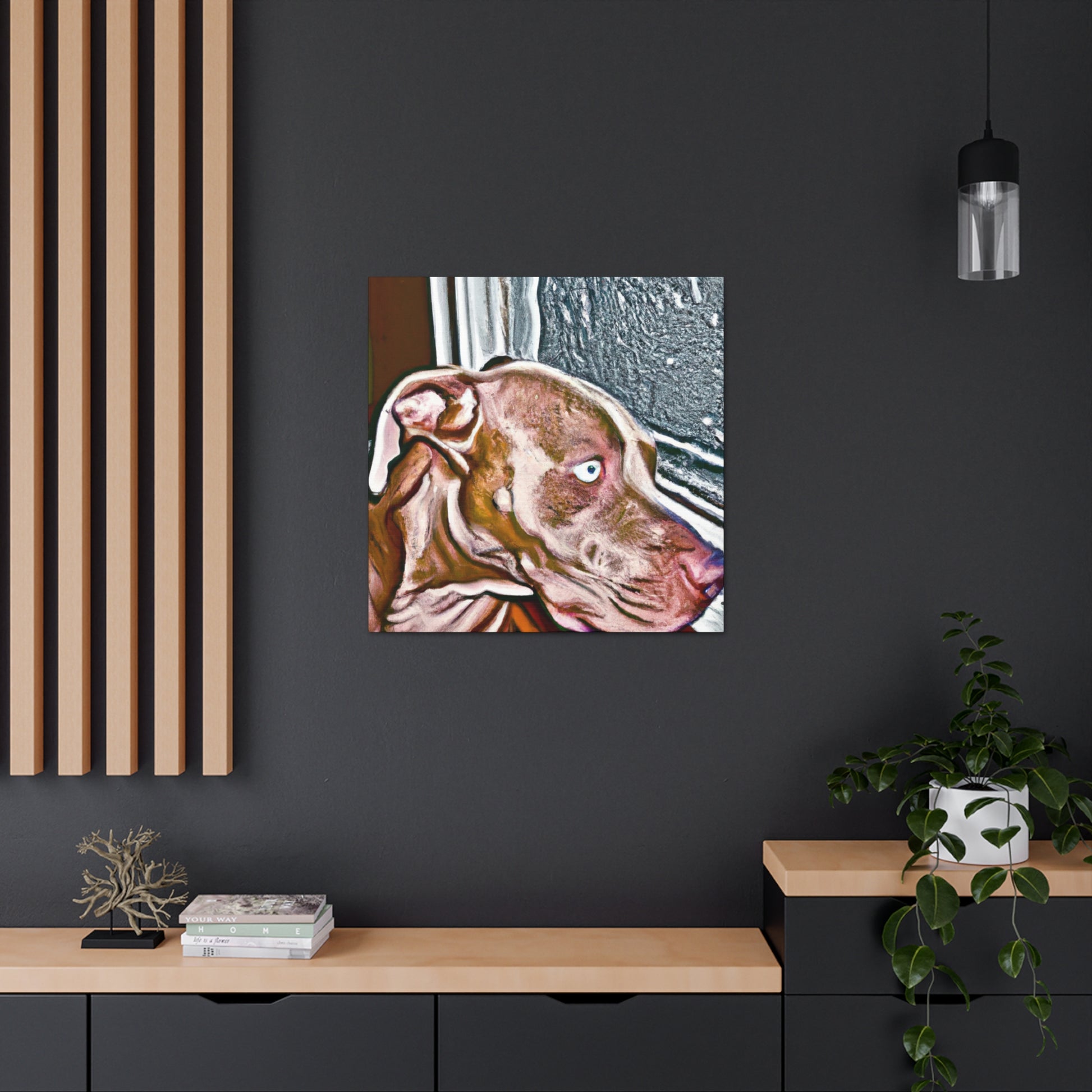 This vibrant canvas of abstract art features a portrait of a young brown pit bull looking with hope and determination out the window. The striking realism of the pup is juxtaposed with the dreamy, trippy colors of the abstract background that radiate with energy and sentiment. Perfect for any home, this painting is sure to be a unique and exquisite conversation piece. #abstractart #dogart #canvasart #colorfulart #abstractpainting #youngdog #pittie #brownpittie #vibrantart #energyart #mysteriousart