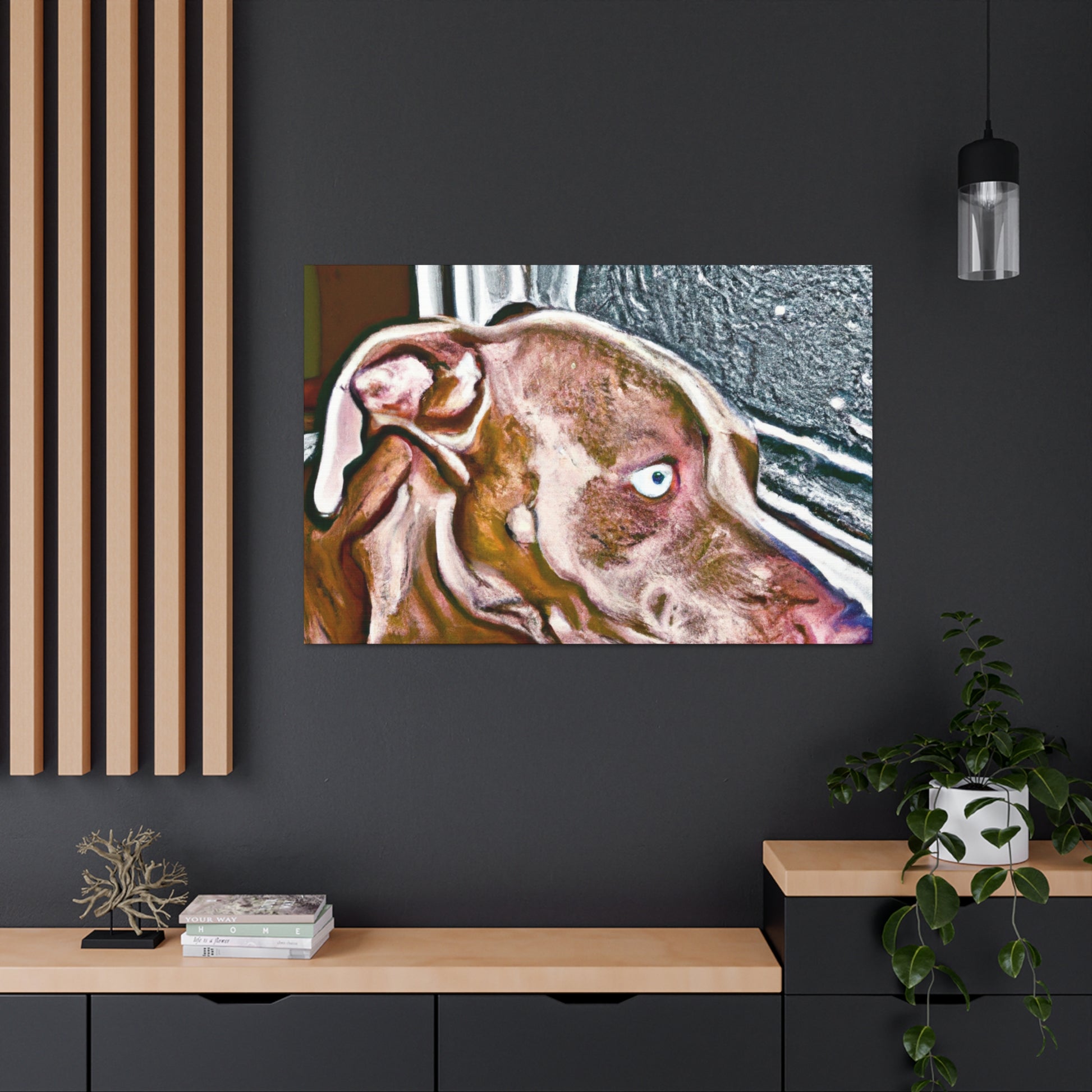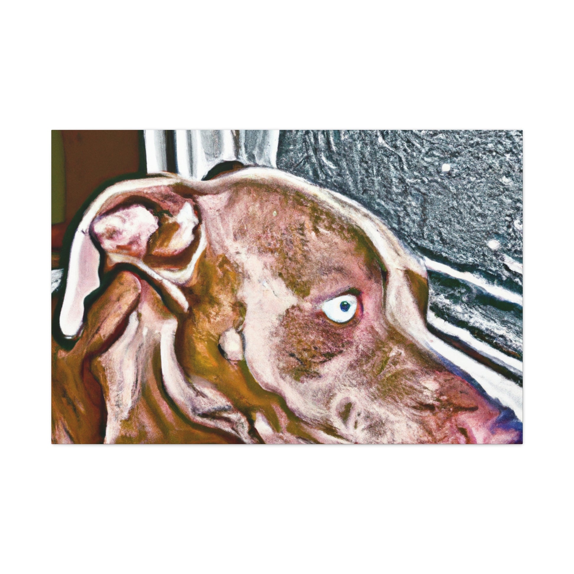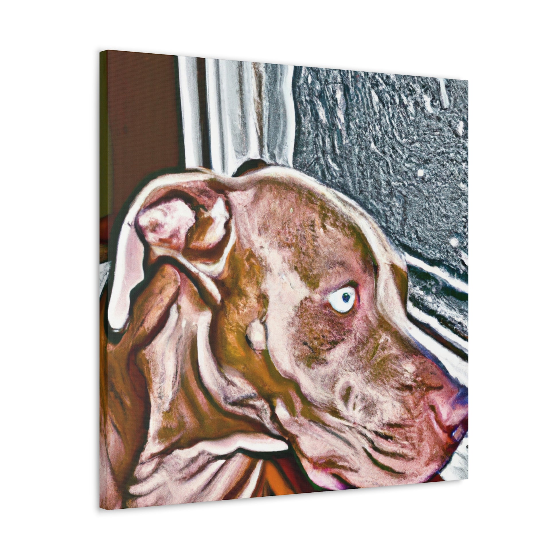 This vibrant canvas of abstract art features a portrait of a young brown pit bull looking with hope and determination out the window. The striking realism of the pup is juxtaposed with the dreamy, trippy colors of the abstract background that radiate with energy and sentiment. Perfect for any home, this painting is sure to be a unique and exquisite conversation piece. #abstractart #dogart #canvasart #colorfulart #abstractpainting #youngdog #pittie #brownpittie #vibrantart #energyart #mysteriousart