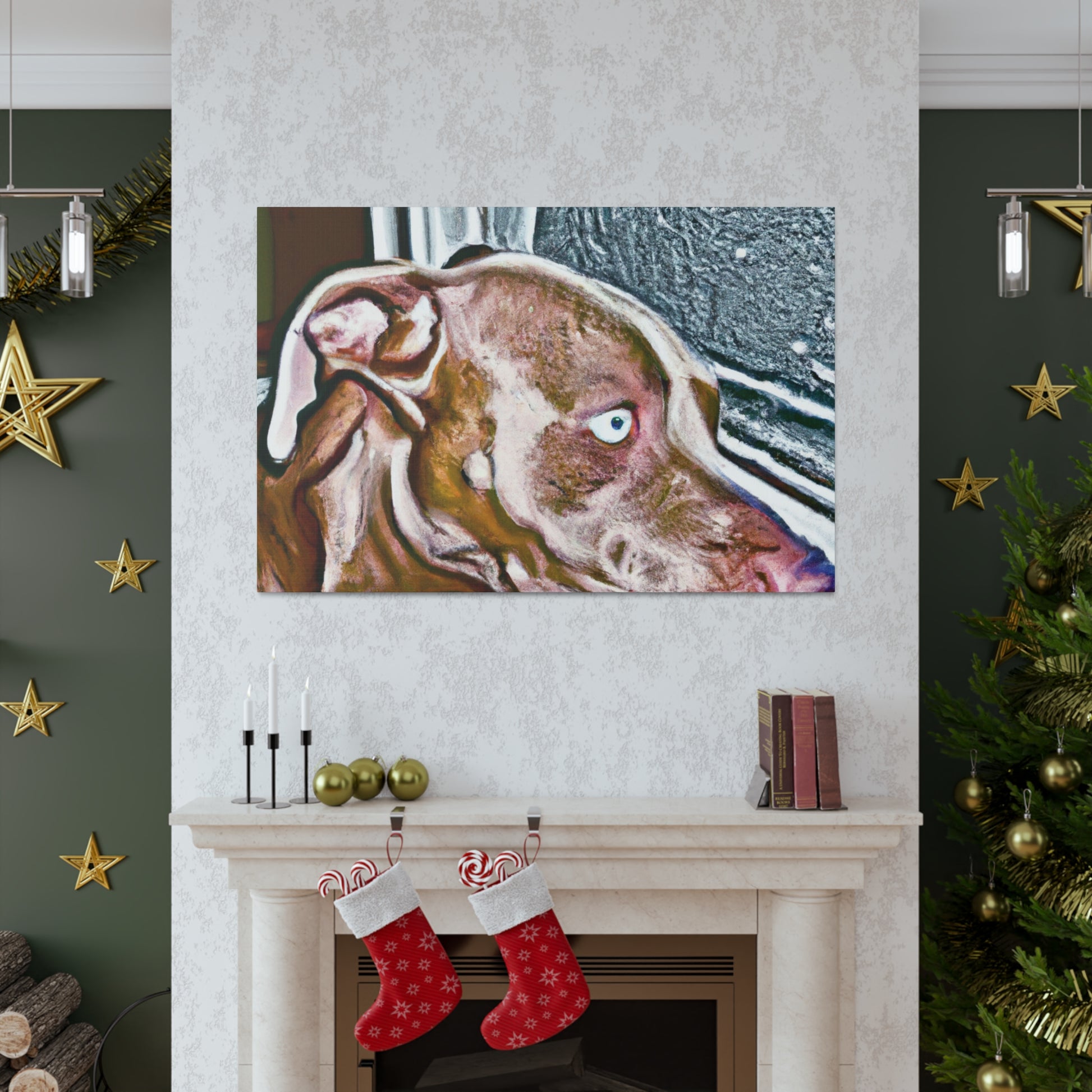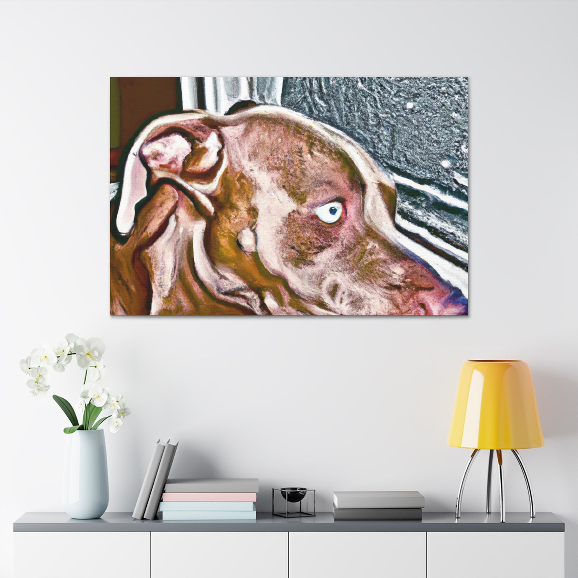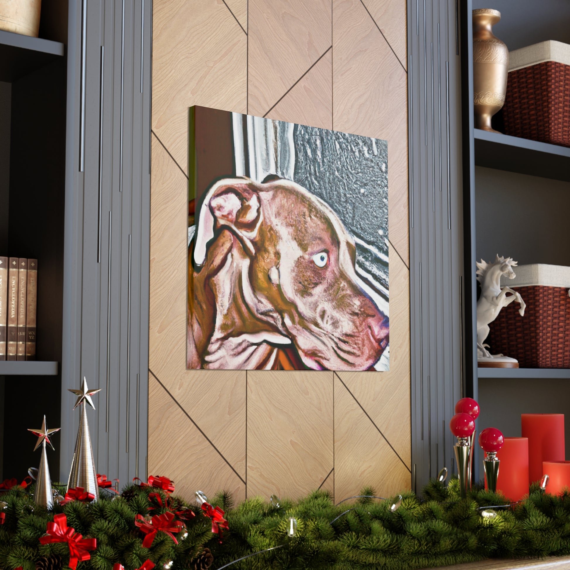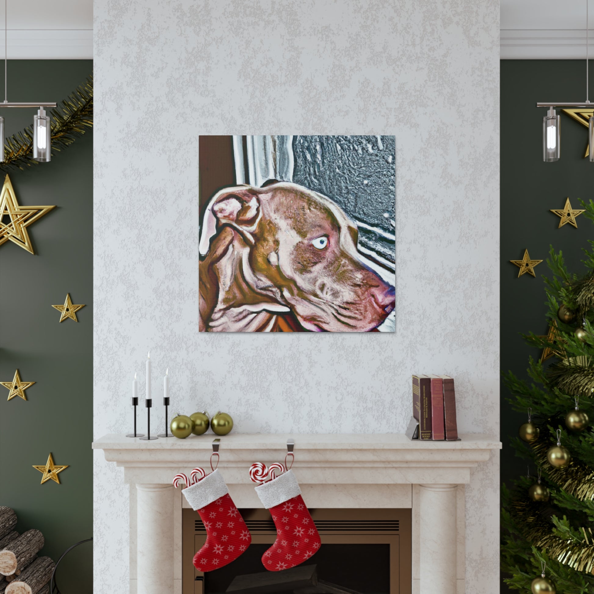 This vibrant canvas of abstract art features a portrait of a young brown pit bull looking with hope and determination out the window. The striking realism of the pup is juxtaposed with the dreamy, trippy colors of the abstract background that radiate with energy and sentiment. Perfect for any home, this painting is sure to be a unique and exquisite conversation piece. #abstractart #dogart #canvasart #colorfulart #abstractpainting #youngdog #pittie #brownpittie #vibrantart #energyart #mysteriousart