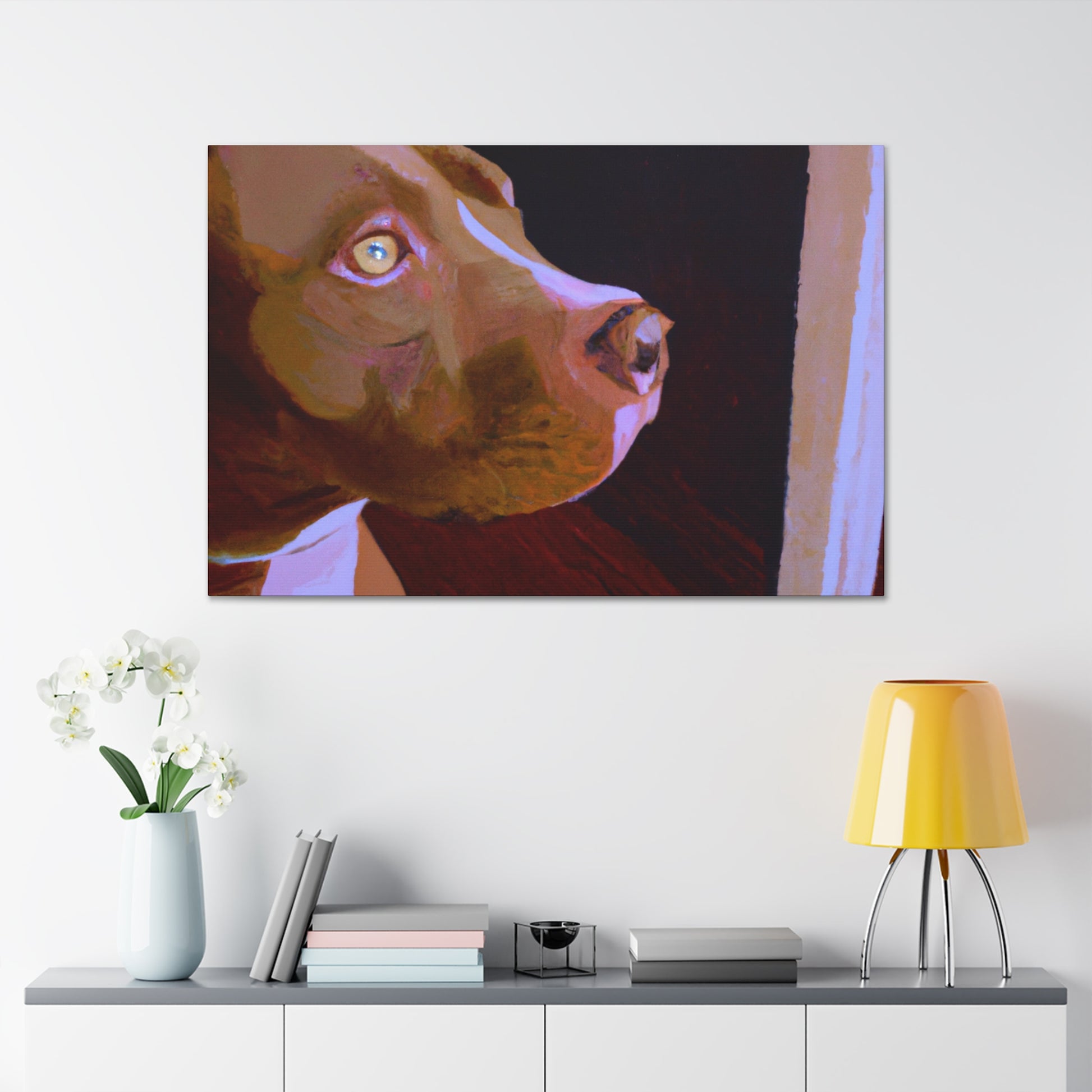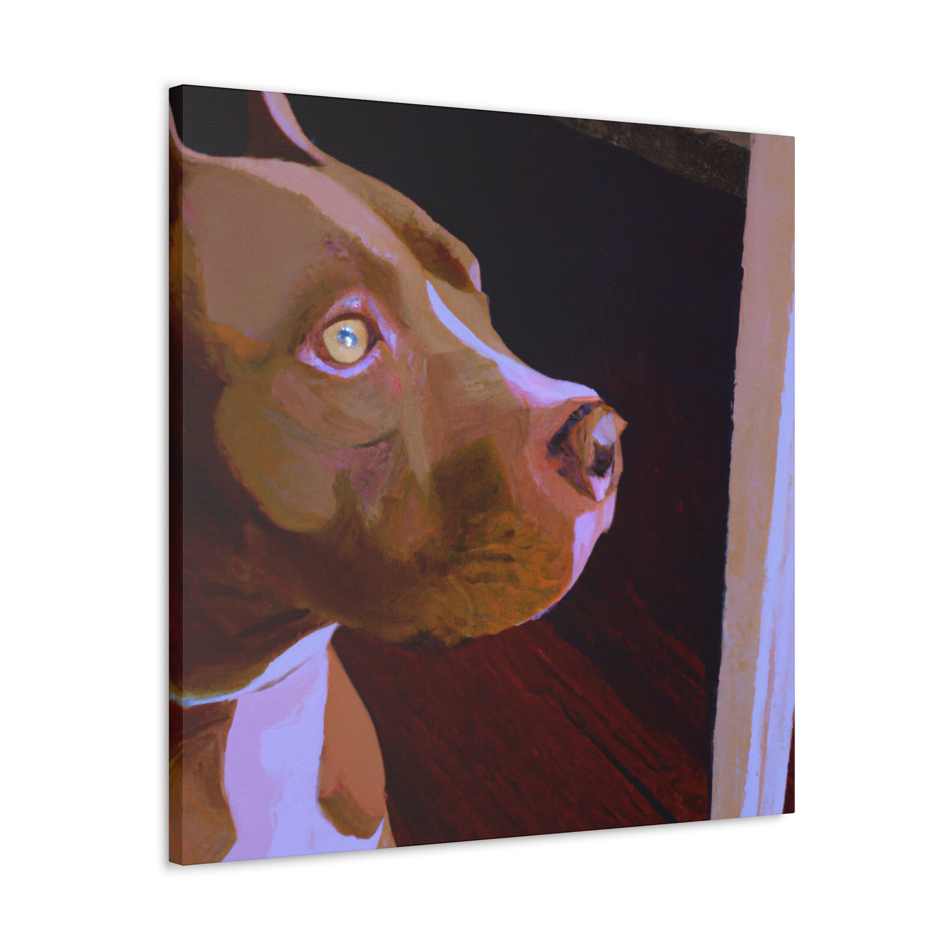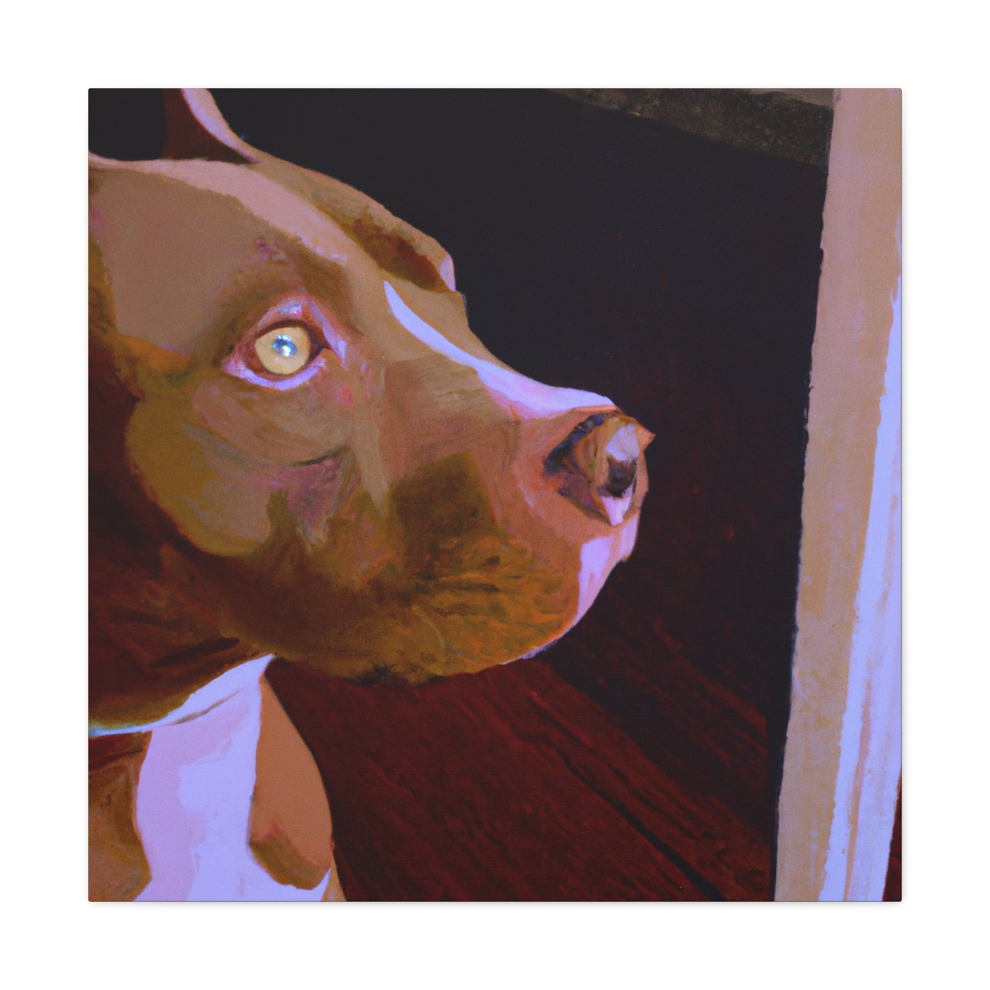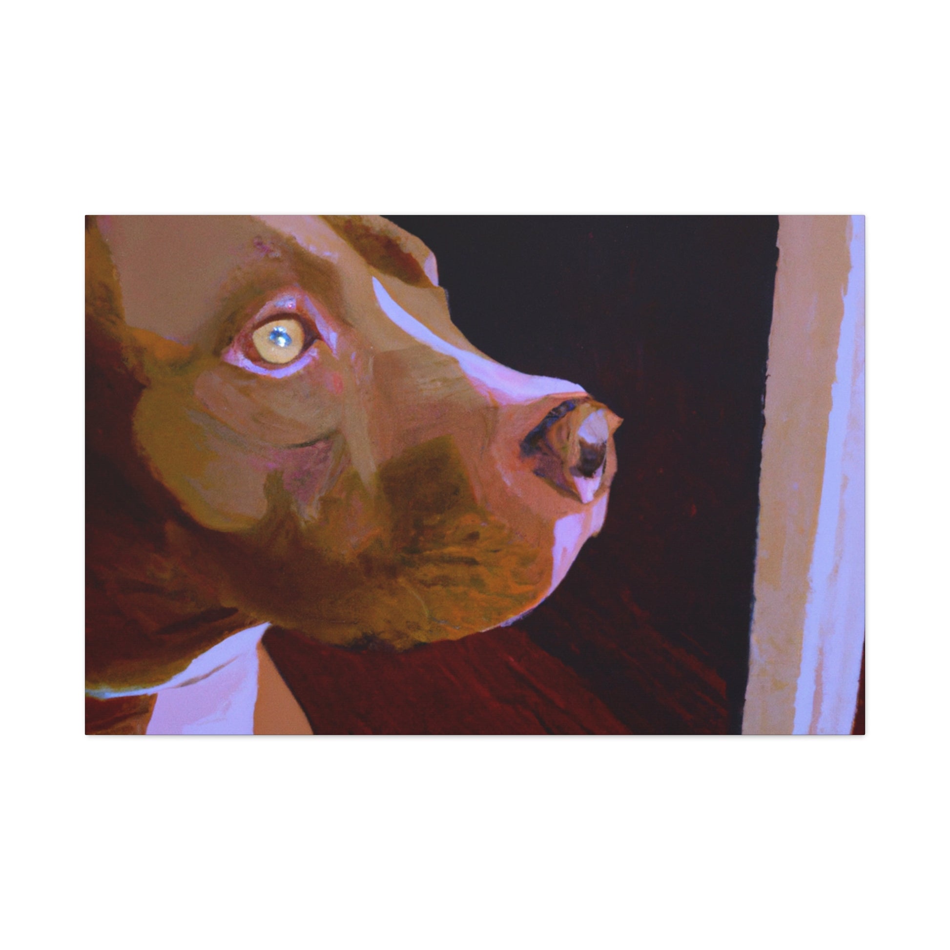 This one-of-a-kind canvas features a brown pit bull glancing out the window with endearing life in his eyes. A surreal and trippy background boosts the allure of the painting and is sure to make a conversation piece in any room. Hang one in your home or office to bring some color and inspiration into your day. #art #painting #homedecor #abstractart #dogs #dogsofinstagram #pittie #canvasart #eye catching #statementpiece #accentpiece
