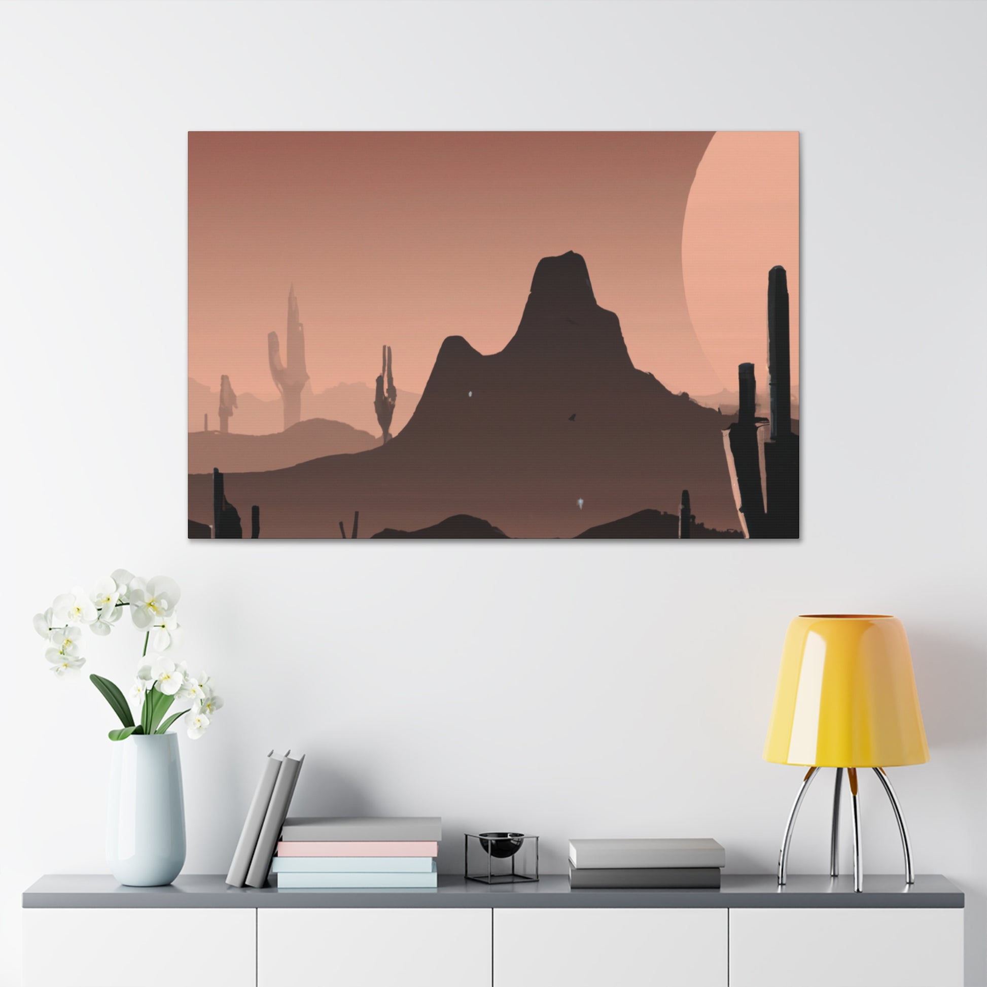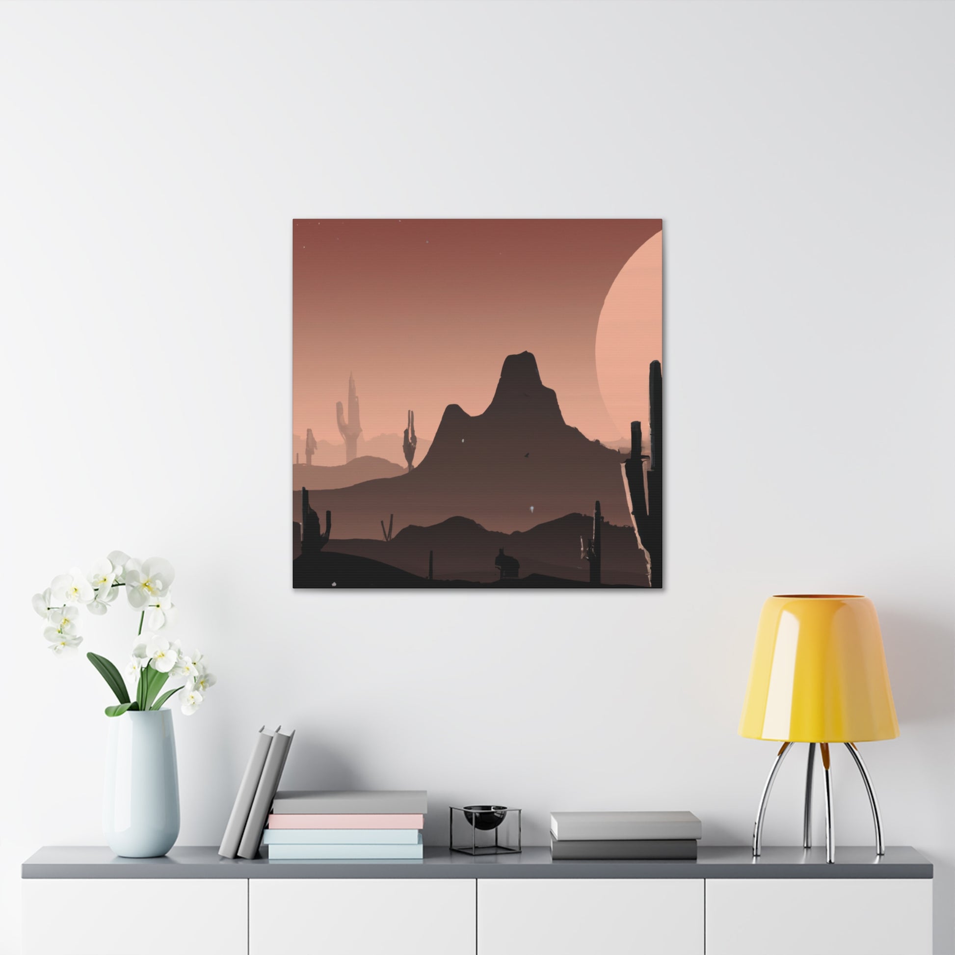 This canvas of modern desert theme for living room wall is perfect for those who want to make a statement in their home! The vibrant colors and sweeping landscape will create a feeling of calm and serenity throughout the room. This digital artpiece is stylish, modern, and will bring a unique style to your space. Enhance your home today! #modernart #deserttheme #homedecor #liviningroomdecor #artpiece #digitalart #statementwall #canvasart #modernstyle #roomenhancement #calmandserenity