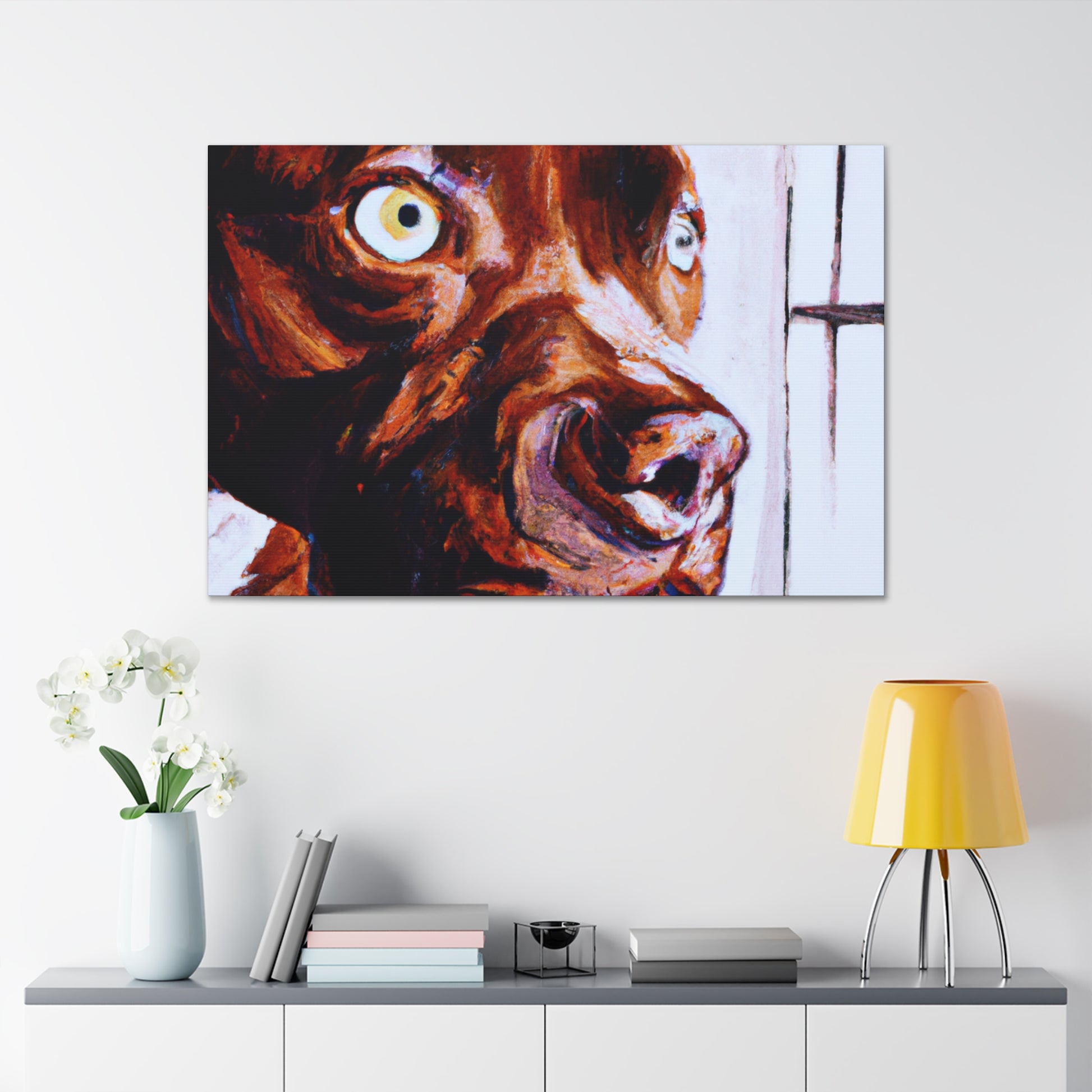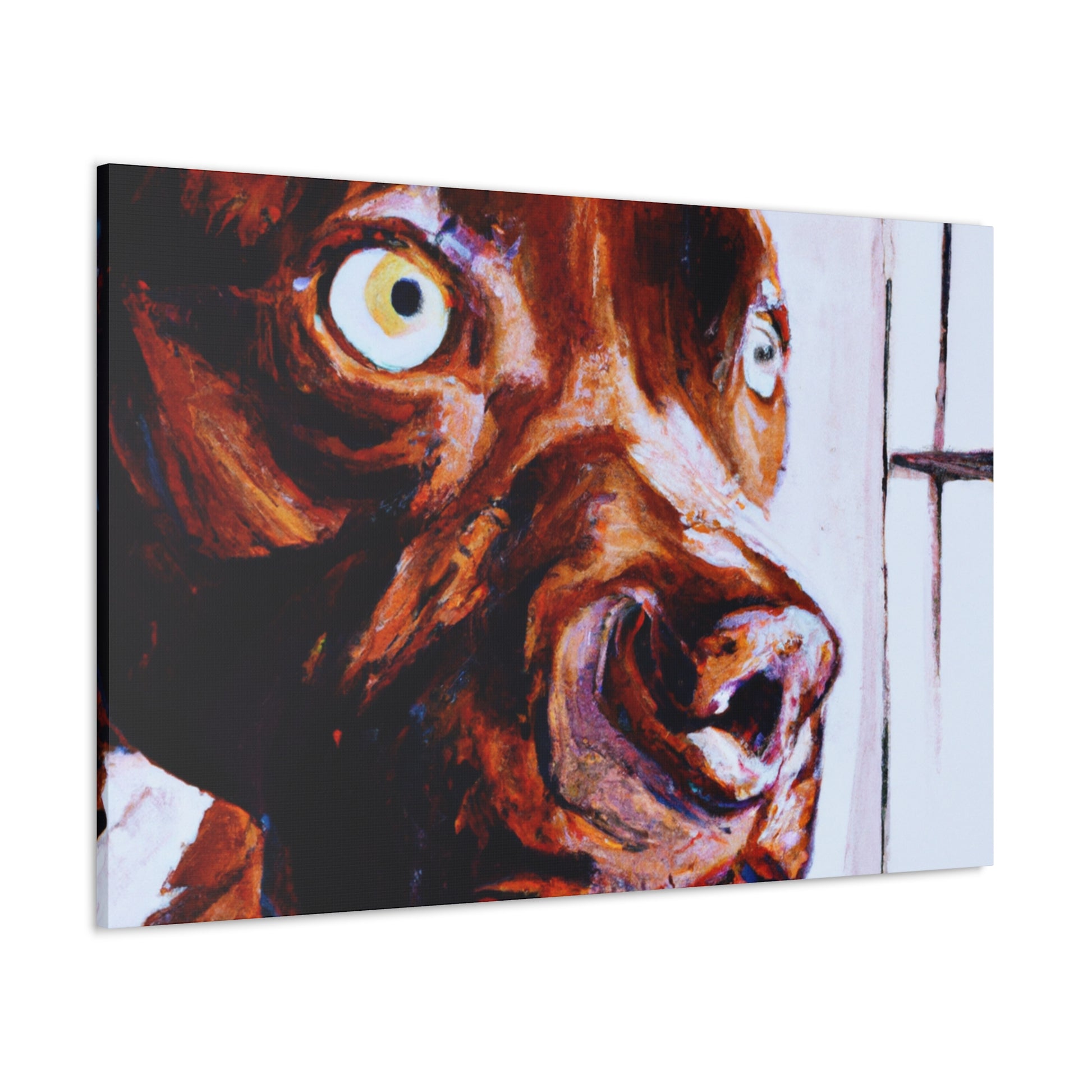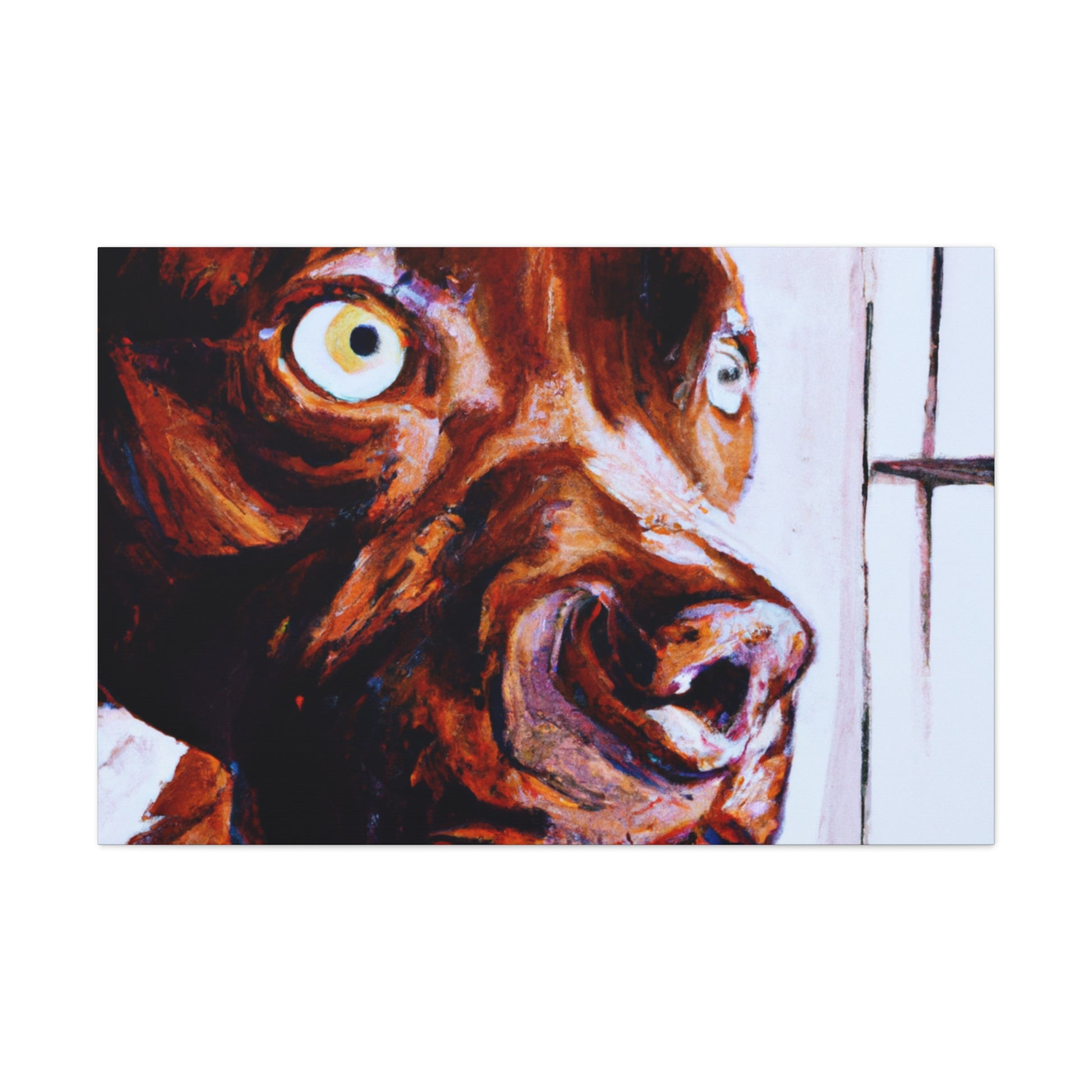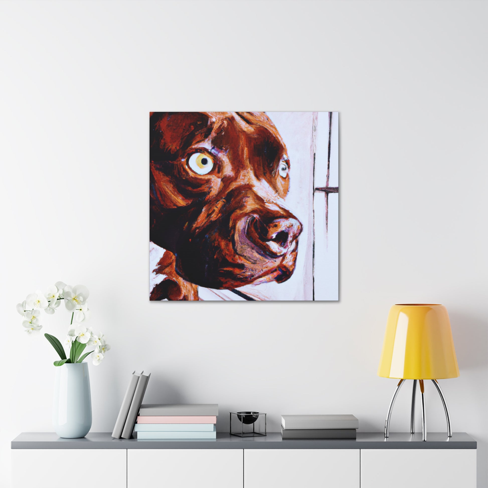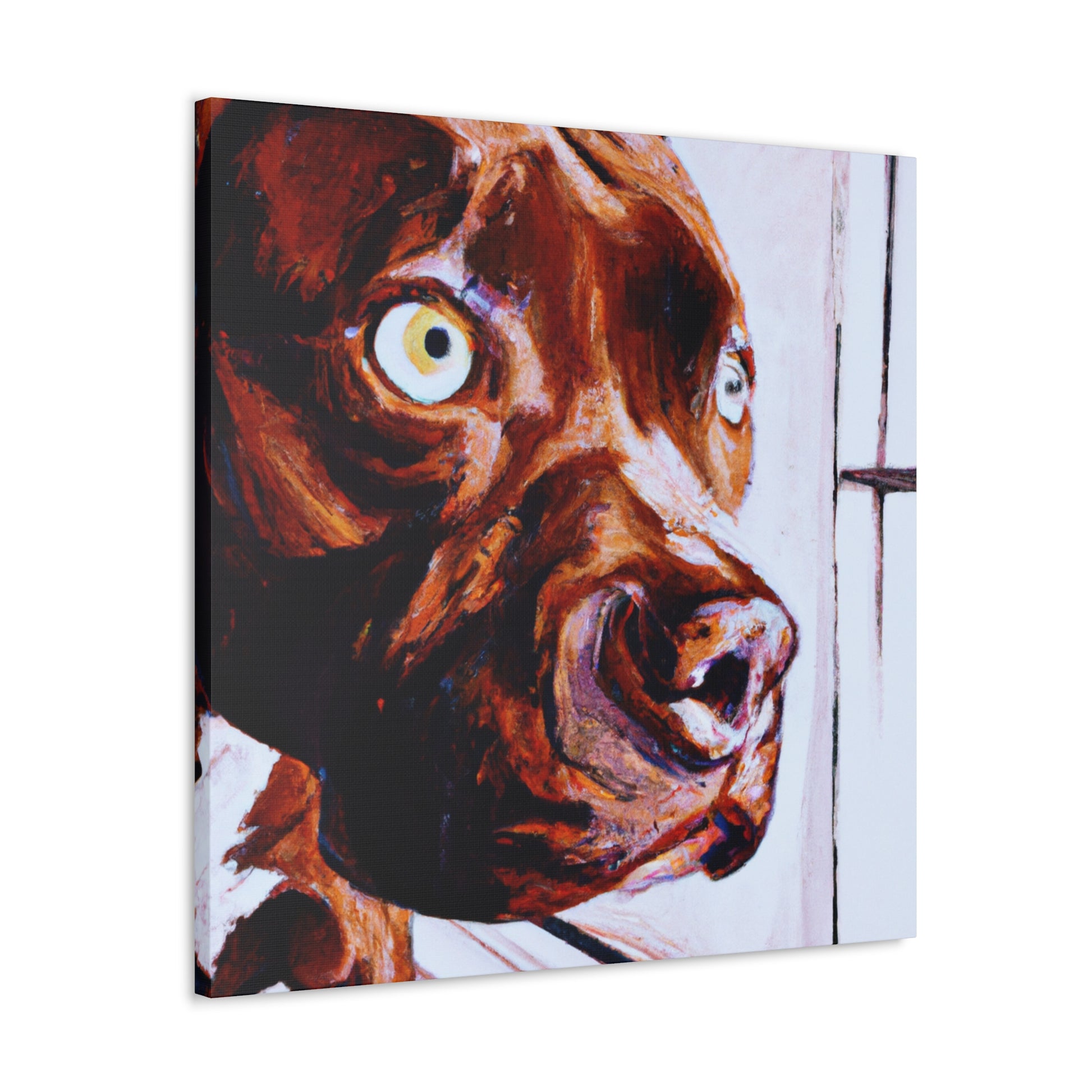 This show-stopping canvas is beyond beautiful. It depicts a young brown pit bull looking longingly out the window with lots of life in his eyes, set against a trippy, abstract backdrop. One glance will have you convinced that this masterpiece was created with passion and finesse. Whether you hang it in your living room, bedroom, or office, this one-of-a-kind piece will add instant elegance to the atmosphere. #painting #Canvas #dog #abstract #trippy #brown #PitBull #homeDecor #decor #adorable #style #art