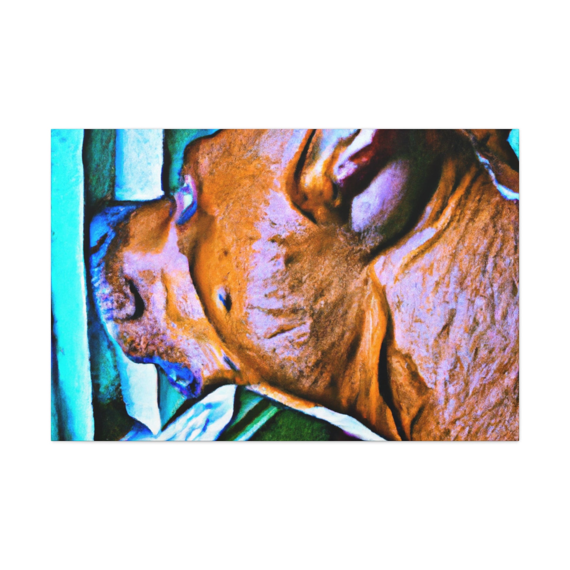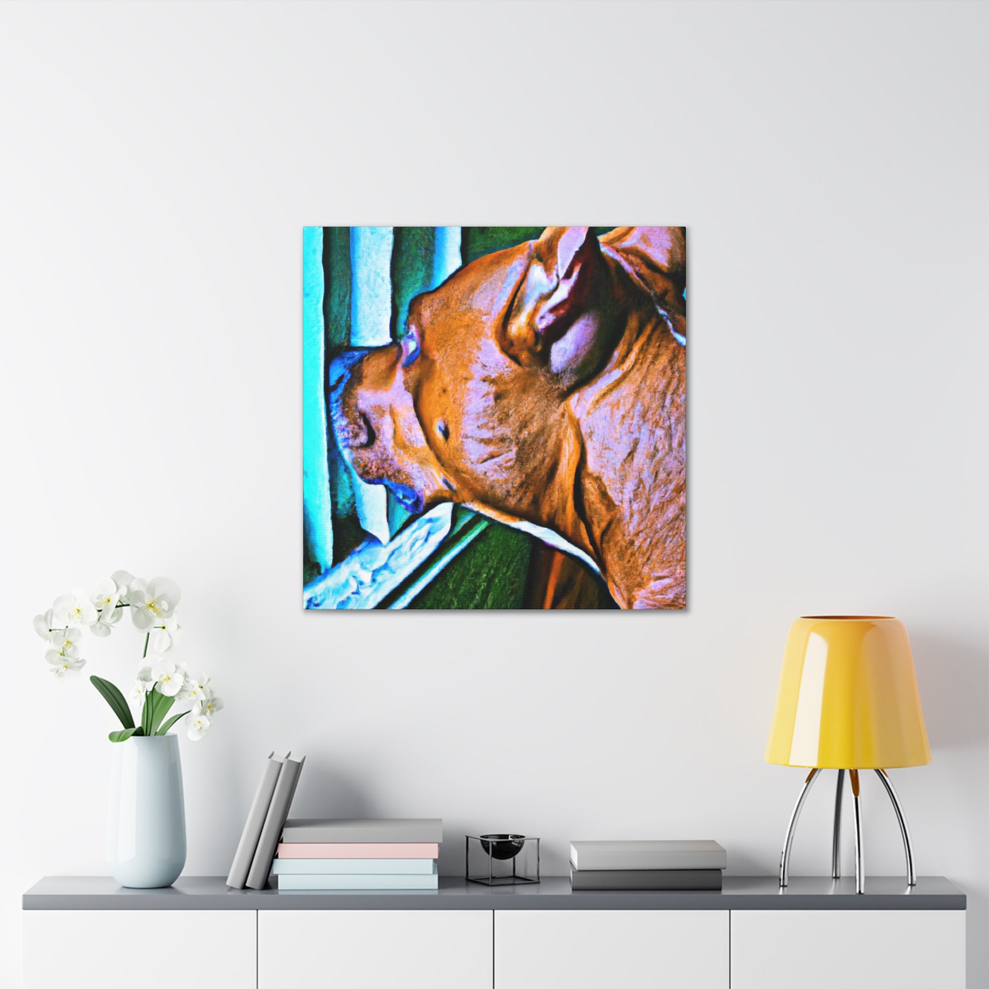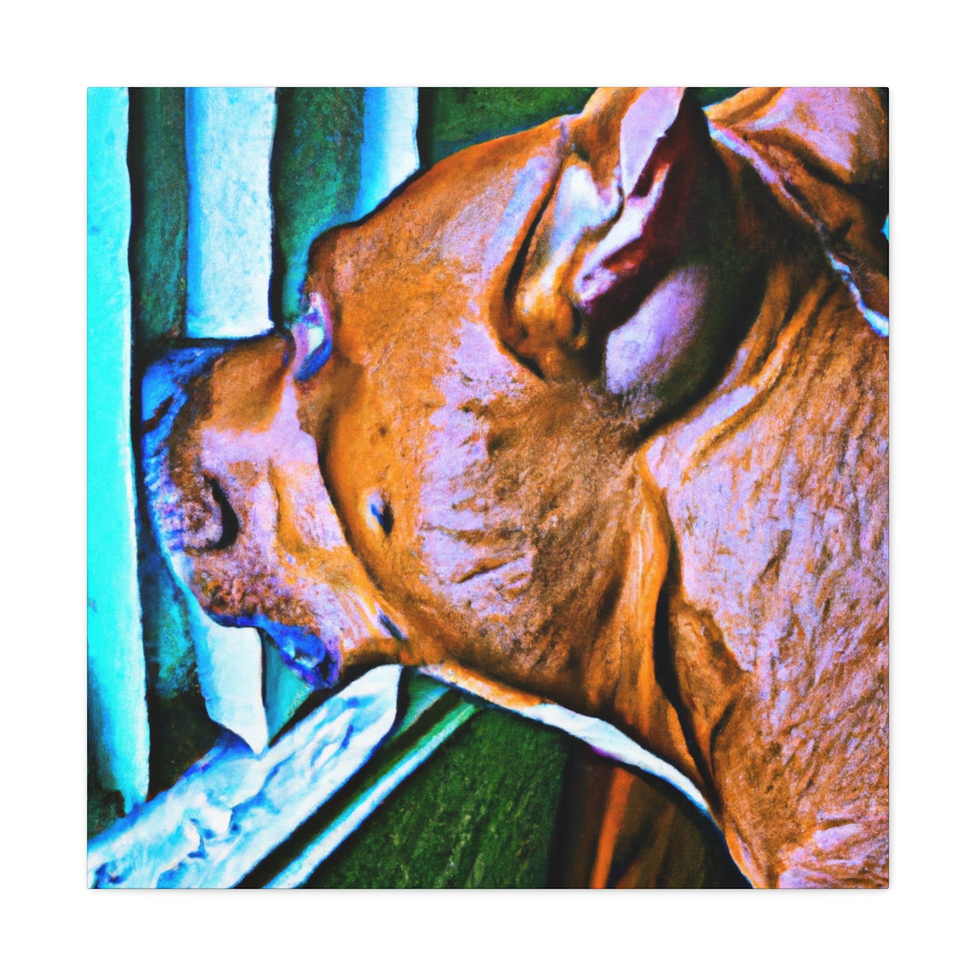 This majestic canvas of abstract imagery portrays a young brown pit bull looking longingly out the window, with life in his eyes. While the pup is as clear as day, a burst of vibrant colors create a mesmerizing and trippy background to set the scene. This painting is sure to add a touch of class to any space. #abstractart #dogpainting #contemporaryart #trippyart #youngdog #canvasart #pitbull #brownpitbull #windowpainting #eyesofdog #modernart
