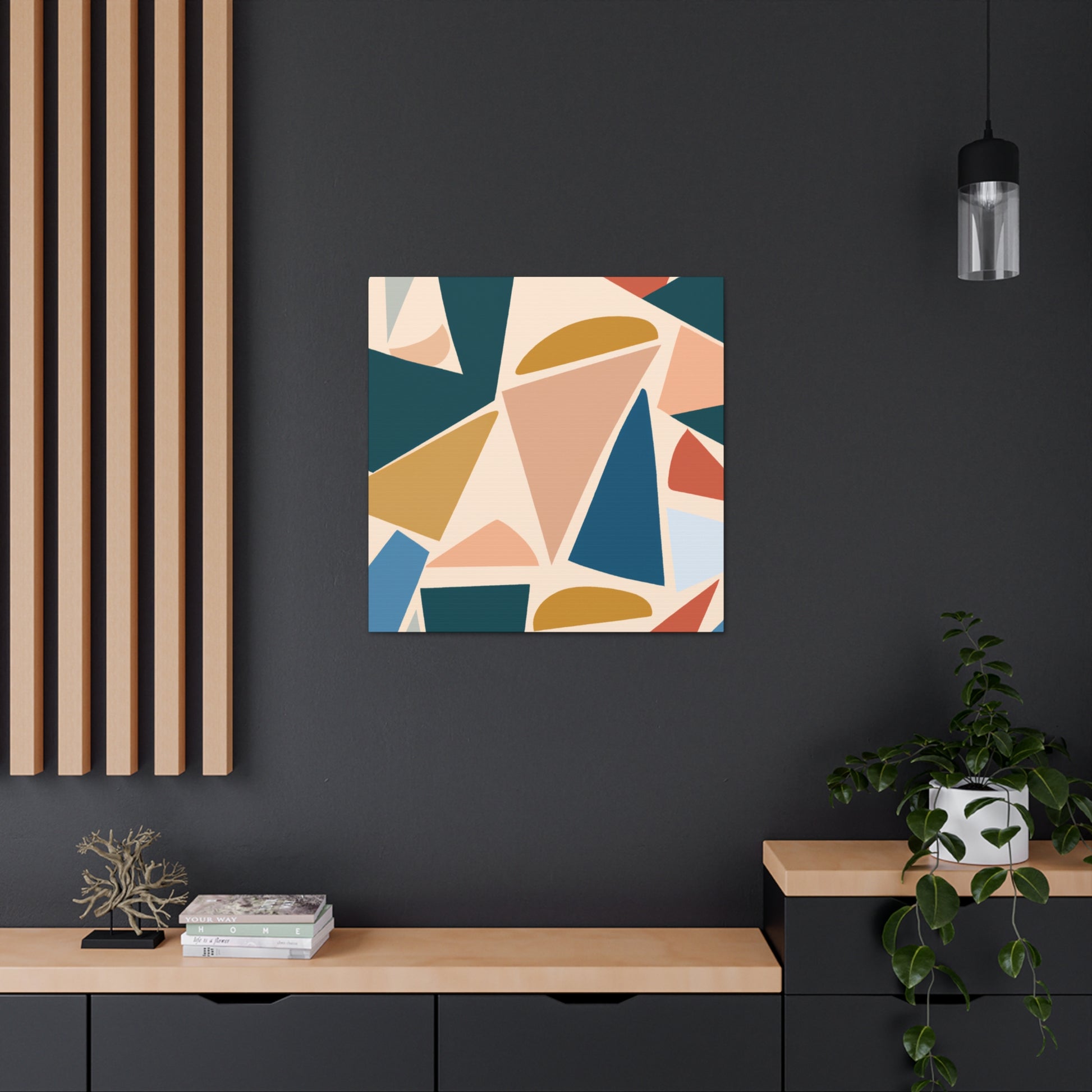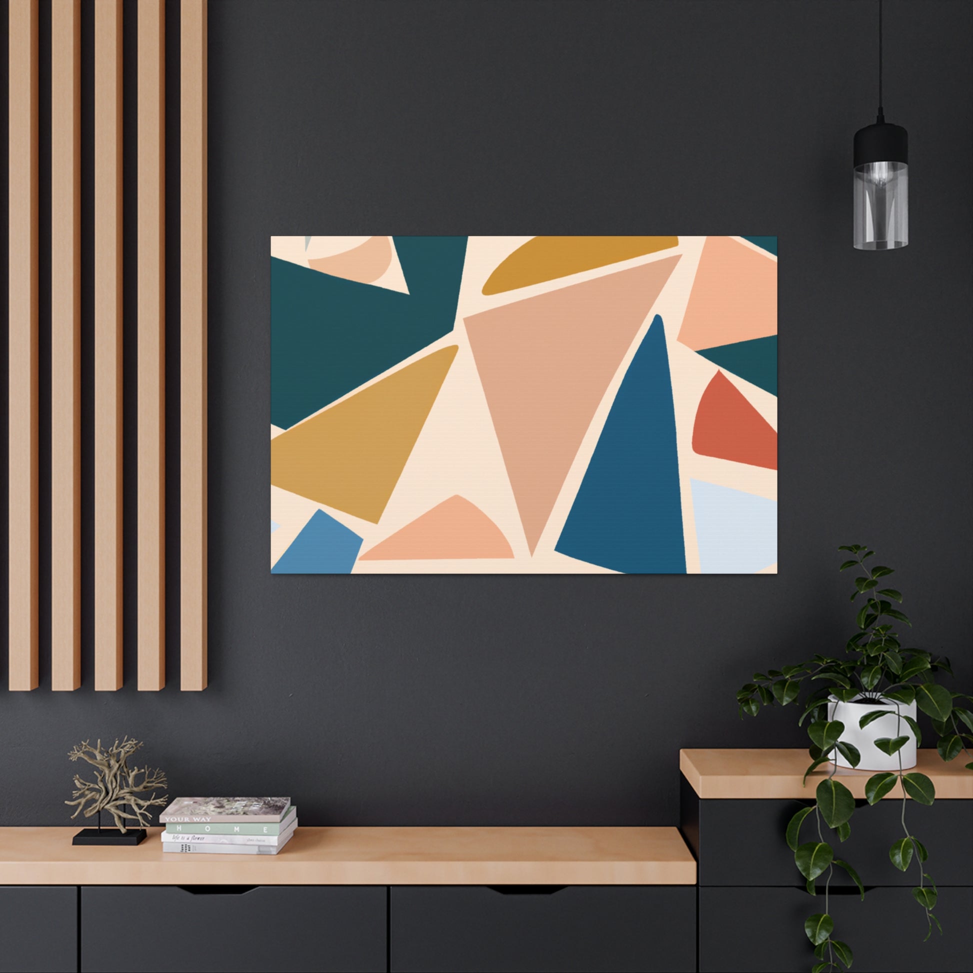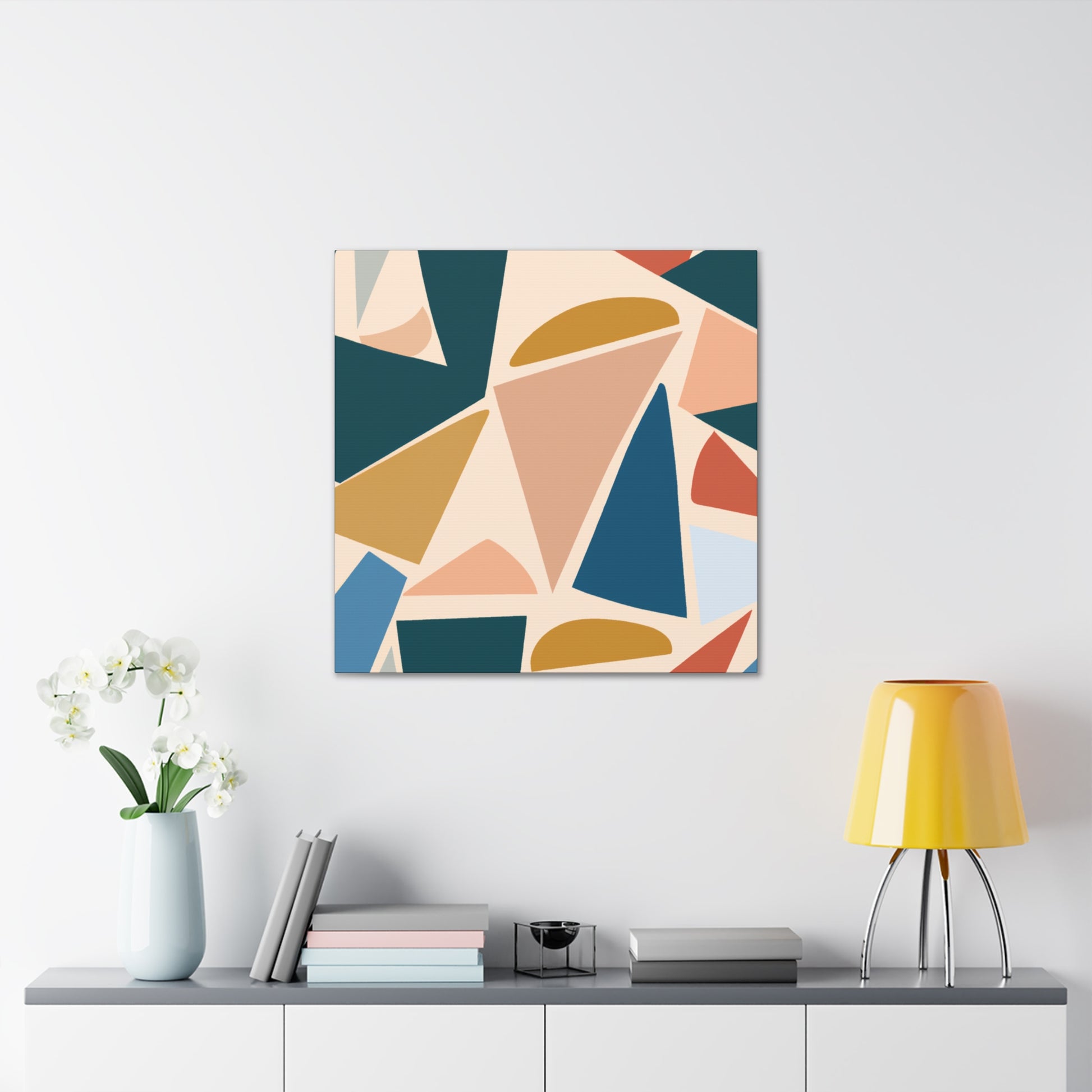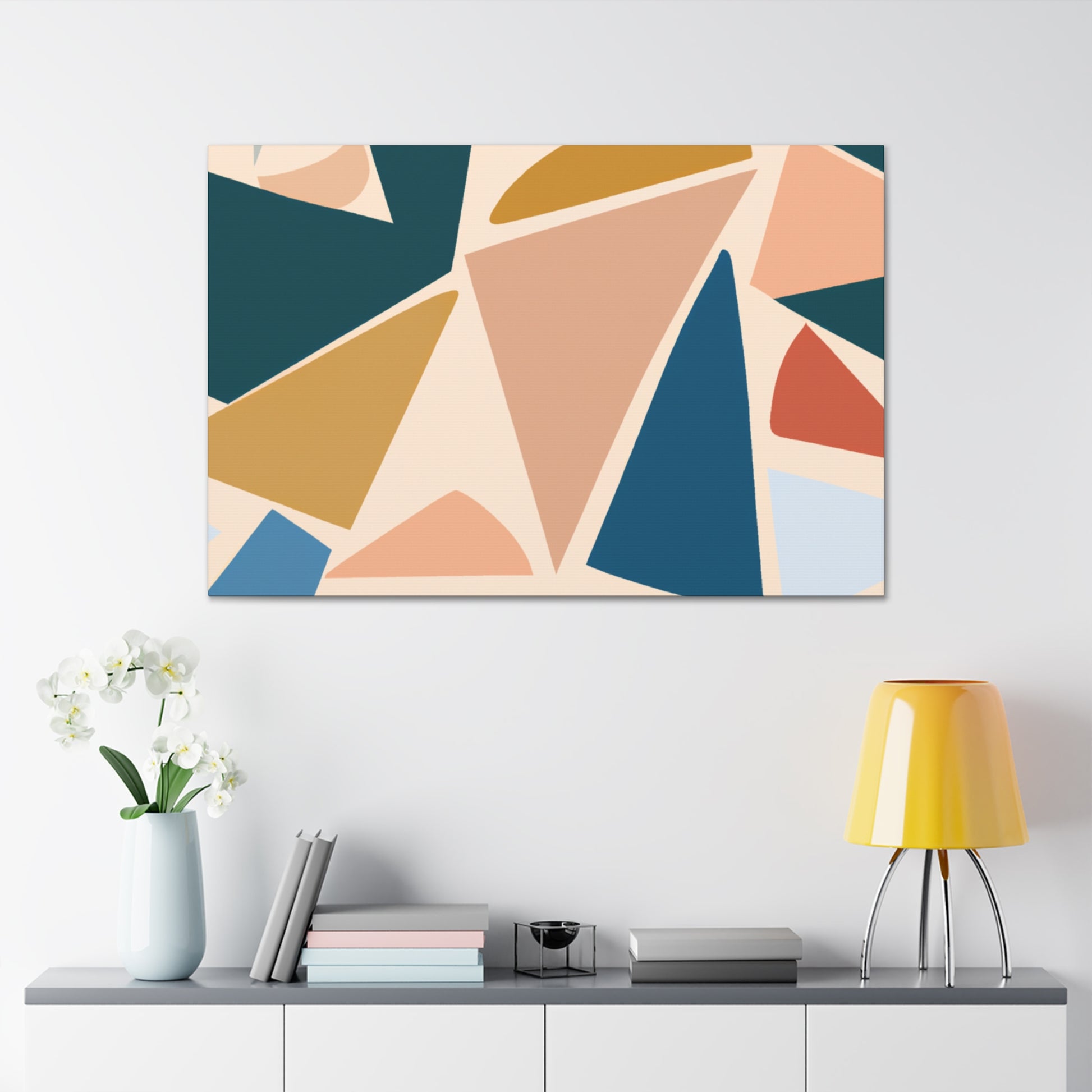 This beautiful abstract canvas will inject a dose of cool color into any room in your home. The soft and delicate geometric pattern is complemented by the elegant colors that blend together in harmony. This modern addition will help to create an eye-catching feature in your home, and add a sense of sophistication. Get creative and add accents that match the colors included in the print. #abstract #geometric #modern #home #decor #cool #art #wall #canvas #pattern #color
