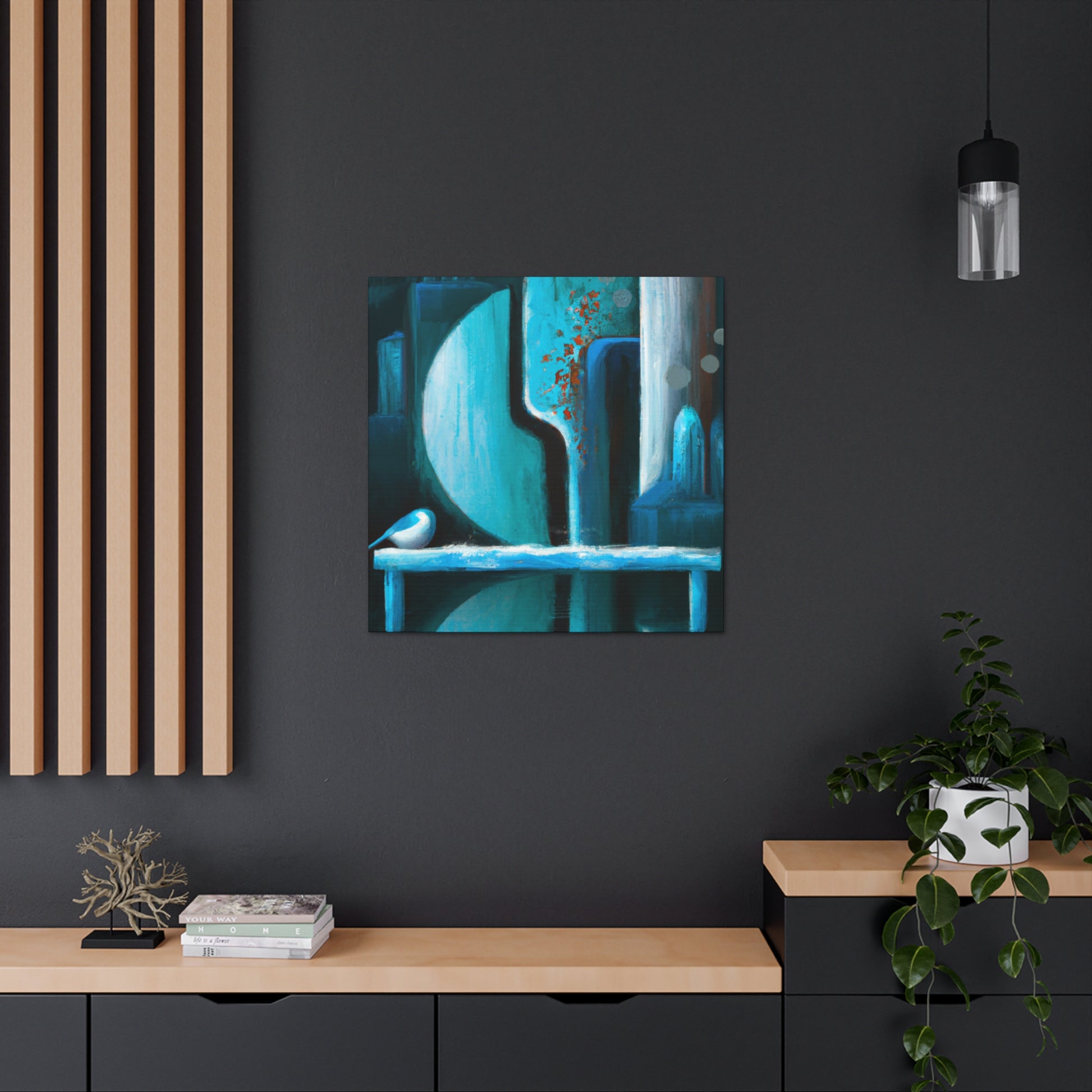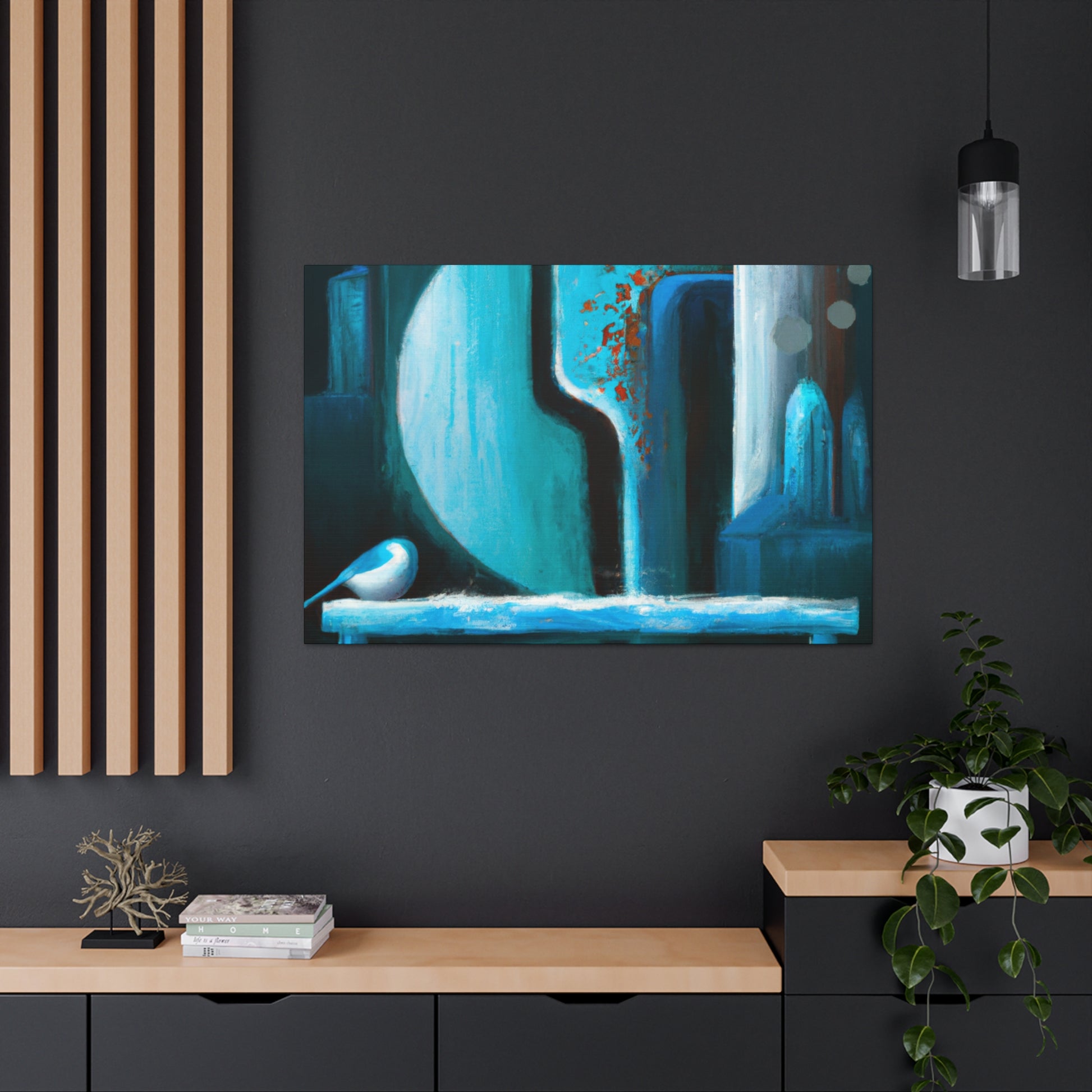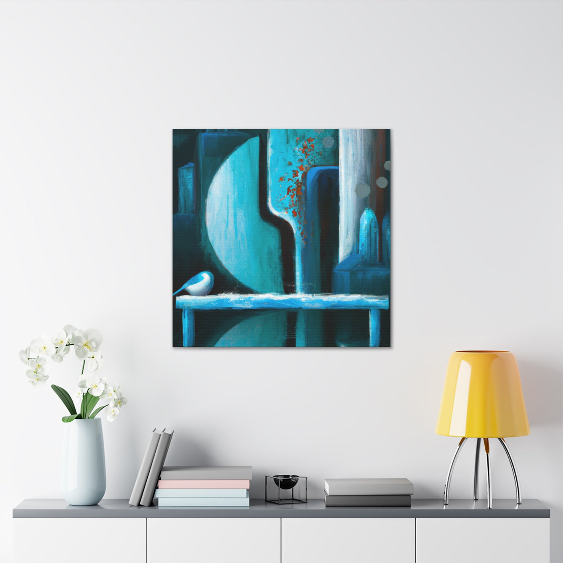 Decorate your living room with a beautiful abstract canvas painting. This unique digital art is the perfect statement piece for your home. Vibrant colors of blues, yellows, and reds create a captivating blend. Embrace your home's individuality and captivate visitors with this handmade piece. #digitalart #abstractart #artwork #canvasart #canvaspainting #homefurnishing #homedecor #livngroomdecor #interiordesign #livenupyourroom #makeastatementpiece