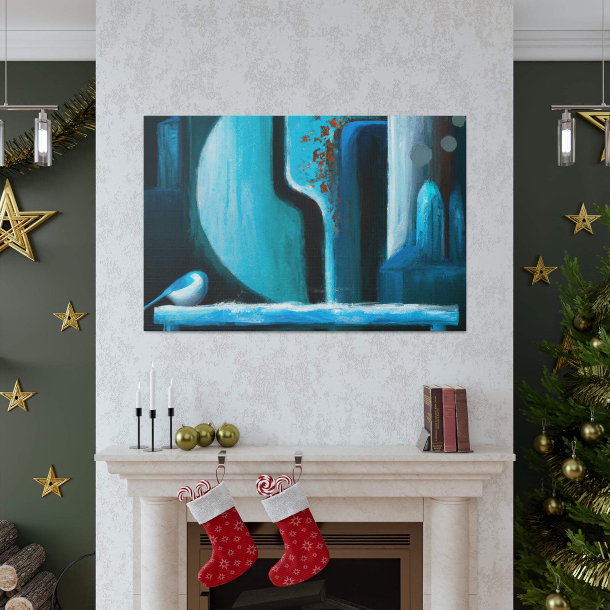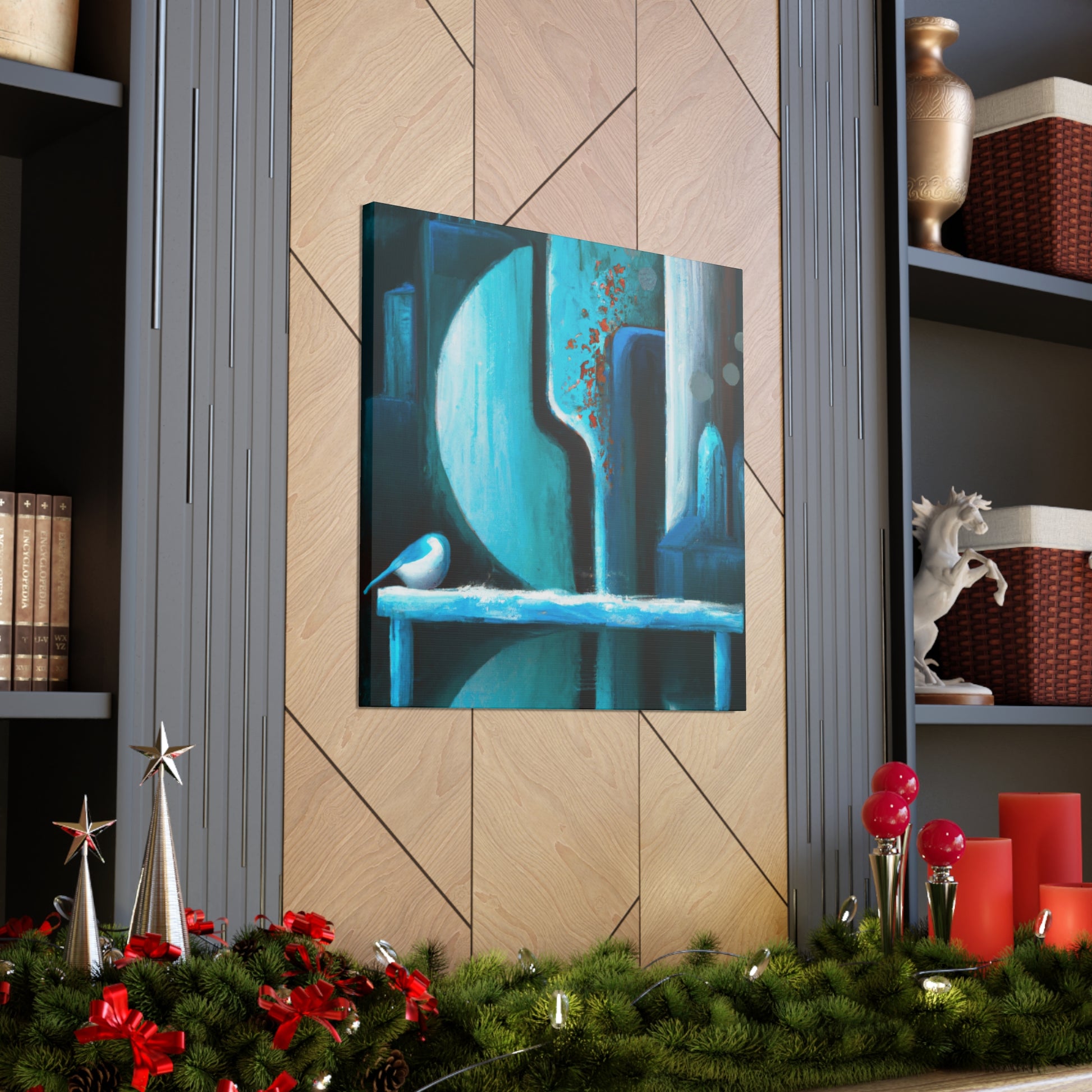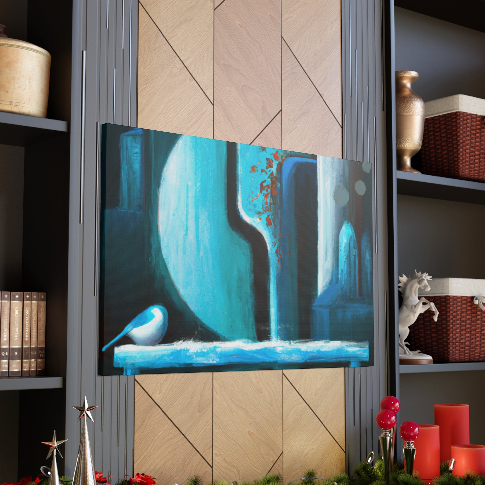 Decorate your living room with a beautiful abstract canvas painting. This unique digital art is the perfect statement piece for your home. Vibrant colors of blues, yellows, and reds create a captivating blend. Embrace your home's individuality and captivate visitors with this handmade piece. #digitalart #abstractart #artwork #canvasart #canvaspainting #homefurnishing #homedecor #livngroomdecor #interiordesign #livenupyourroom #makeastatementpiece