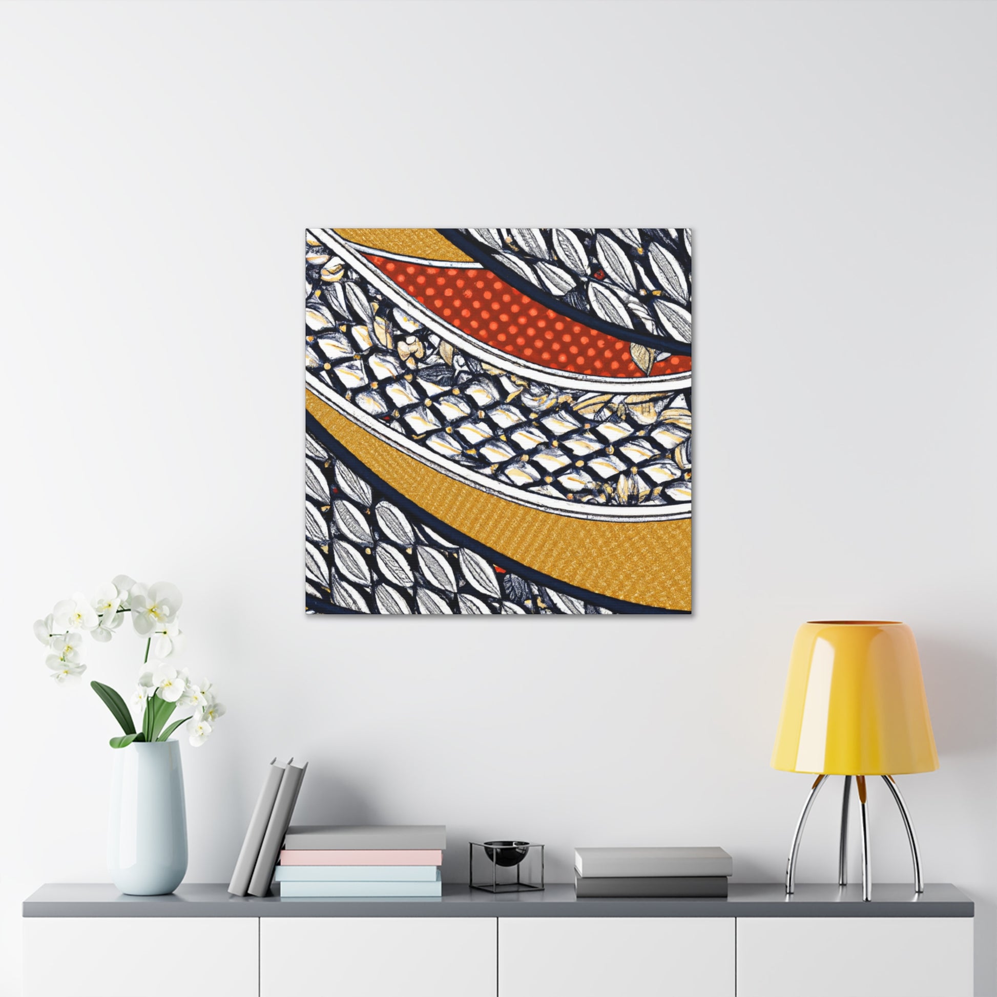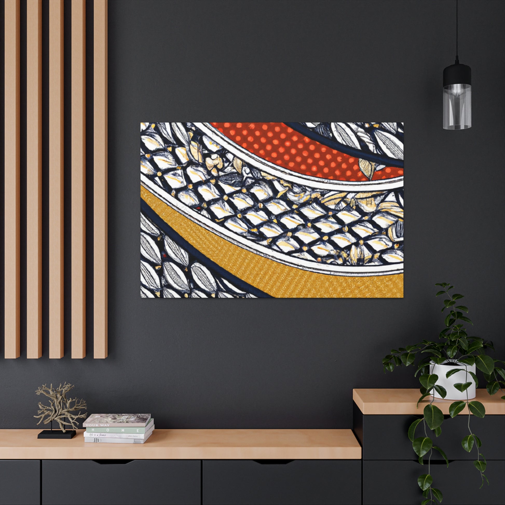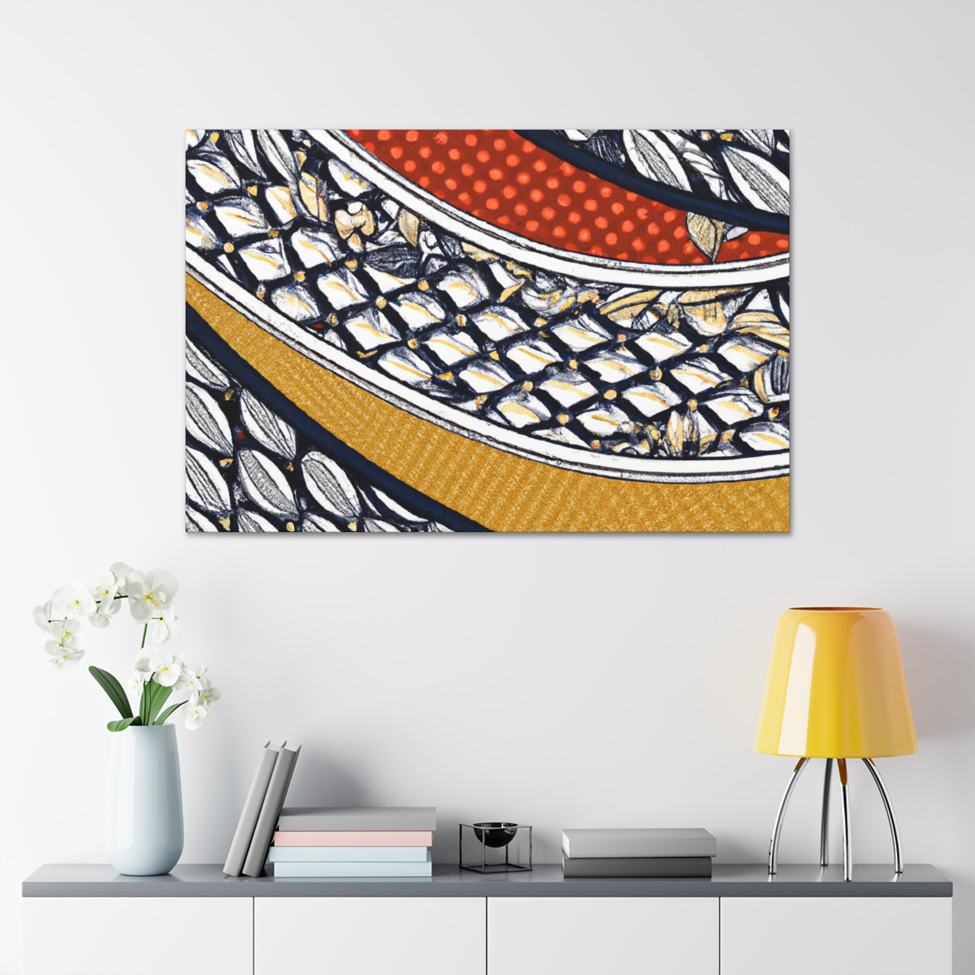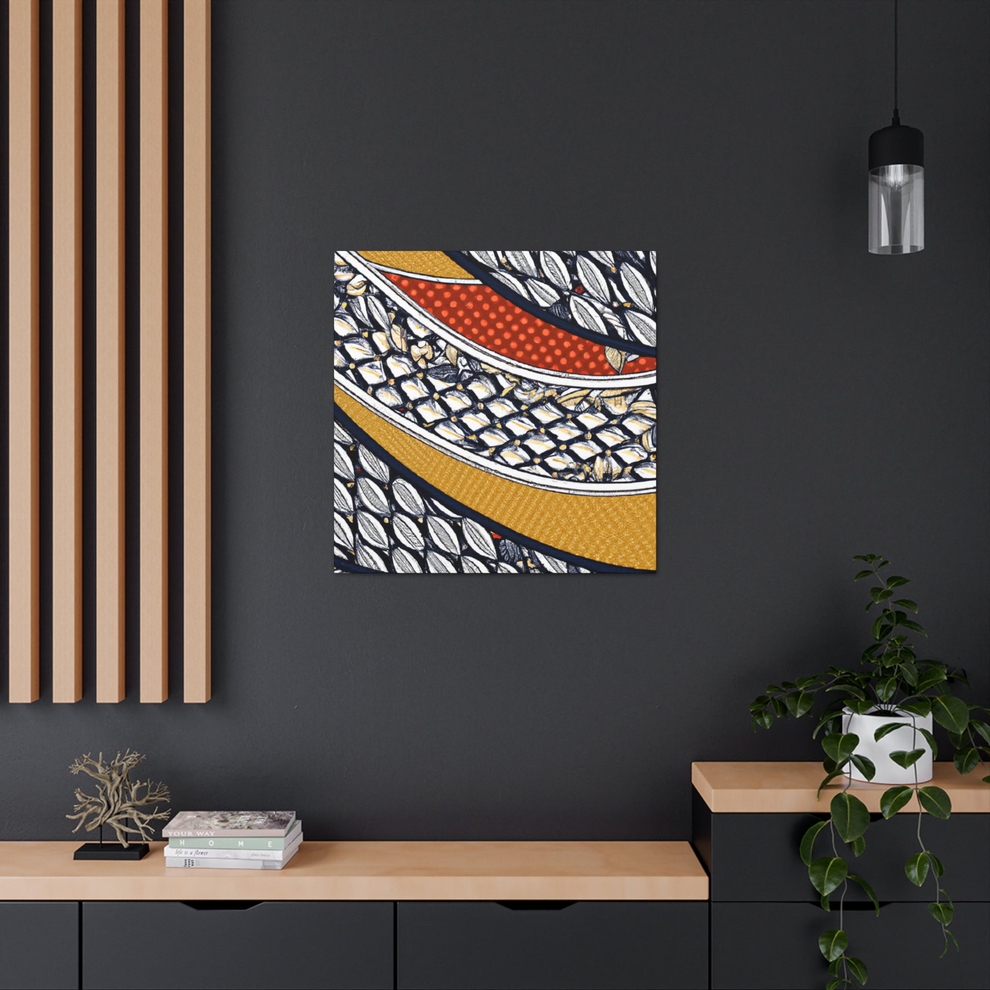 This museum-grade digital art on a Goyard-inspired canvas is perfect for bringing a splash of color to your home. Printed using archival quality inks, this beautiful, vibrent piece is sure to make a statement. Easily hung and ready to enliven any room in your home. #digitalart #Goyard #textile #canvasart #artdecor #prints #interiordesign #wallart #vibrant #archival #statementpiece #museumgrade