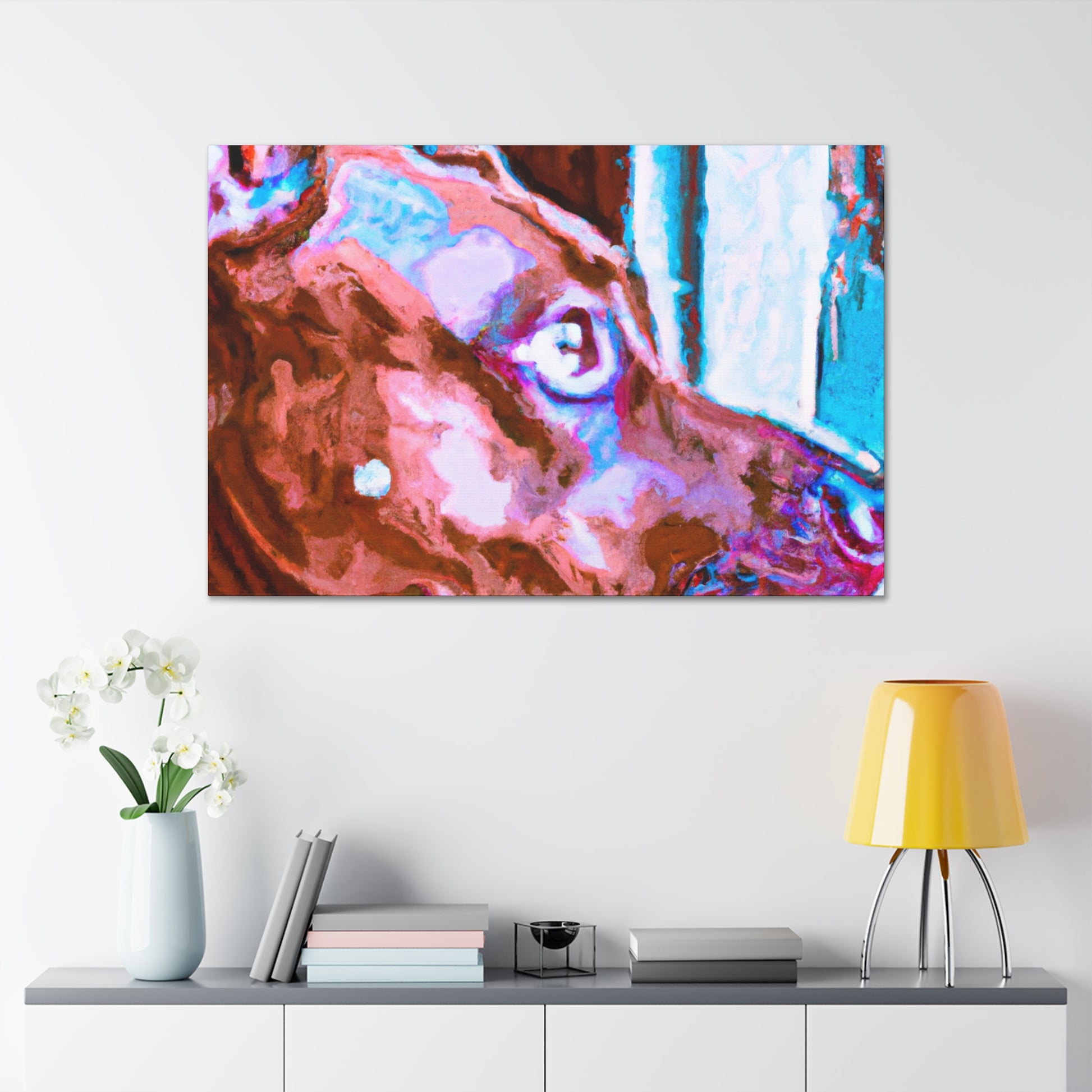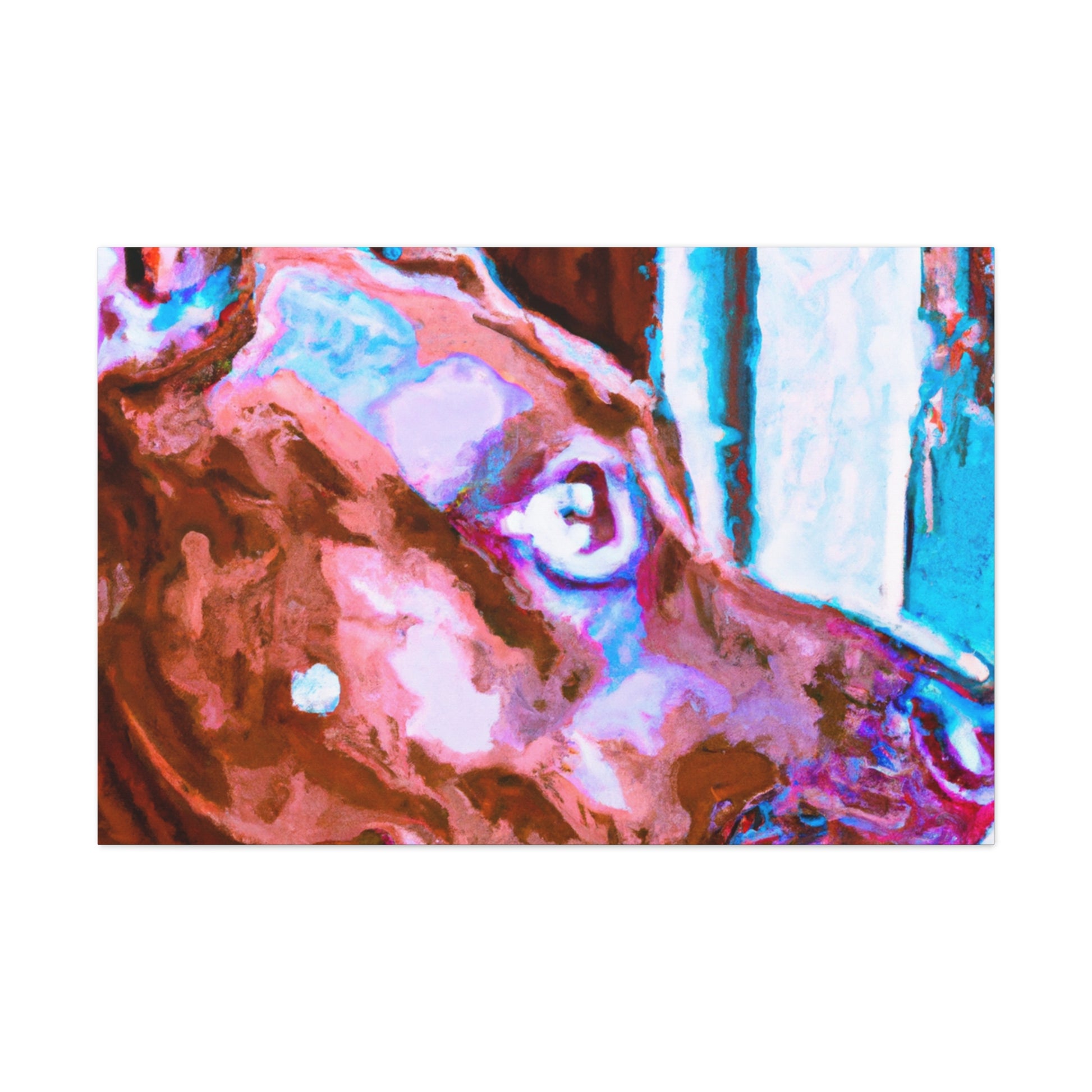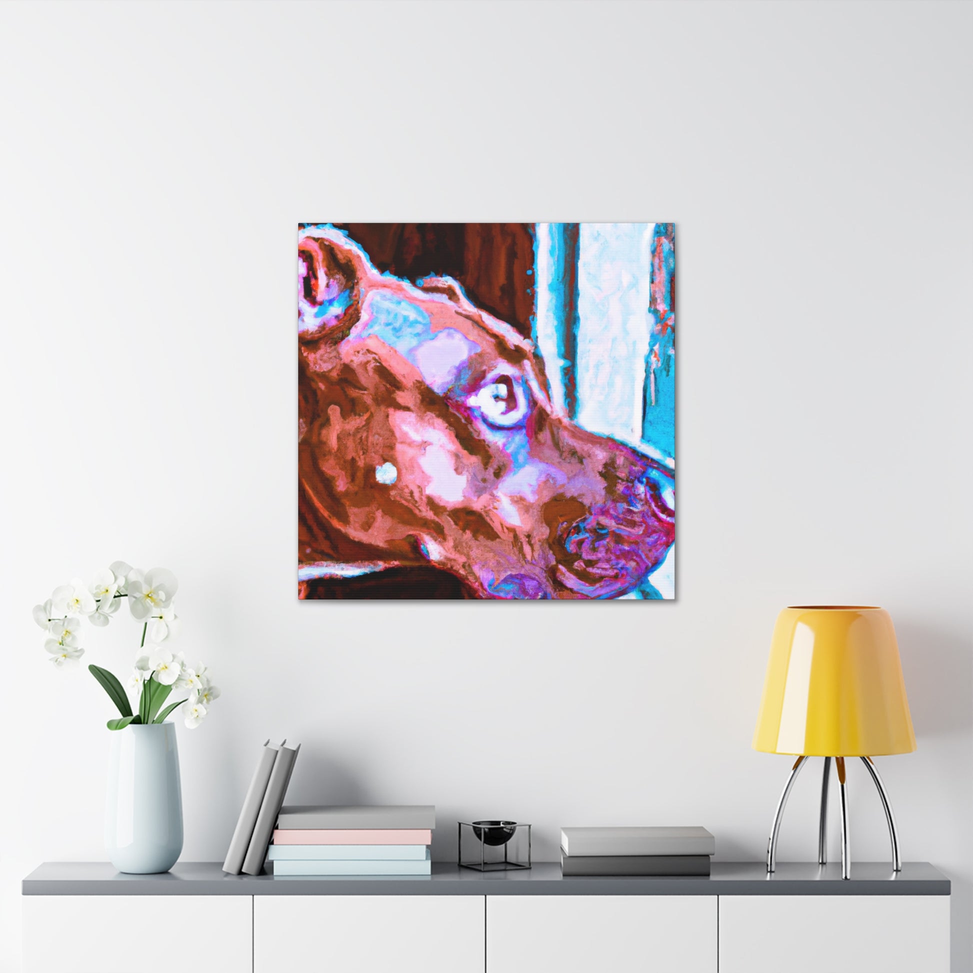 This abstract canvas shows a young brown Pitbull curiously peering out a window, full of life and innocence. The rest of the painting is composed of various swirling shapes and vivid colors, accented by glimmering hints of gold, creating an eye-catching and captivating mix of hues. This energized masterpiece is sure to bring a dynamic presence to any home or office space. #abstractart #canvas #dogart #abstractpainting #brownpitbull #lifeineyes #goldaccents #dynamicpresence #vividcolors #shapeshifting #contemporaryart