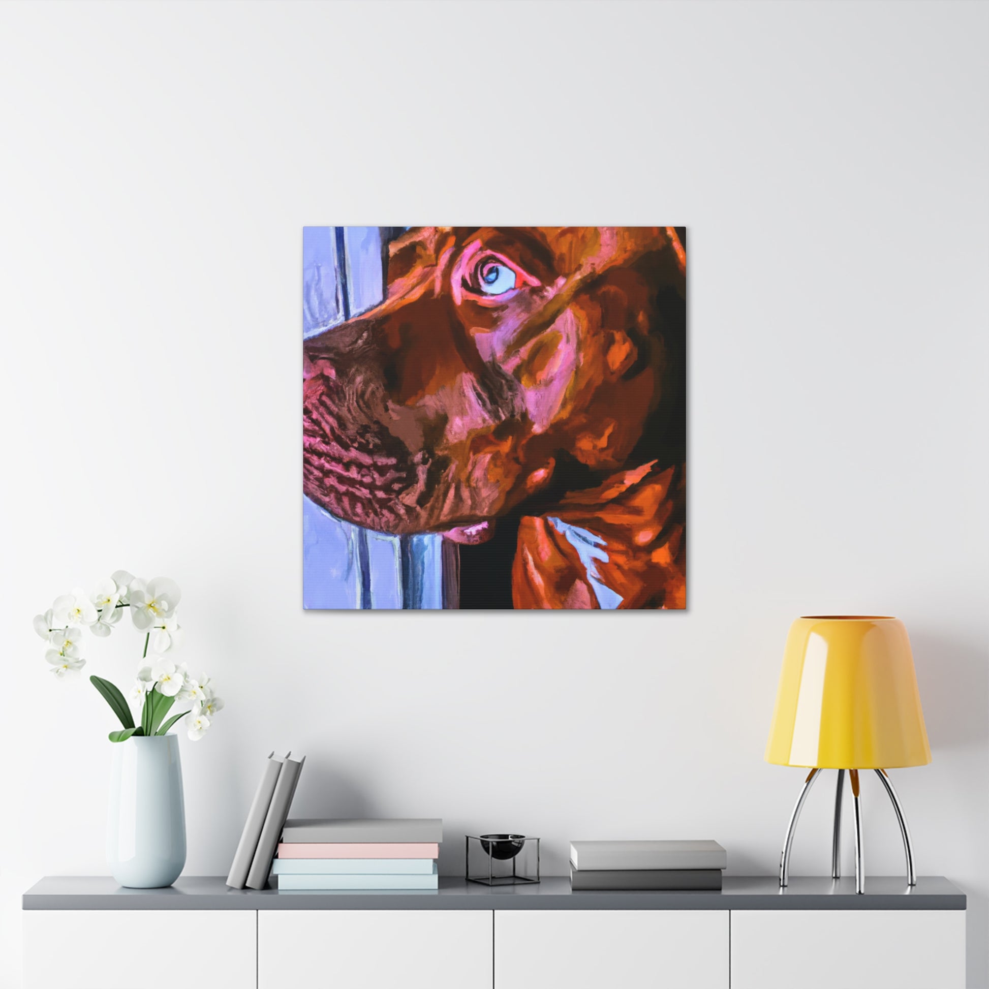 This vibrant abstract painting captures the childlike vulnerability of a young brown pit bull, his eyes full of life and hope, looking longingly out of a cosmic window. A dreamlike mix of surreal colours and shapes evokes the melancholic yet uplifting emotion of this moment. Our unique palette adds drama and texture to the canvas, while still evoking beauty. #painting #art # wallart #abstract #pitbull #dog #canvas #vibrant #surreal #hopeful #homedecor #life