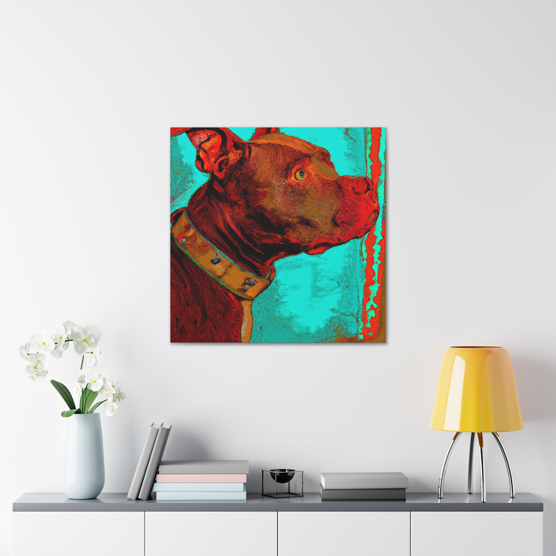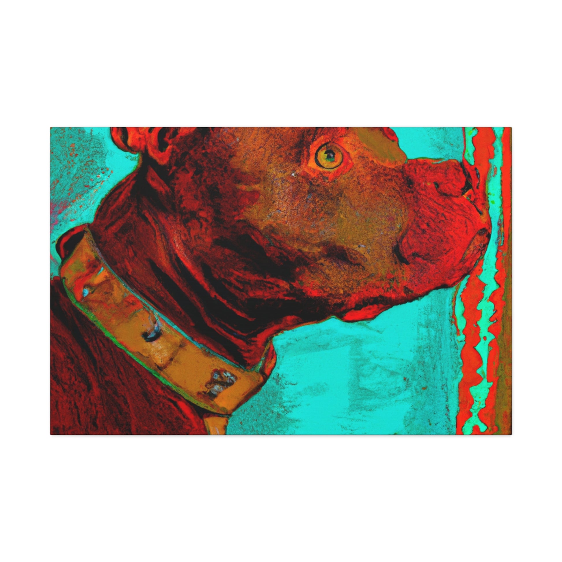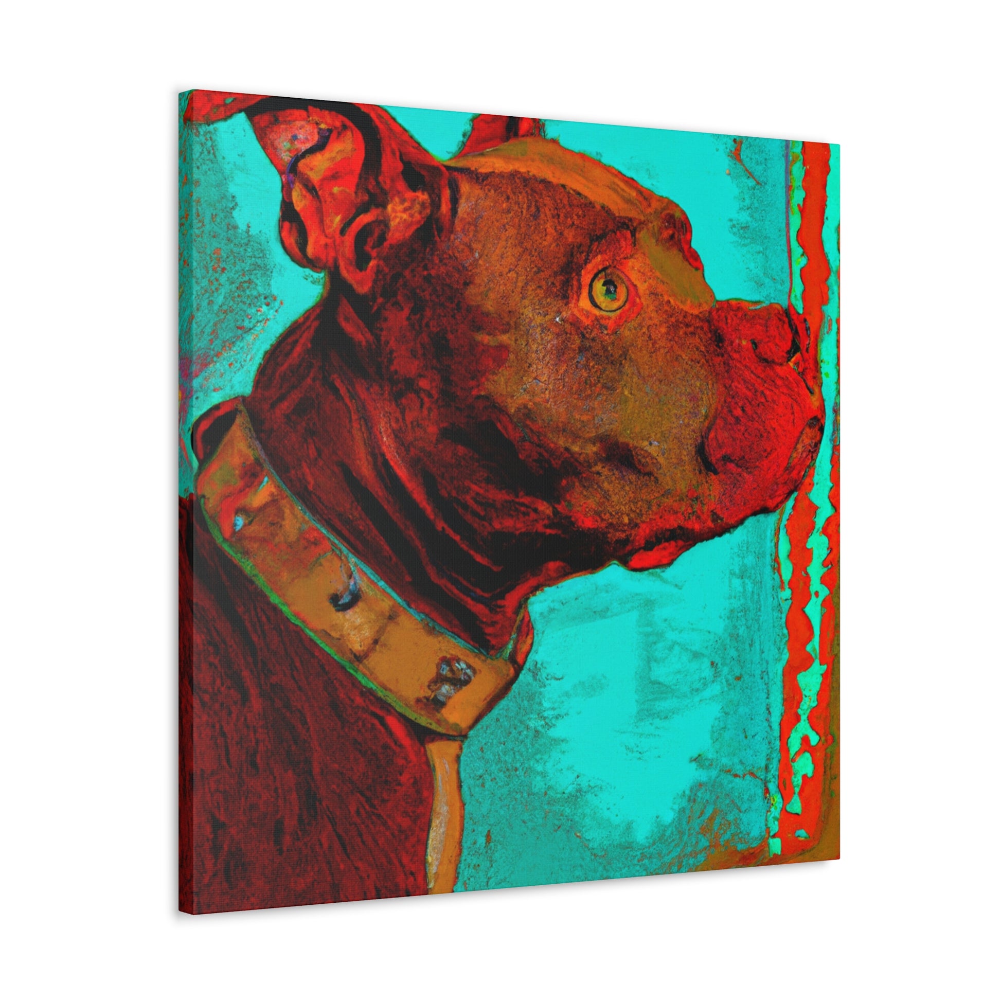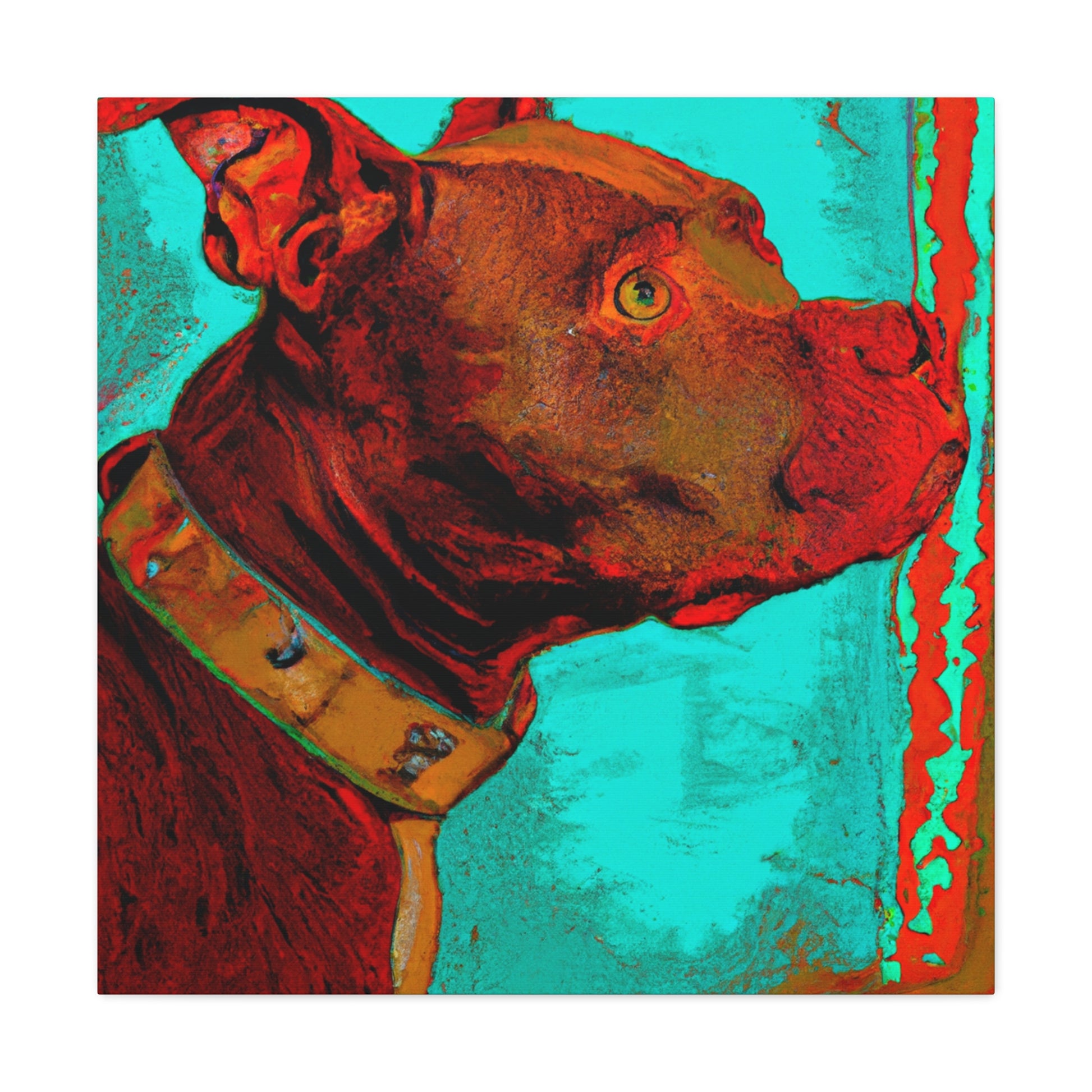 This captivating abstract painting of a young brown pit bull looking out the window will draw your attention and warm your heart. Colorful and dynamic, this canvas brings its subject to life with energy. While the pit bull remains realistically clear, the rest of the canvas is made of intricate, trippy shapes and colors. An atmosphere of peace and longing emanates from this beautiful canvas. #pitbull #canvasart #abstractart #abstractpainting #youngdog #artisticexpression #homedecor #Analyticalexpressionism #Colorfulpainting #Picturesqueart #dogart