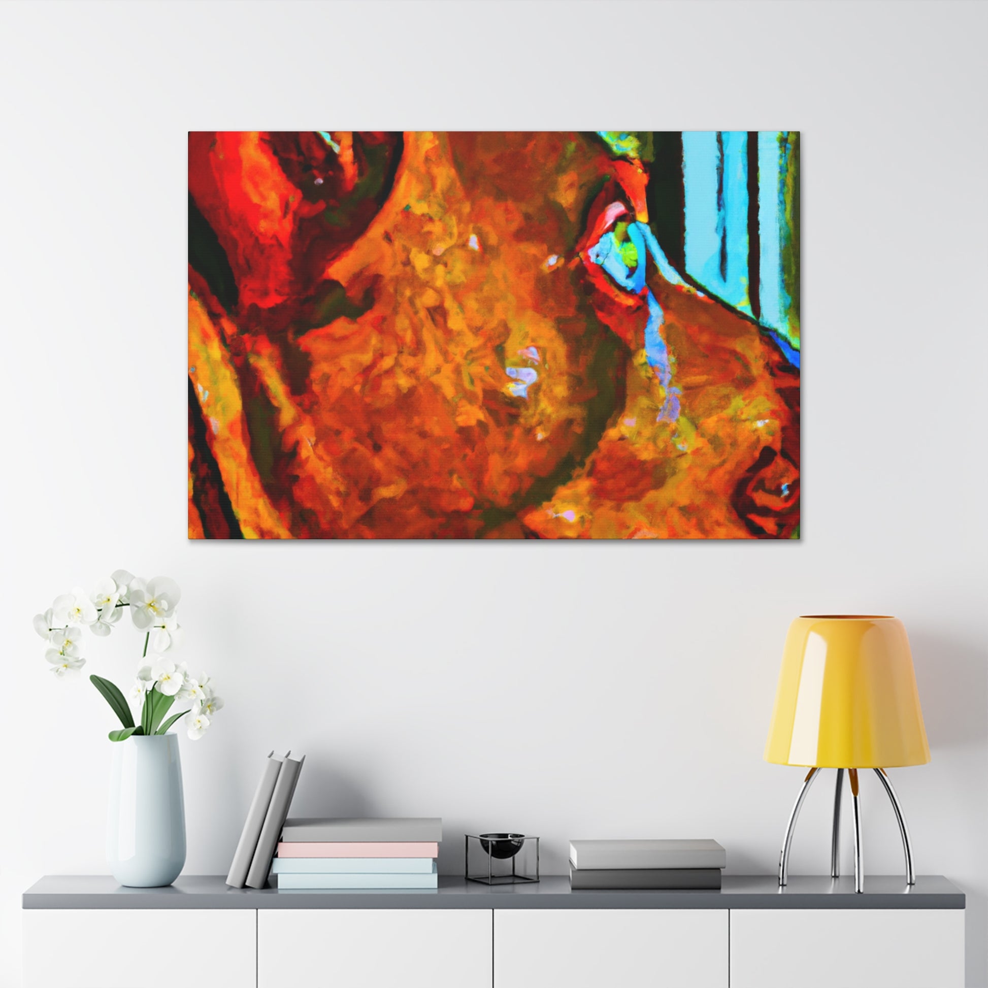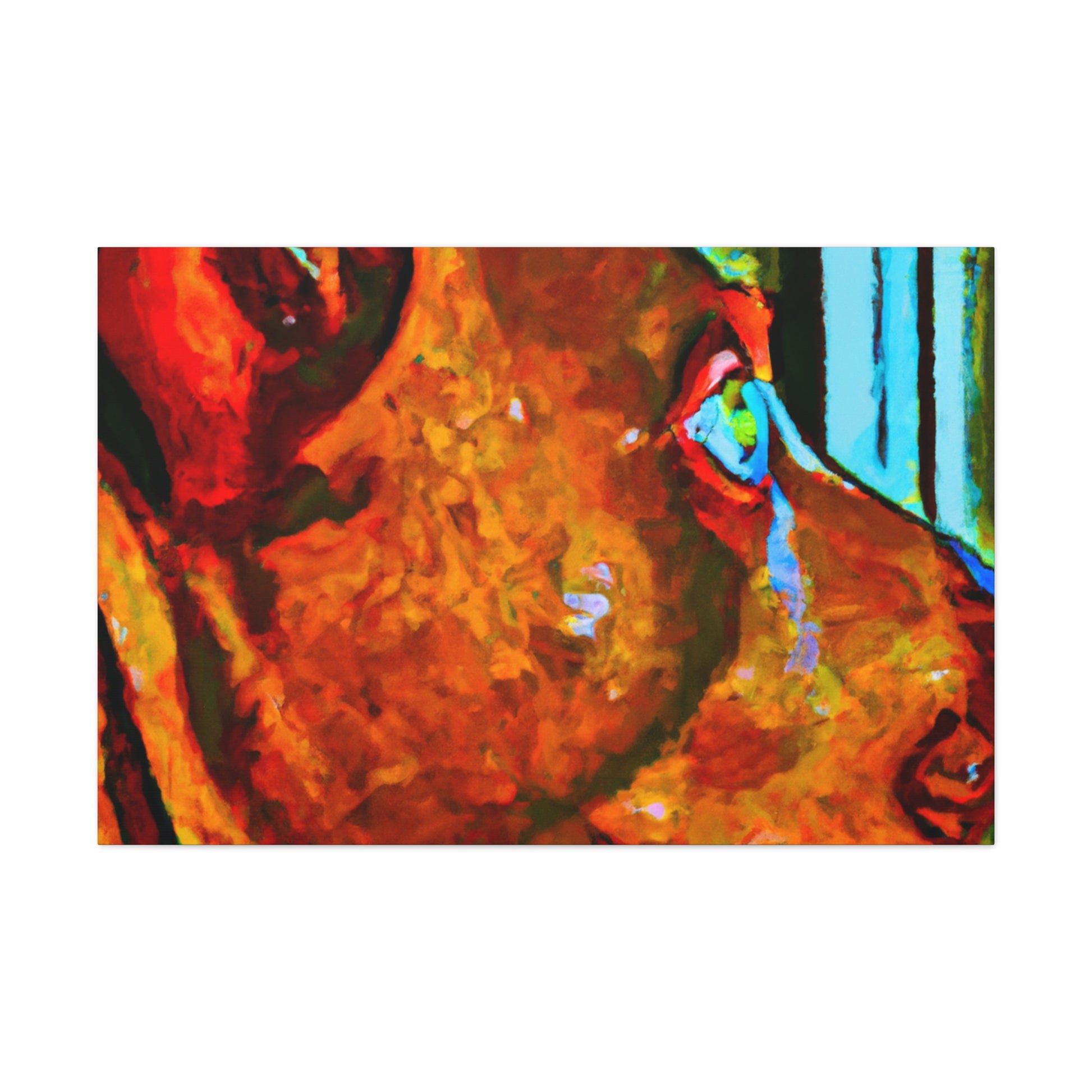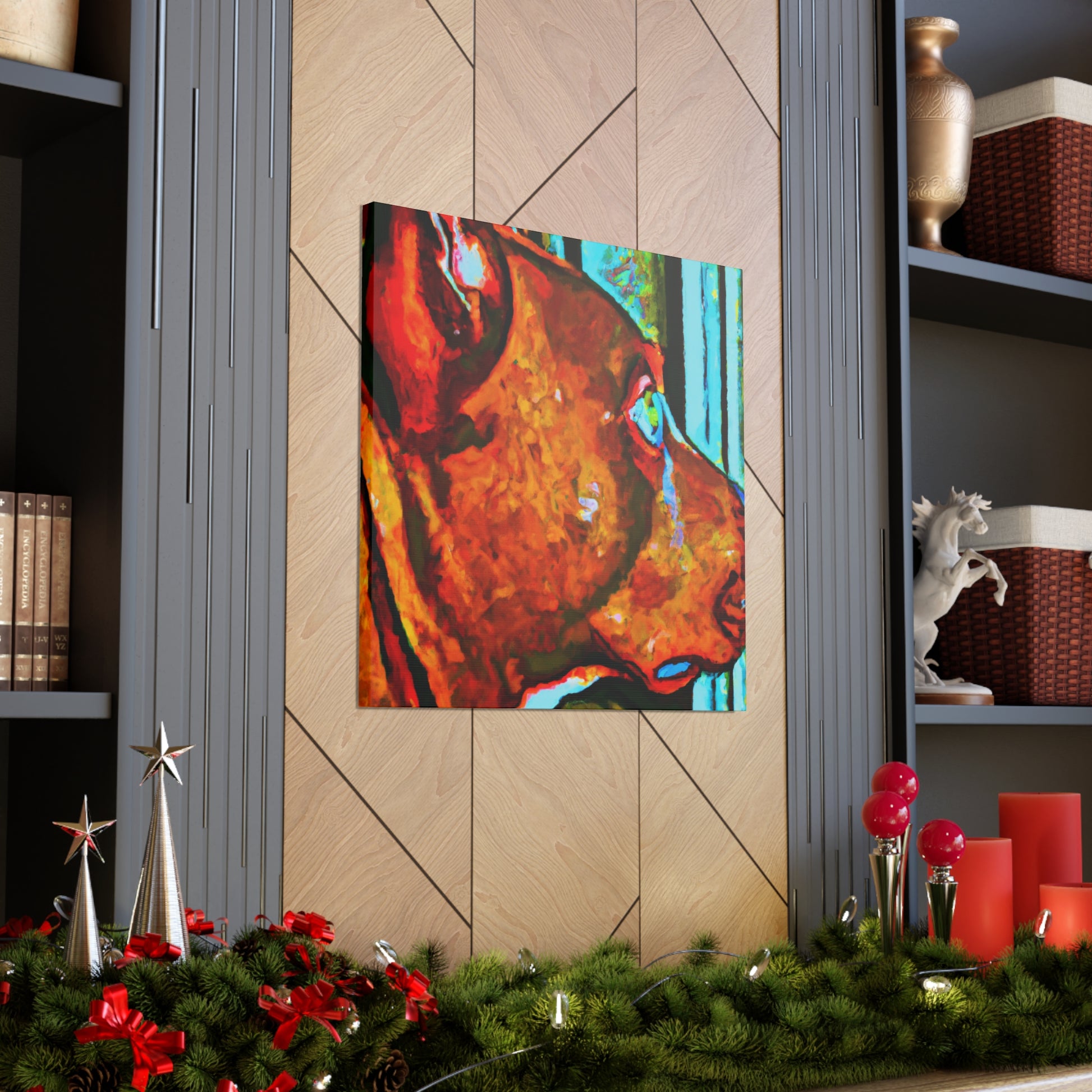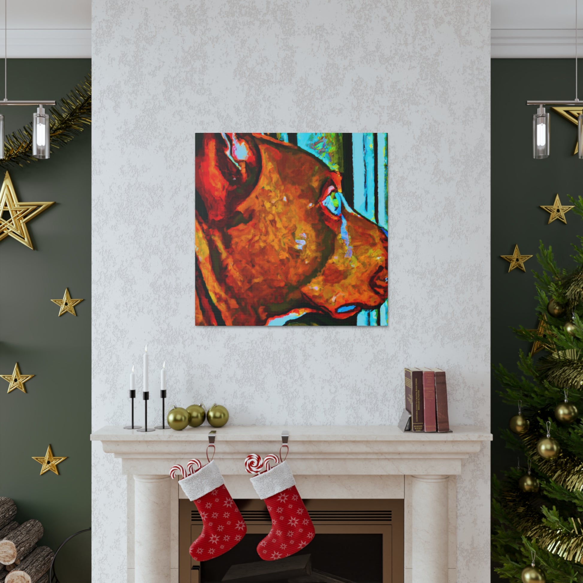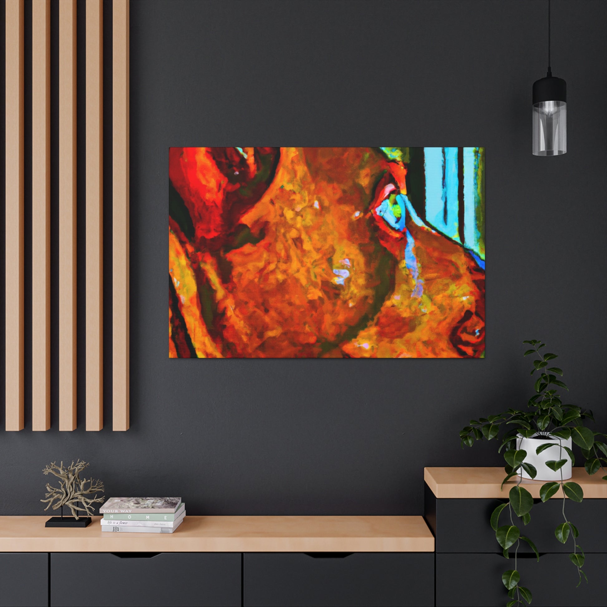 This canvas will surely bring some life to any room! This abstract painting depicts a young brown pit bull looking longingly out the window. The canvas features an array of psychedelic colors along with vibrant, playful details that will make the canine stand out. The look in his eyes paints a picture of optimism and energy that is sure to make anyone feel happy and inspired. #dogsofinstagram #pitbull #canvas #abstractart #artwork #interiorstyle #vibrant #psychedelic #optimism #youngdog #animalillustration #homedecor