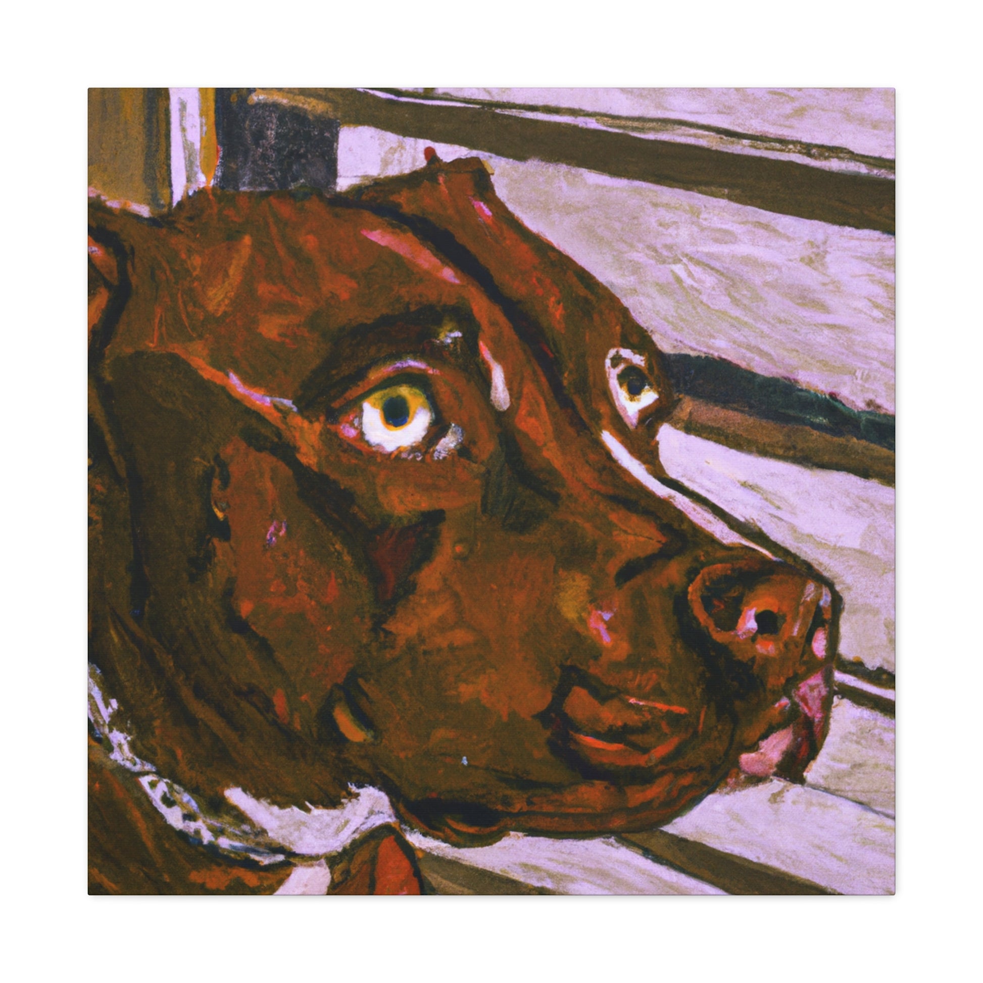 This canvas painting showcases the beautiful innocence of nature and the soul of a young pit bull gazing out the window. His warm brown eyes express an undeniable longing, a depth that appeals to the heart. Flowing around him is an abstract dreamscape of vibrant colors and shapes that create an atmosphere of dynamic movement and harmony. This painting is ideal for all types of interiors, adding a classy, yet trippy vibe. #pitbull #abstractpainting #animalart #modernart #abstractart #animalportrait #canvaspainting #homedecor #animalpainting #styleyourspace #interiorinspo