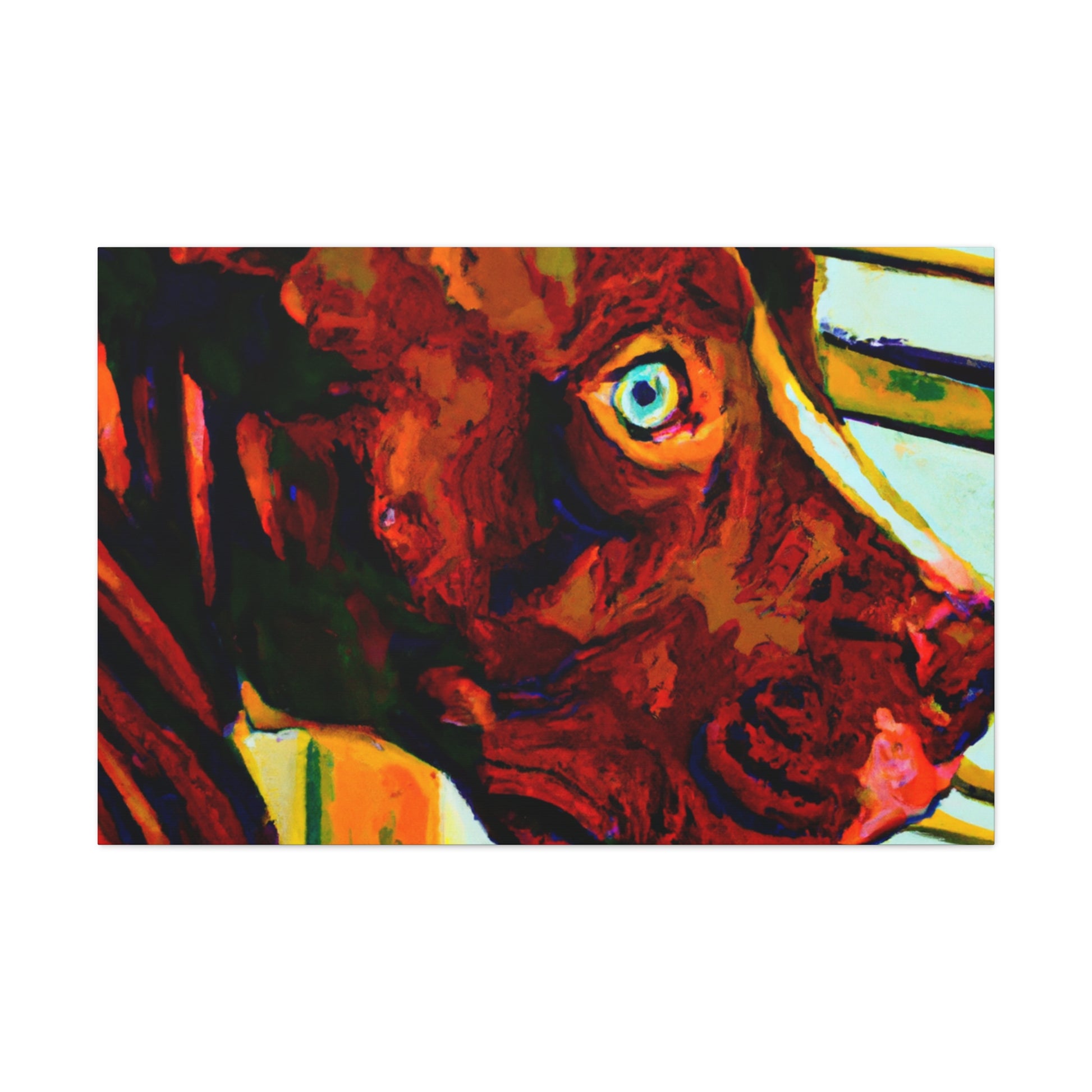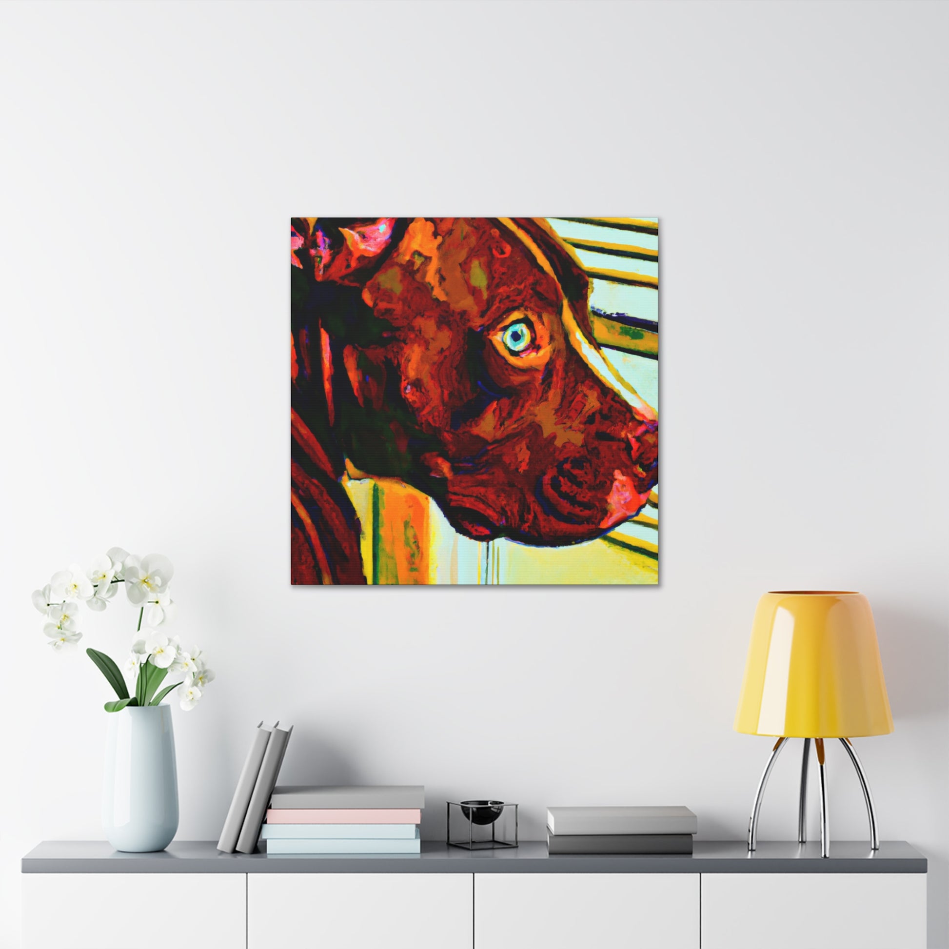 This timeless piece of art is guaranteed to be the highlight of any room with its beautiful abstract style. A young brown pit bull looks longingly out the window with lots of life in his eyes, while the colorful backdrop of a trippy landscape ensures that this canvas will bring life to your home. The crisp details and vibrant colors bring life to the artwork and bring a unique twist to the classic style of a pet portrait. #dogart #petart #abstractart #trippyart #dogpainting #petpainting #abstractpainting #trippypainting #canvasart #canvaspainting