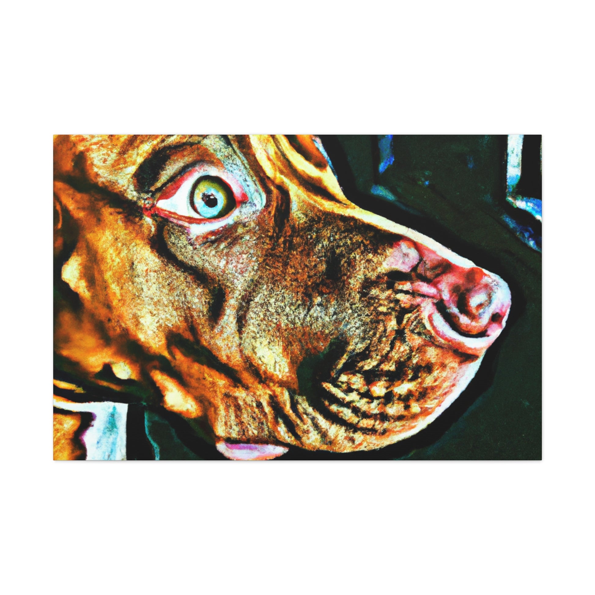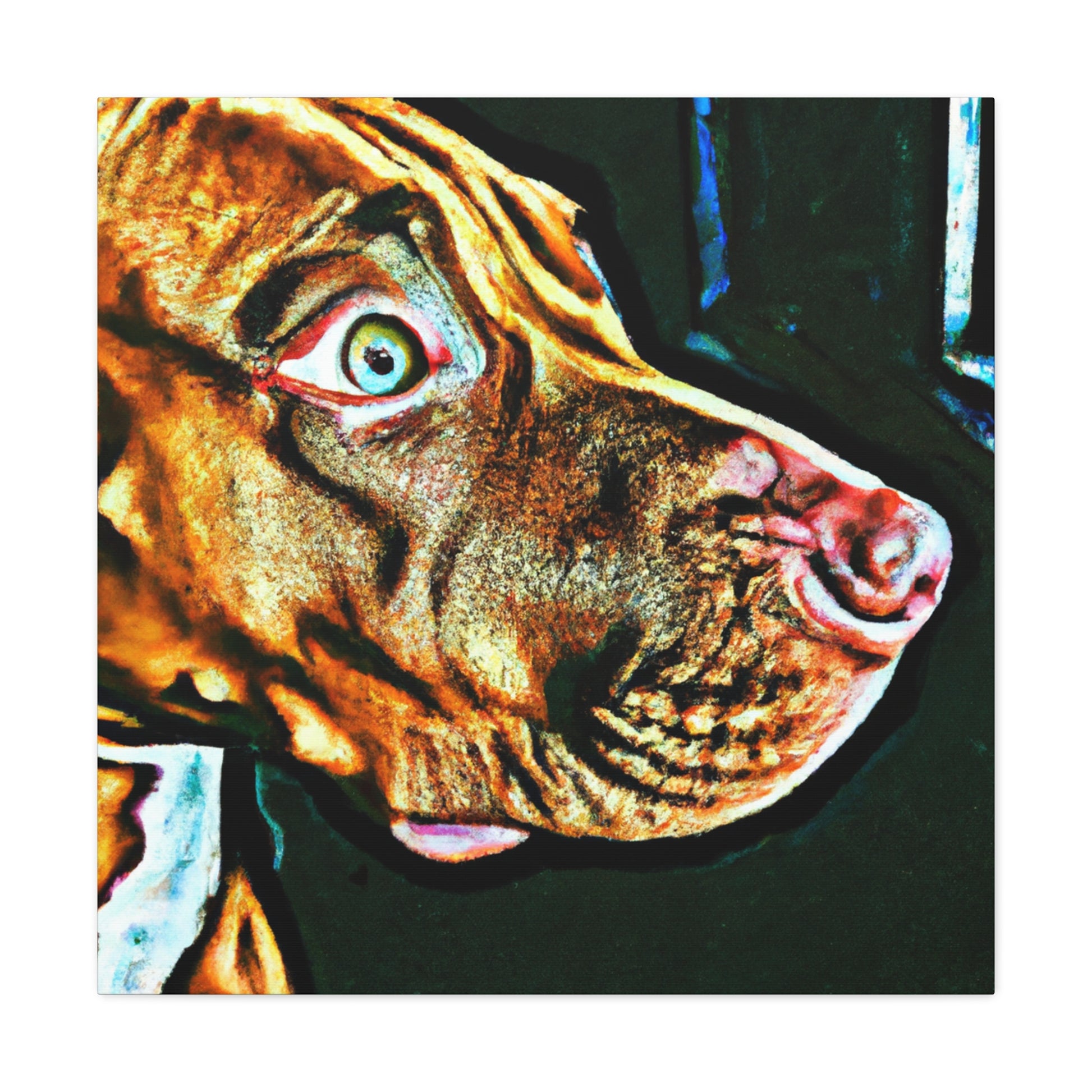 You’ll be mesmerized by this captivating piece by [Artist Name]. A brown pit bull peers out a window with luminous life in his eyes - the perfect balance to the surreal, abstracted world behind him. Vibrant and modern, this painting will bring character and a sense of story to your home. #abstractart #canvas #modernart #art #pitbull #dogart #walldecor #painting #artforsale #windowview #surrealism #contemporaryart