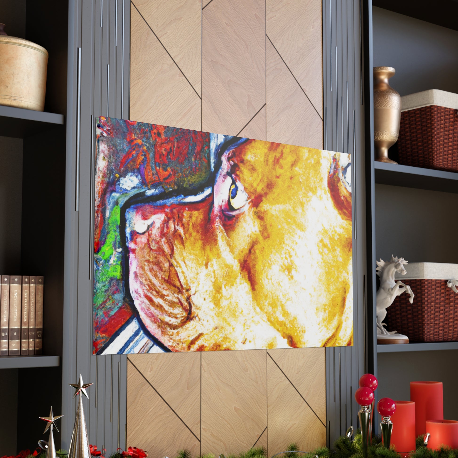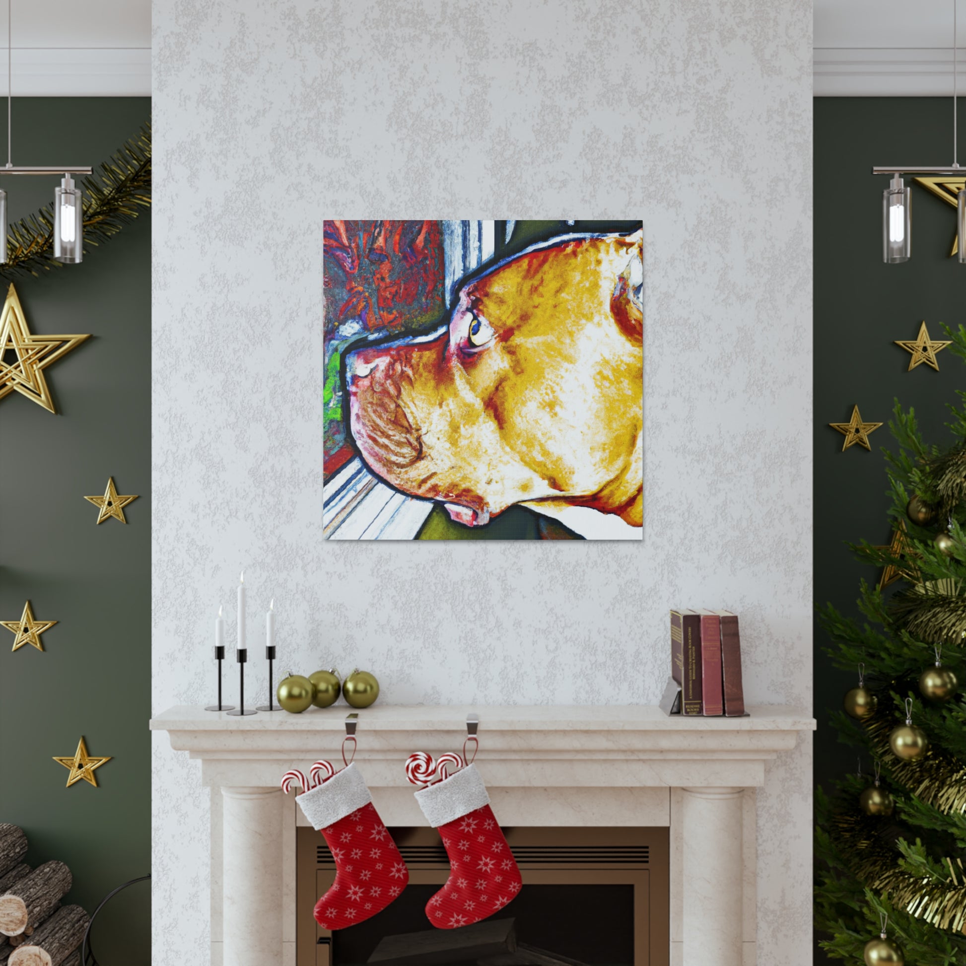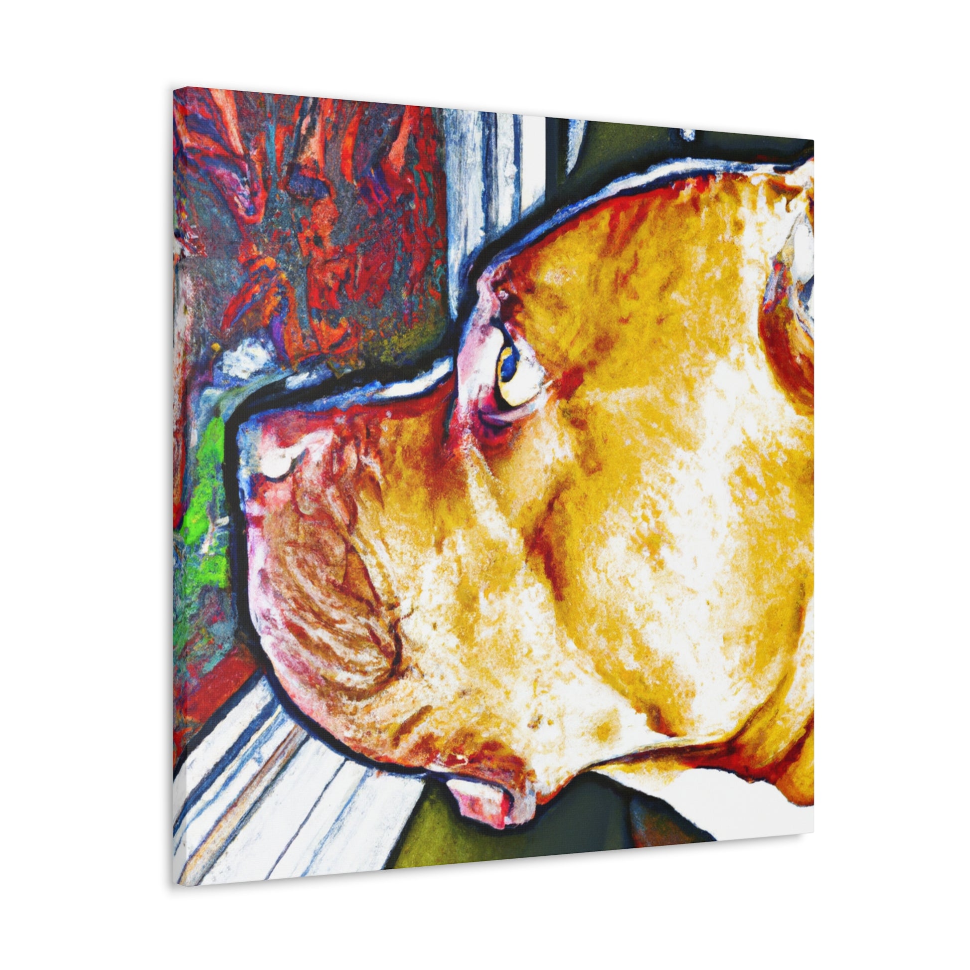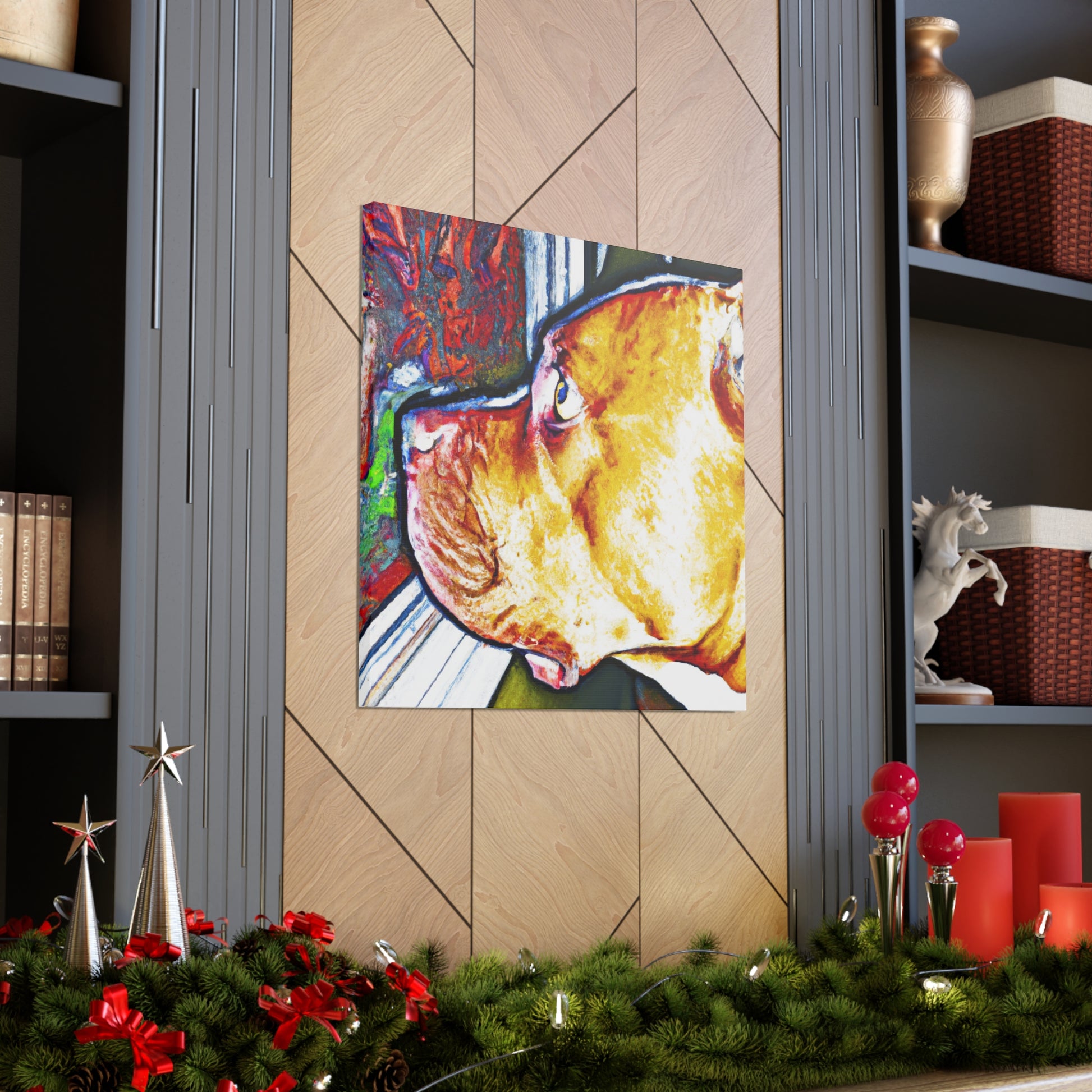 This vivid canvas displays the nostalgic gaze of a young pit bull, surrounded by a vibrant and captivating landscape. His life-filled eyes peer out over a world of vibrant color and psychedelic visuals. This painting is sure to add a unique piece of art to your home and a modern energy that will surely add an element of style and beauty to any room. #abstractart #canvasart #vibrantcolors #psychedelic #doglovers #modernstyle #youngdog #uniqueart #classyhome #pitbulls #stylebeauty