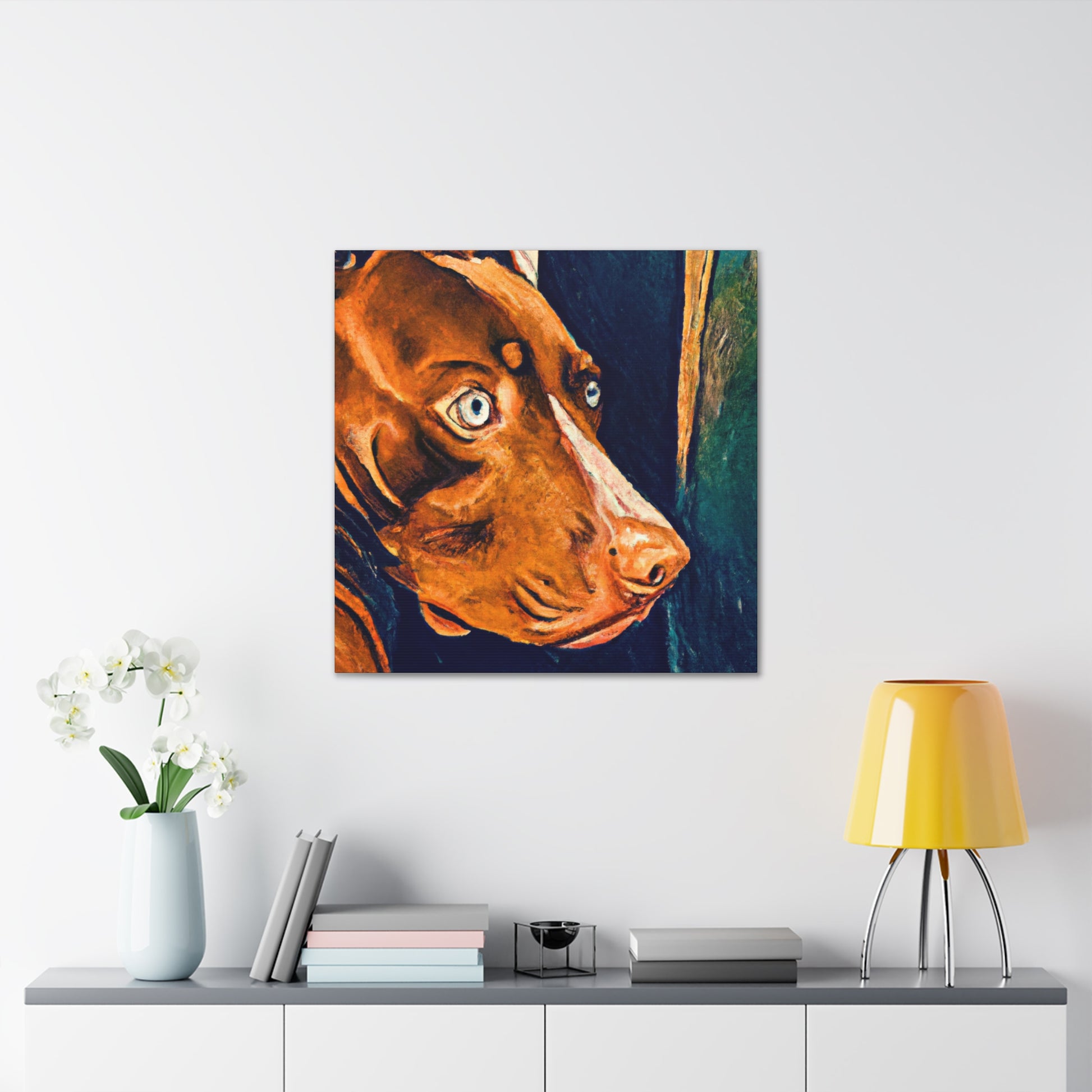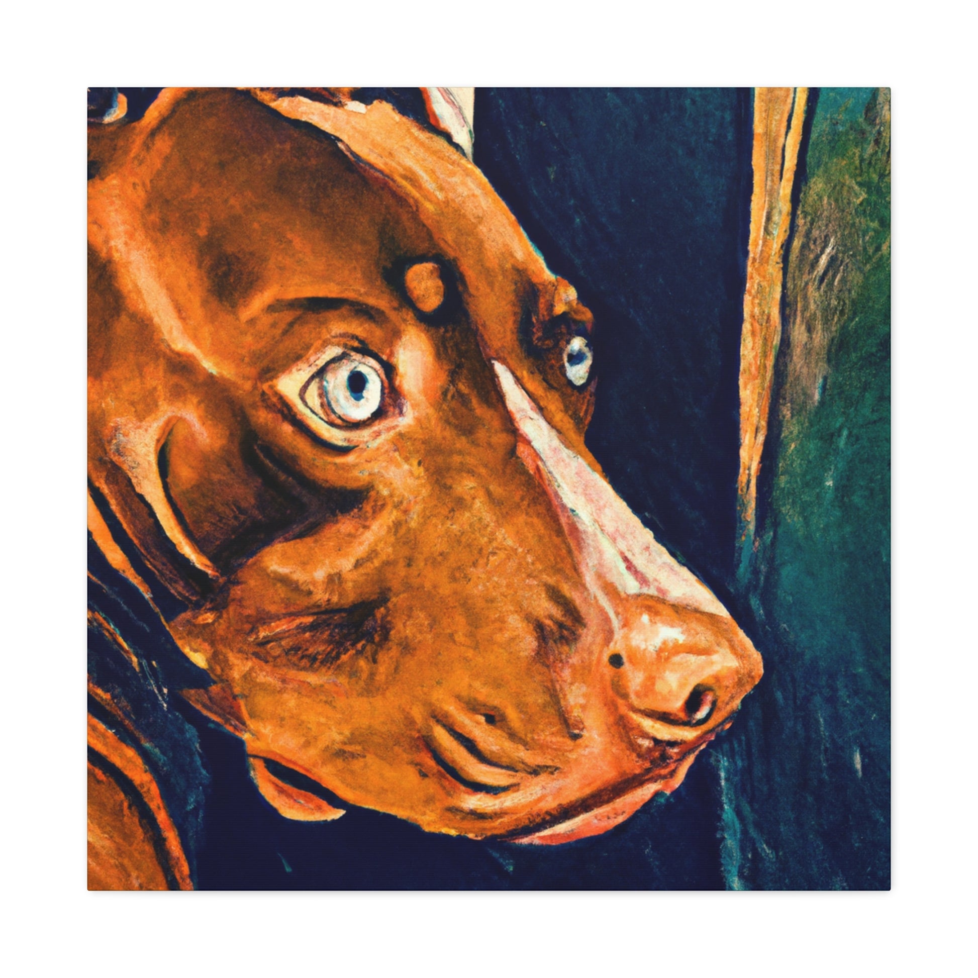 This abstract painting Captures an ethereal moment of longing and possibility. A young brown pitbull stands tall, looking out of the window with life in his eyes. Colors and shapes swirl around him, fading and varying in intensity. This painting will add an element of uniqueness to your wall and create a conversation piece for your home. #art #abstractpainting #mysterious #dogart #pitbull #brownpitbull #soulfulgaze #etherealmoment #browndog #trippyart #modern-abstract #painting