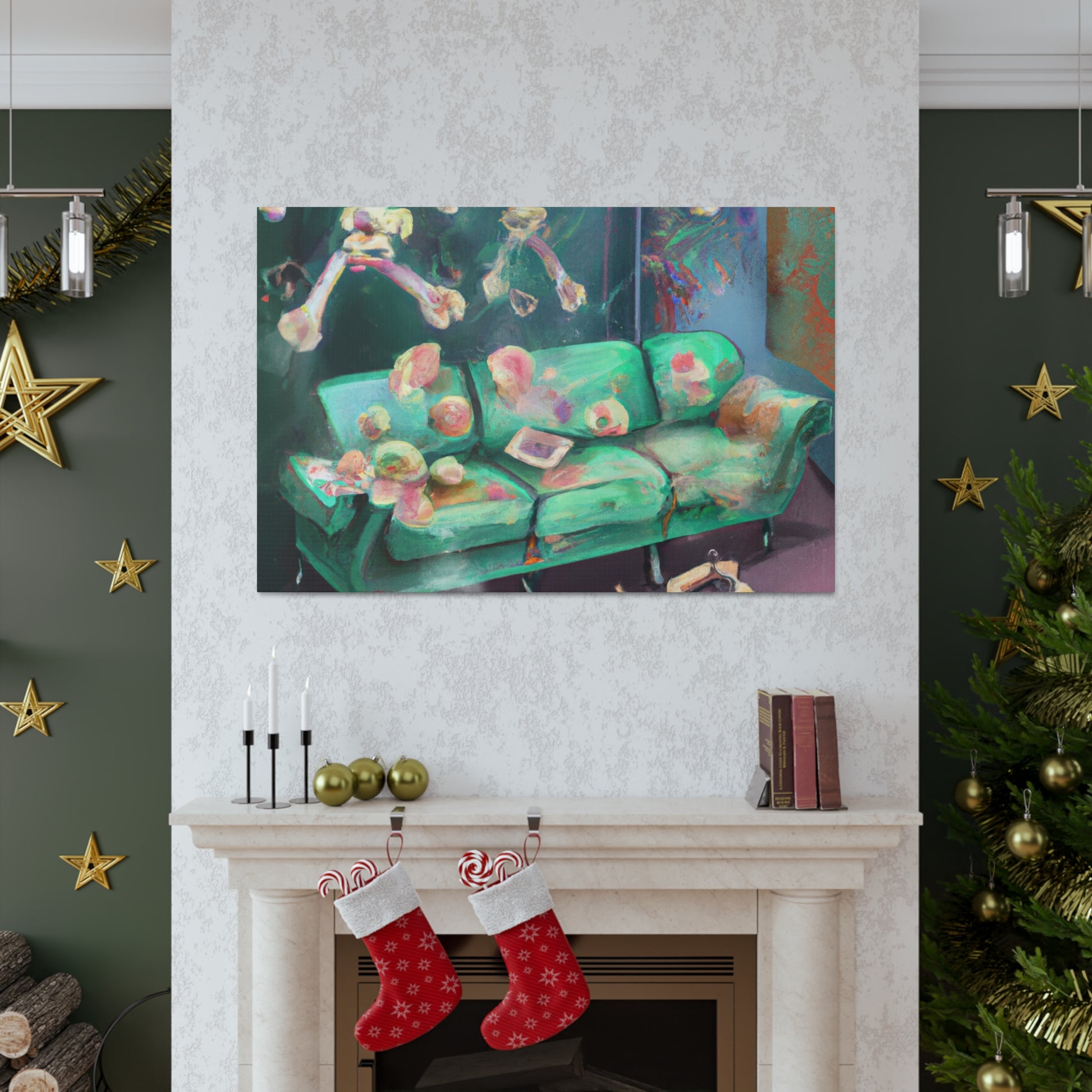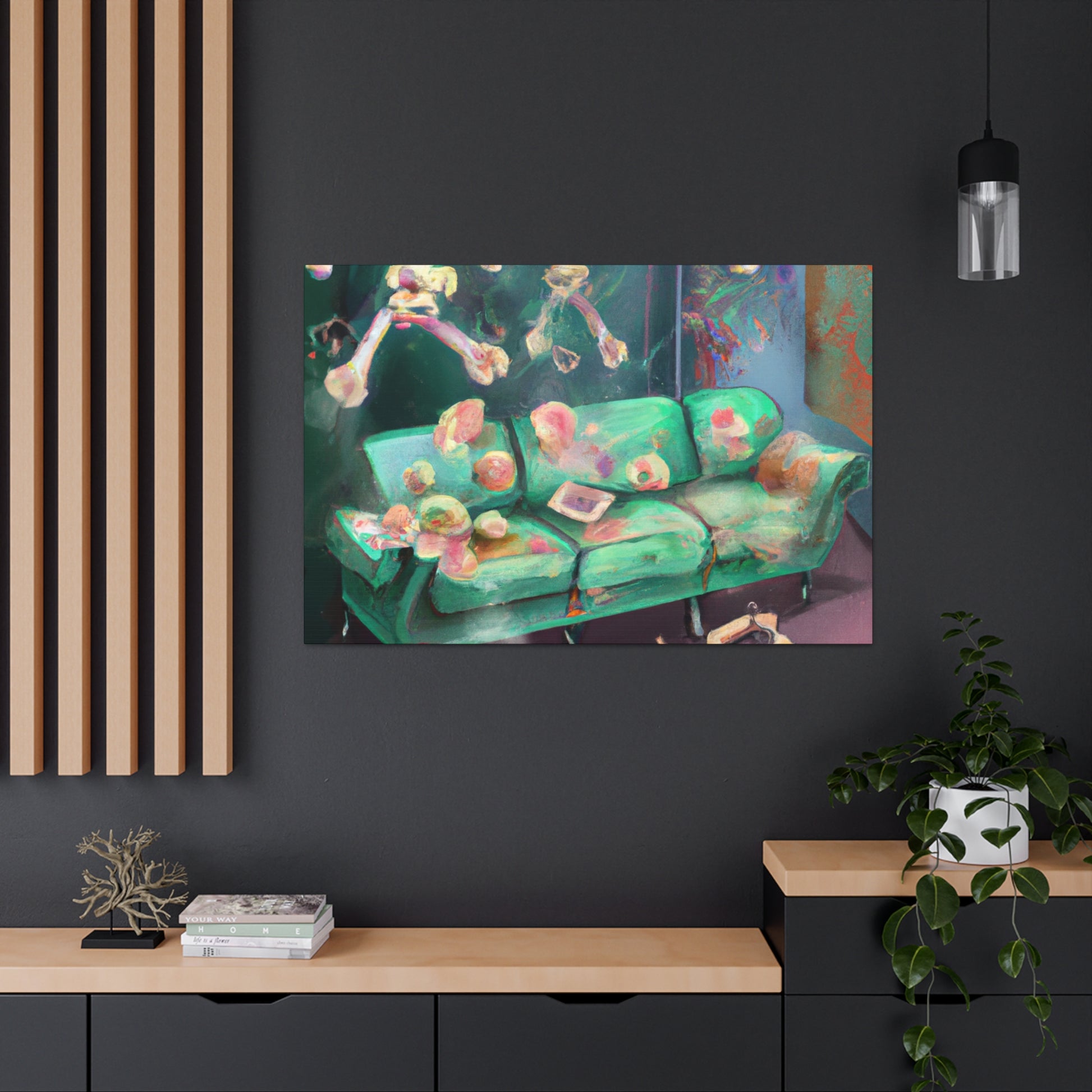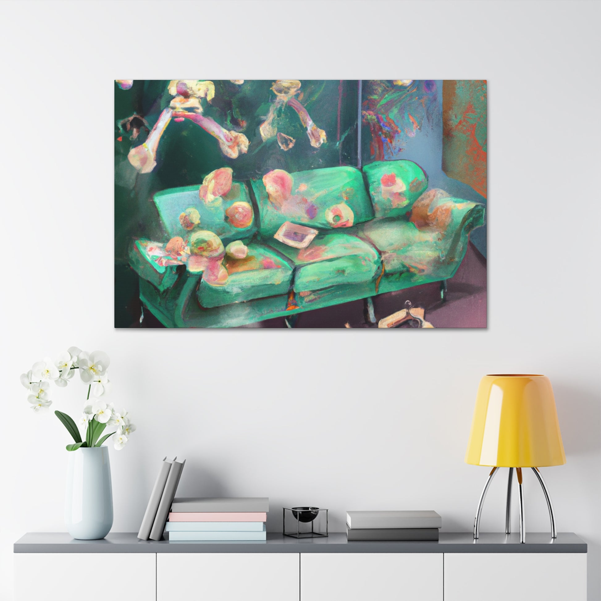 This original canvas of digitally produced art is perfect for bringing eye popping flair to the living room. This inspired composition in vivid complementary colors will be sure to make a bold impression and bring life to walls. The abstract design and rhythmic flow will keep your gaze moving around the canvas and awaken the imagination. Spruce up your living space with this exciting and euphoric piece of wall art. #abstractart #interiordecor #livingroomart #digitalart #canvasart #trippypainting #roomdecoration #wallhanging #walldecor #homedecor #homedesign