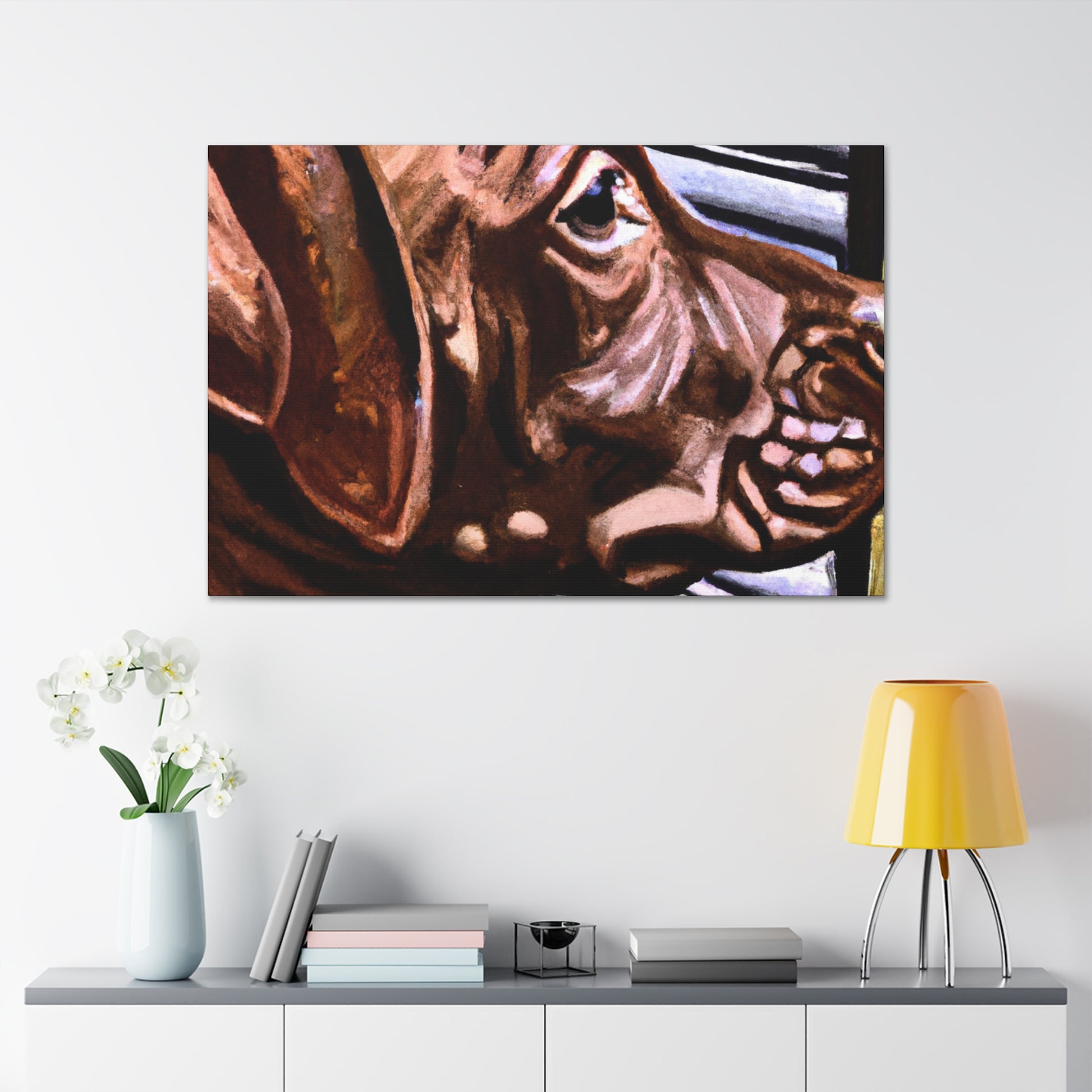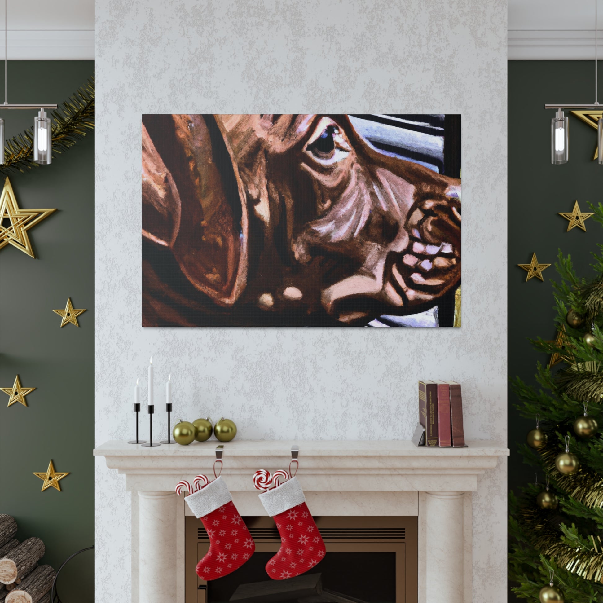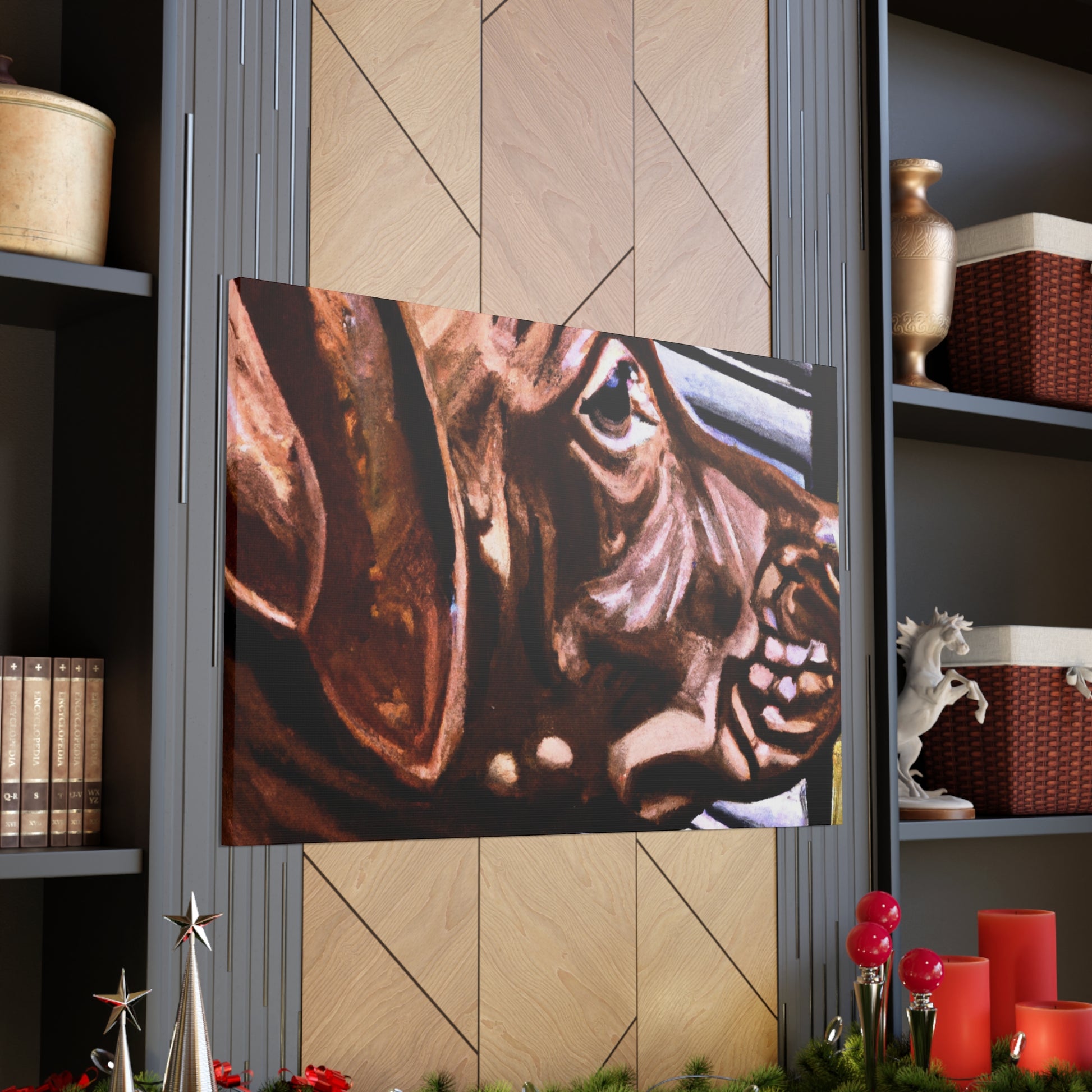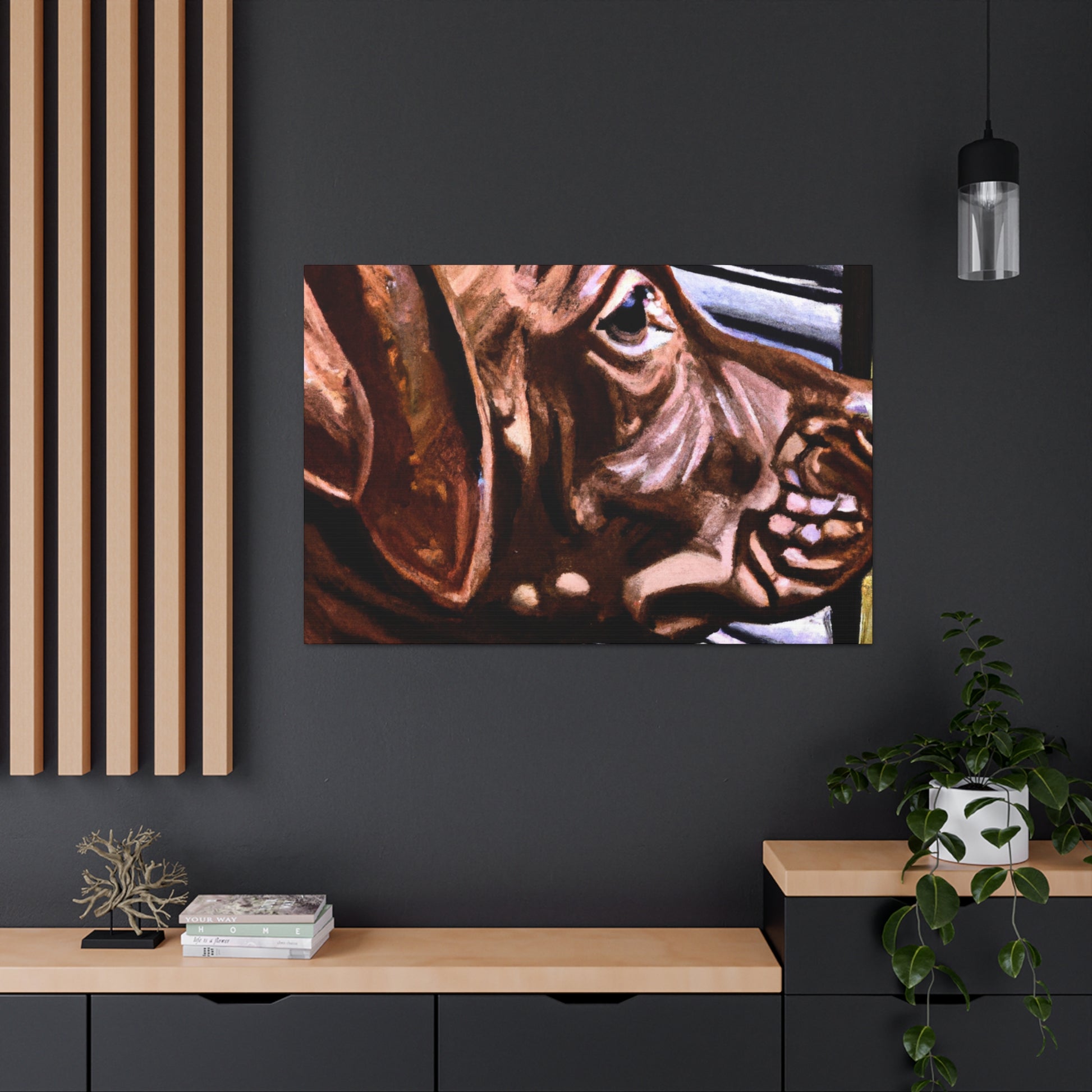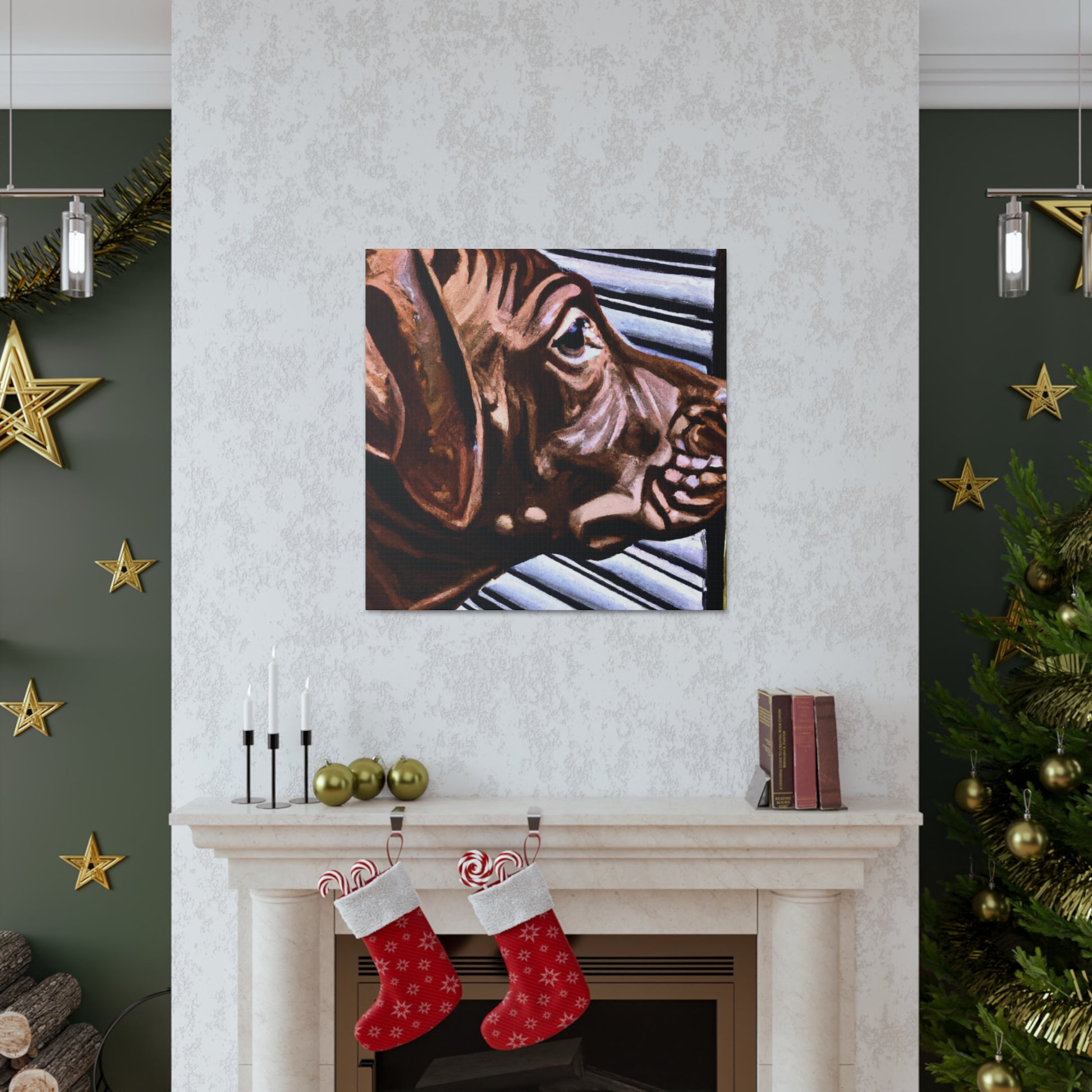 This canvas showcases a young brown pit bull with vivid life in his eyes, looking out the window so longingly. All the other elements around the dog are abstract, adding to the mystique of the image. It's a mesmerizing yet classical piece perfect for any home. #dogart #pibbles #canvas #visualart #abstractart #abstructpainting #pitbulls #mysticart #renaissanceart #browndog #youngdog