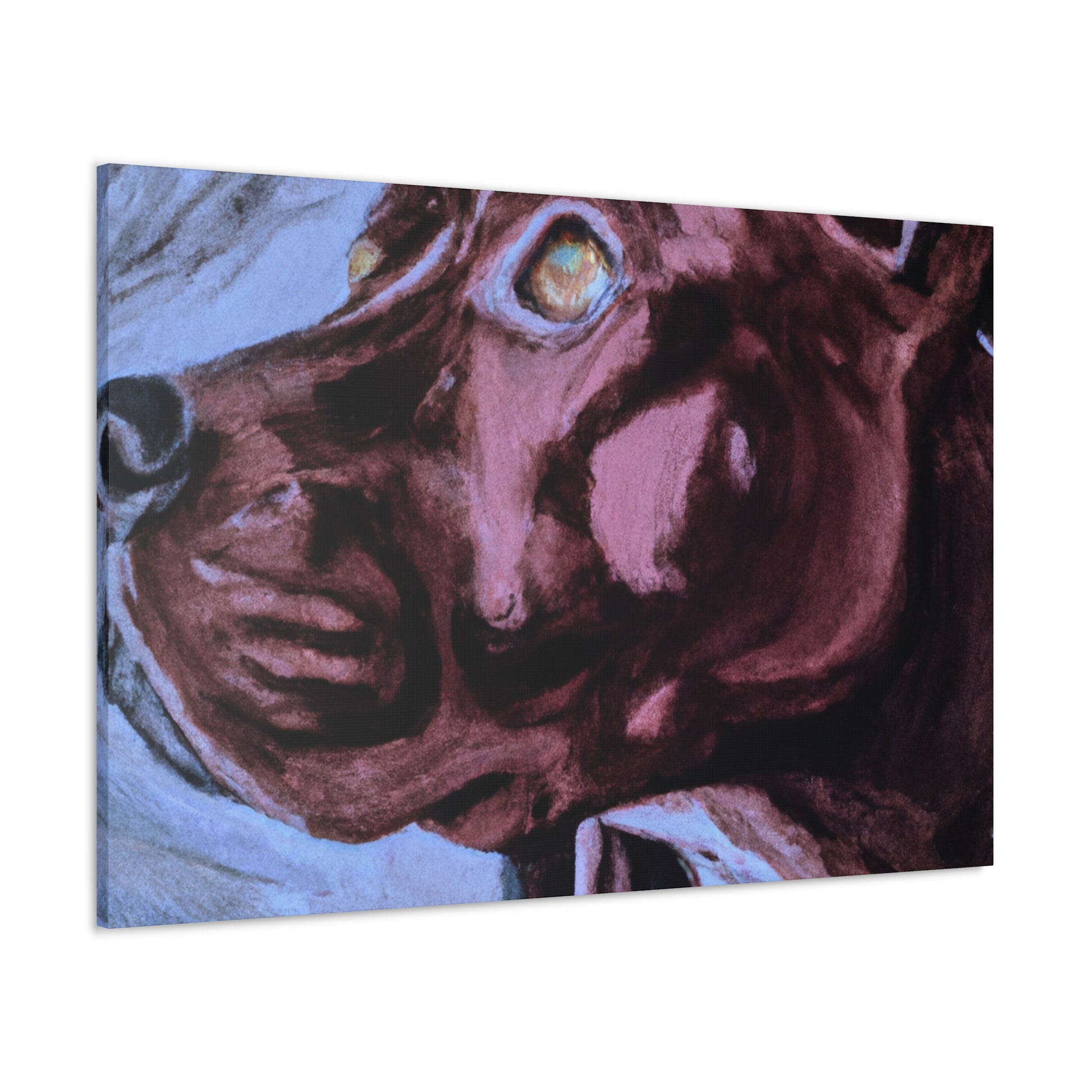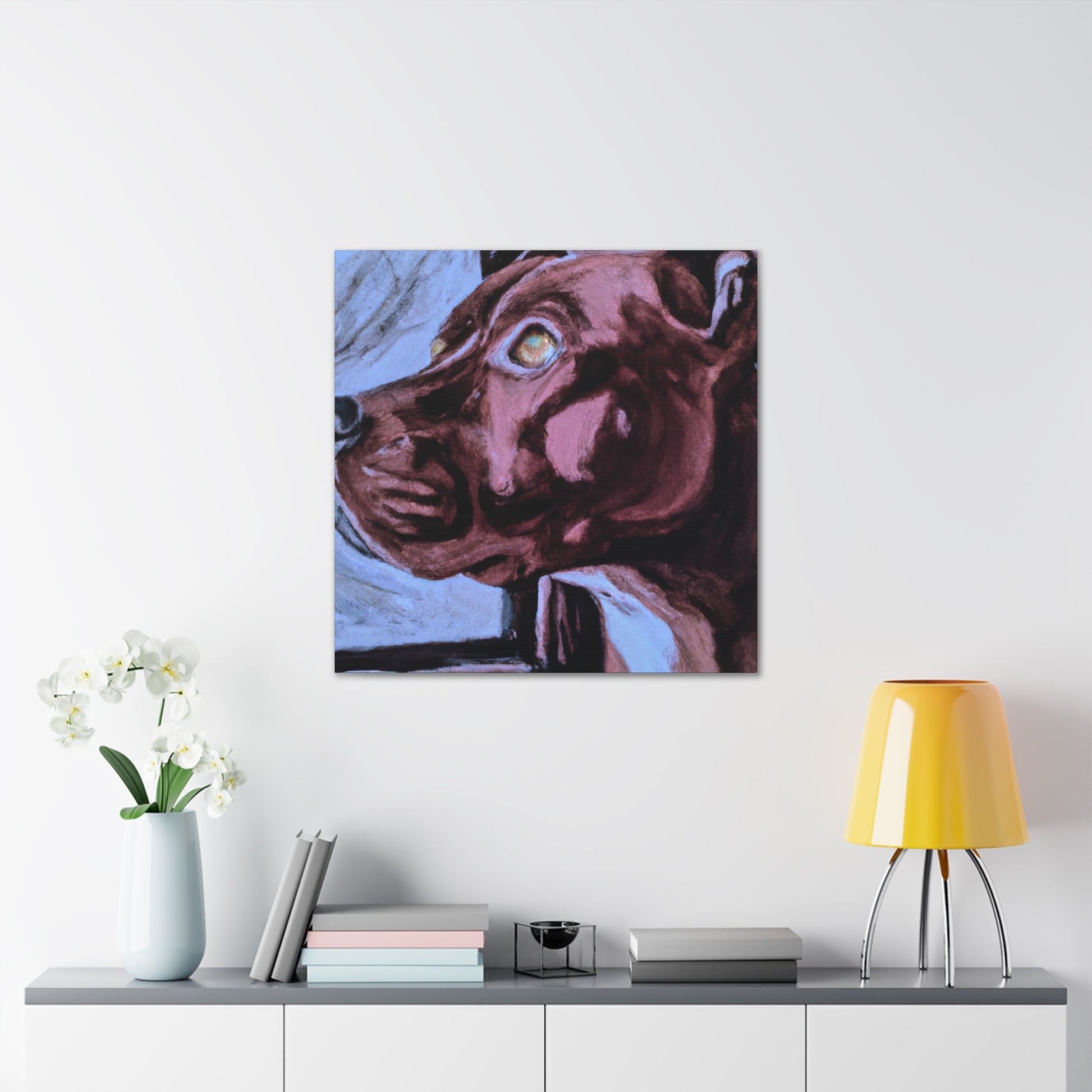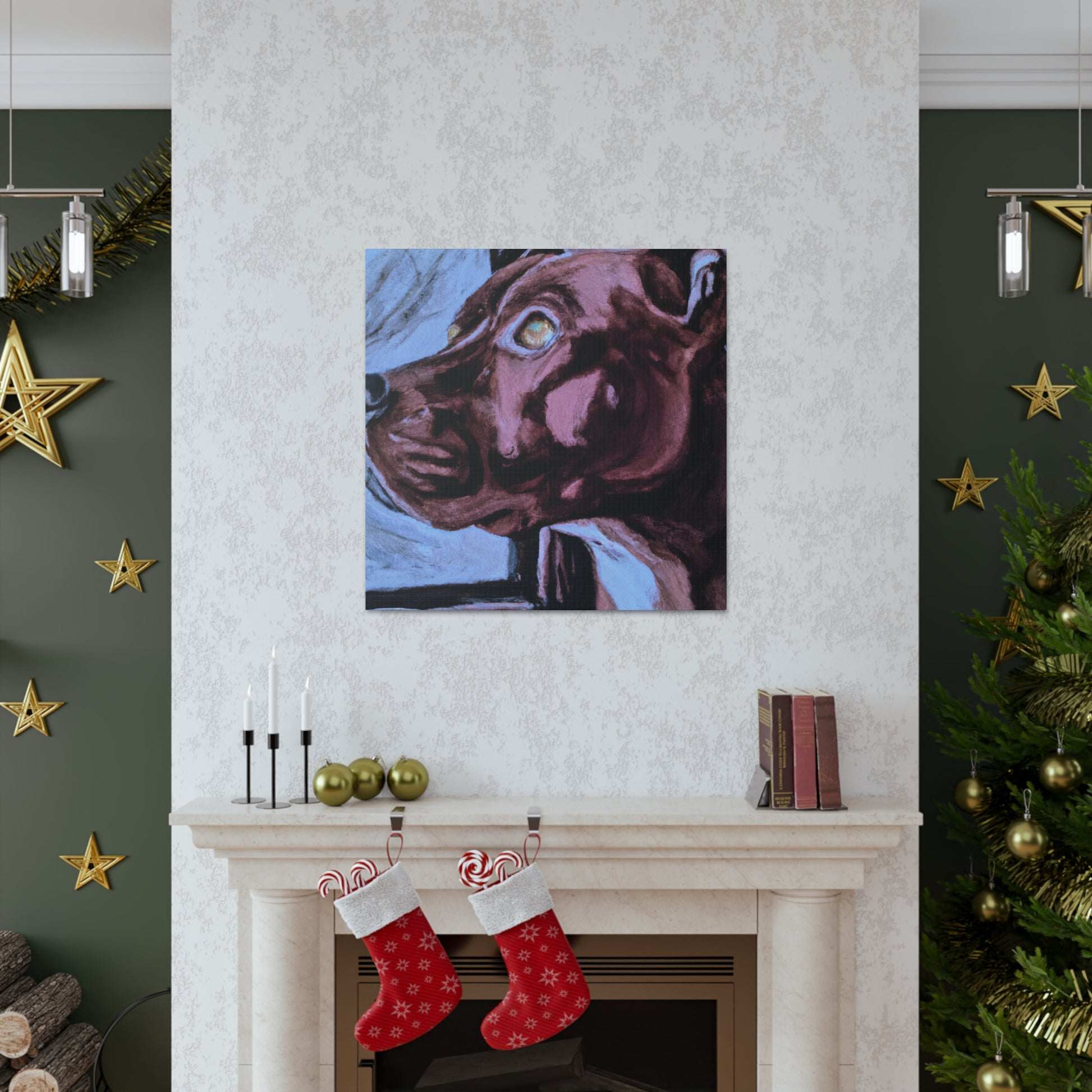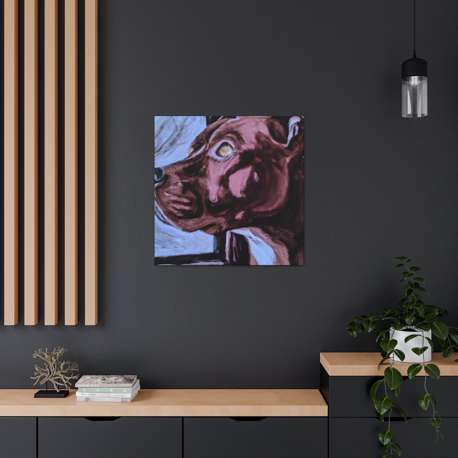 This classic abstract painting paints a story with its vibrant colors. Right in focus is a young brown pit bull looking longingly out the window, his life-filled eyes piercing the hazy background. The abstract shapes and swirls of bright colors encapsulate the energy of the pup, and provide the perfect contrast to the sole focus of the piece. #abstract #painting #canvas #art #dog #pitbull #brown #window #energy #vibrant #classy #hazy