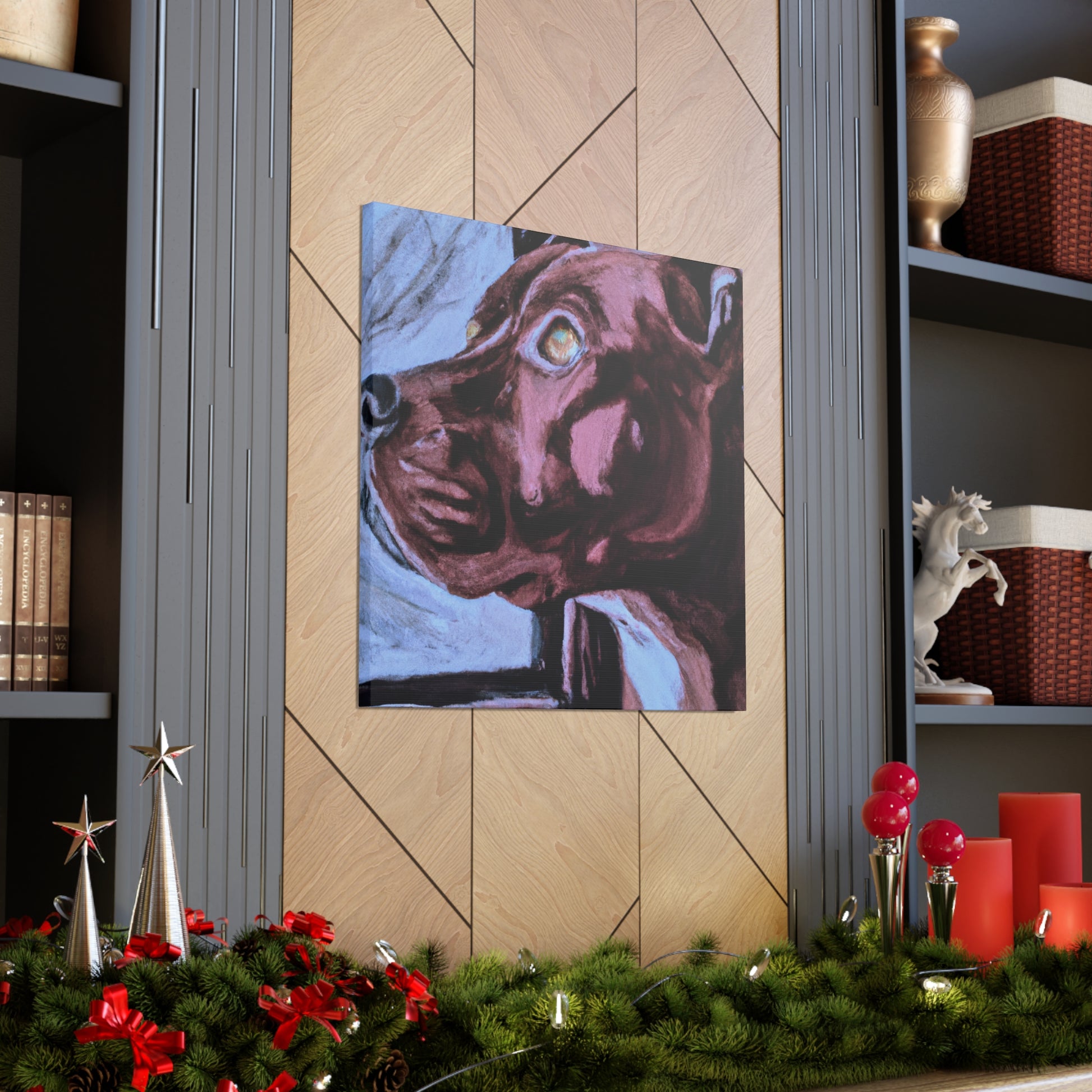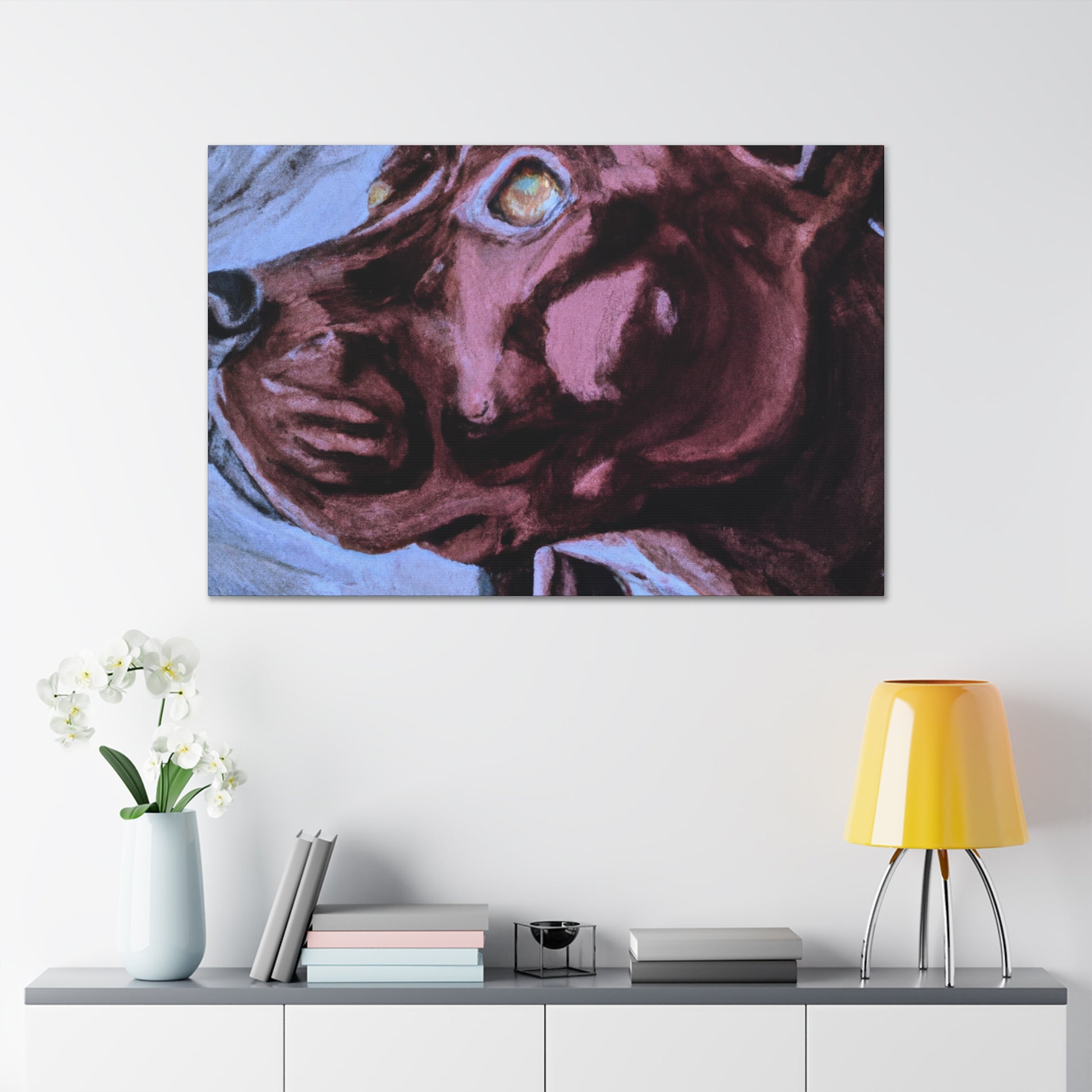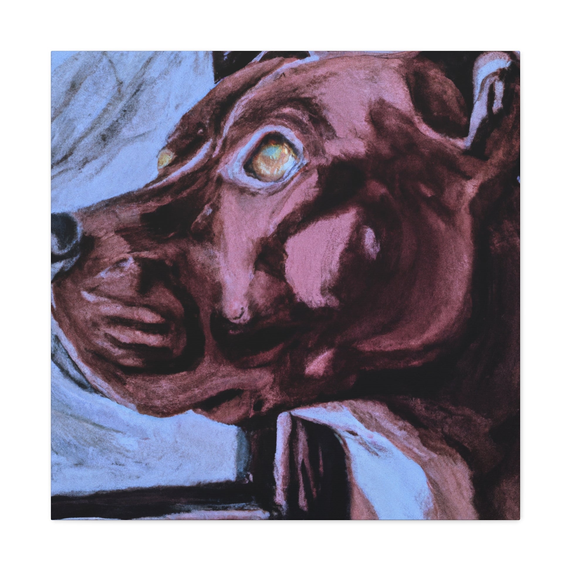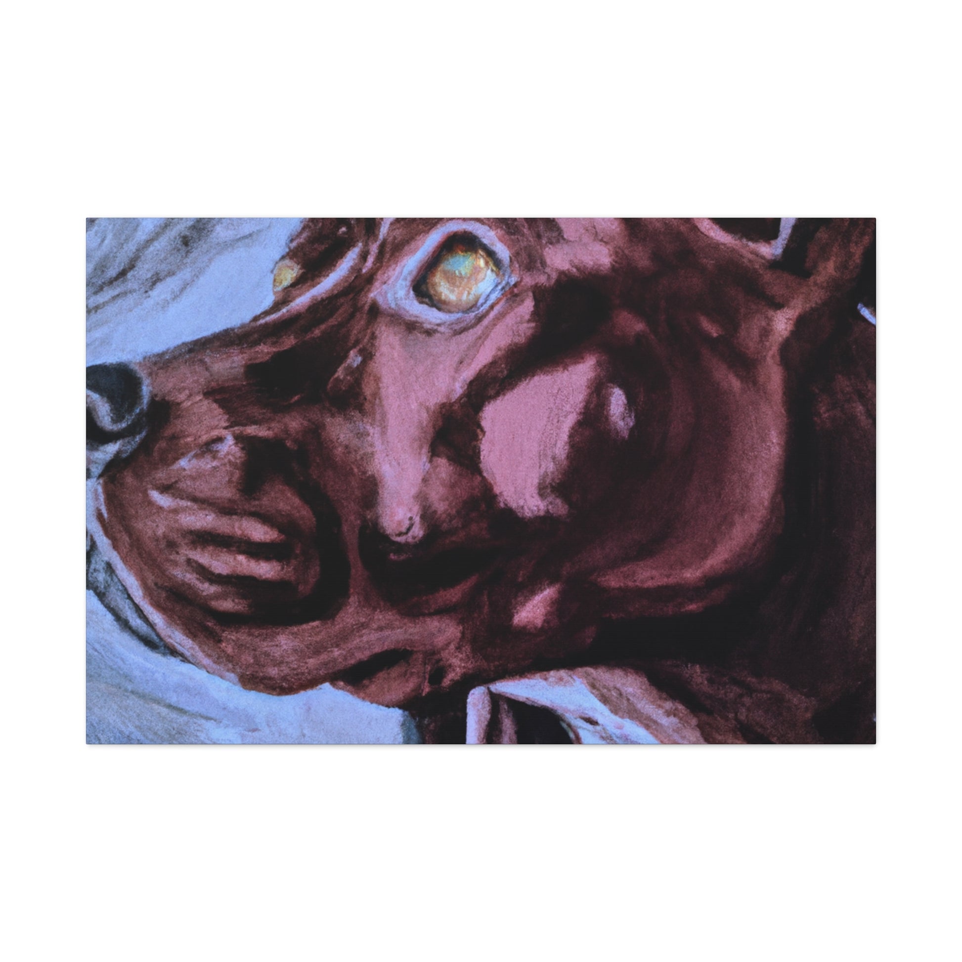 This classic abstract painting paints a story with its vibrant colors. Right in focus is a young brown pit bull looking longingly out the window, his life-filled eyes piercing the hazy background. The abstract shapes and swirls of bright colors encapsulate the energy of the pup, and provide the perfect contrast to the sole focus of the piece. #abstract #painting #canvas #art #dog #pitbull #brown #window #energy #vibrant #classy #hazy