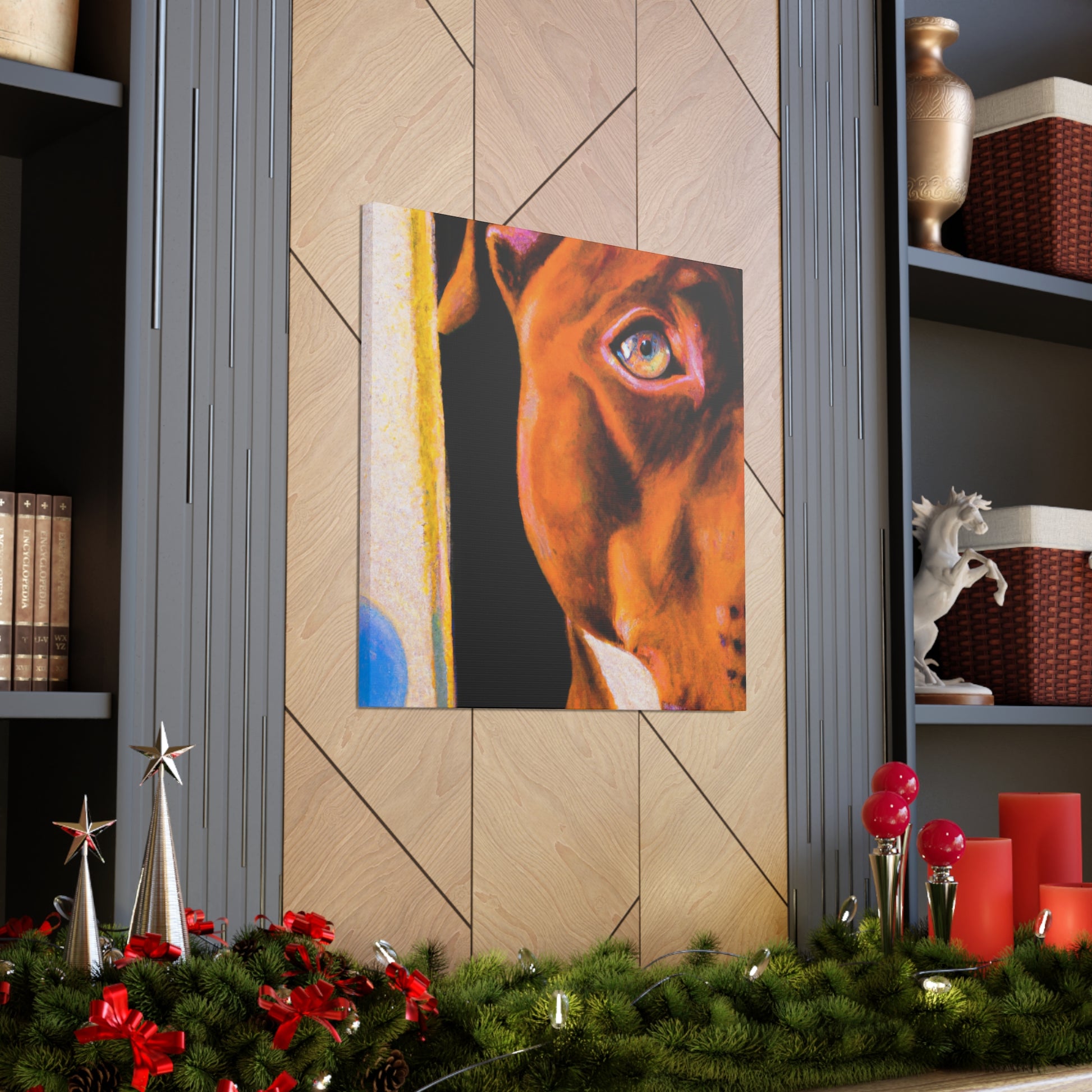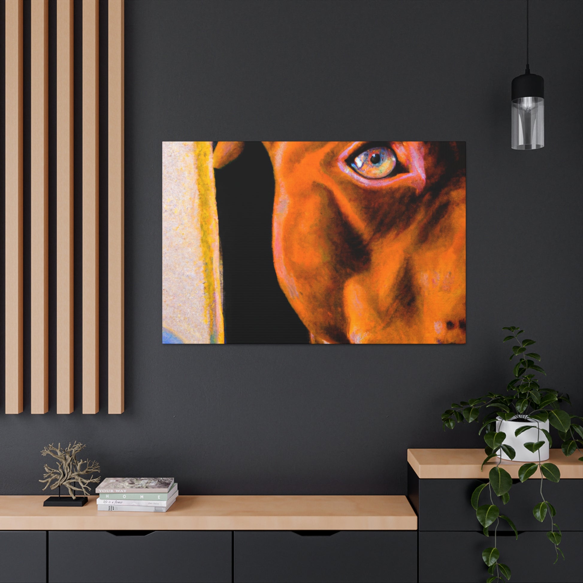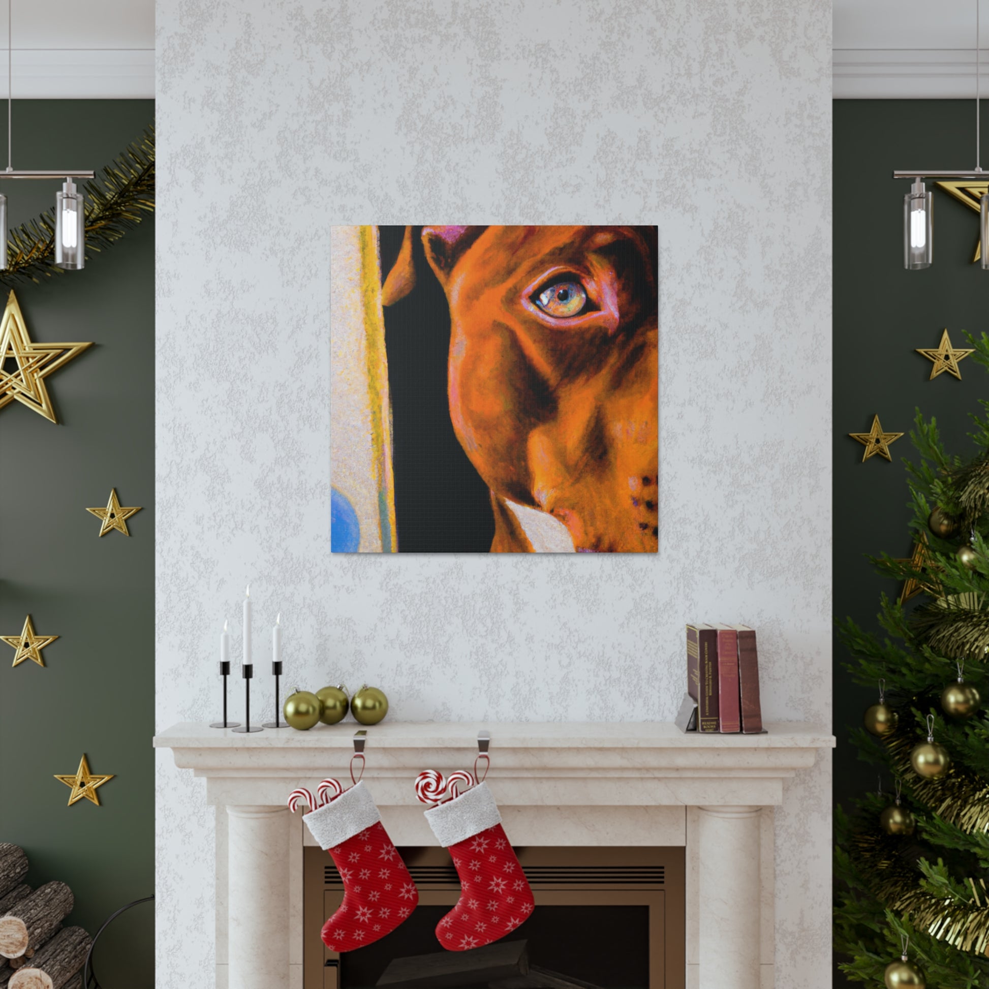 This surreal canvas is a beautiful representation of freedom and longing. The young brown pit bull peers out the window, with so much life in his eyes, while the abstract and trippy background swirls around him. Ready to hang, this piece is a must have to add a touch of class and whimsy to your home. #painting #abstractart #canvasart #sbstractdog #surrealart #brownpibull #pupsofig #dogart #homeart #freedom #longing