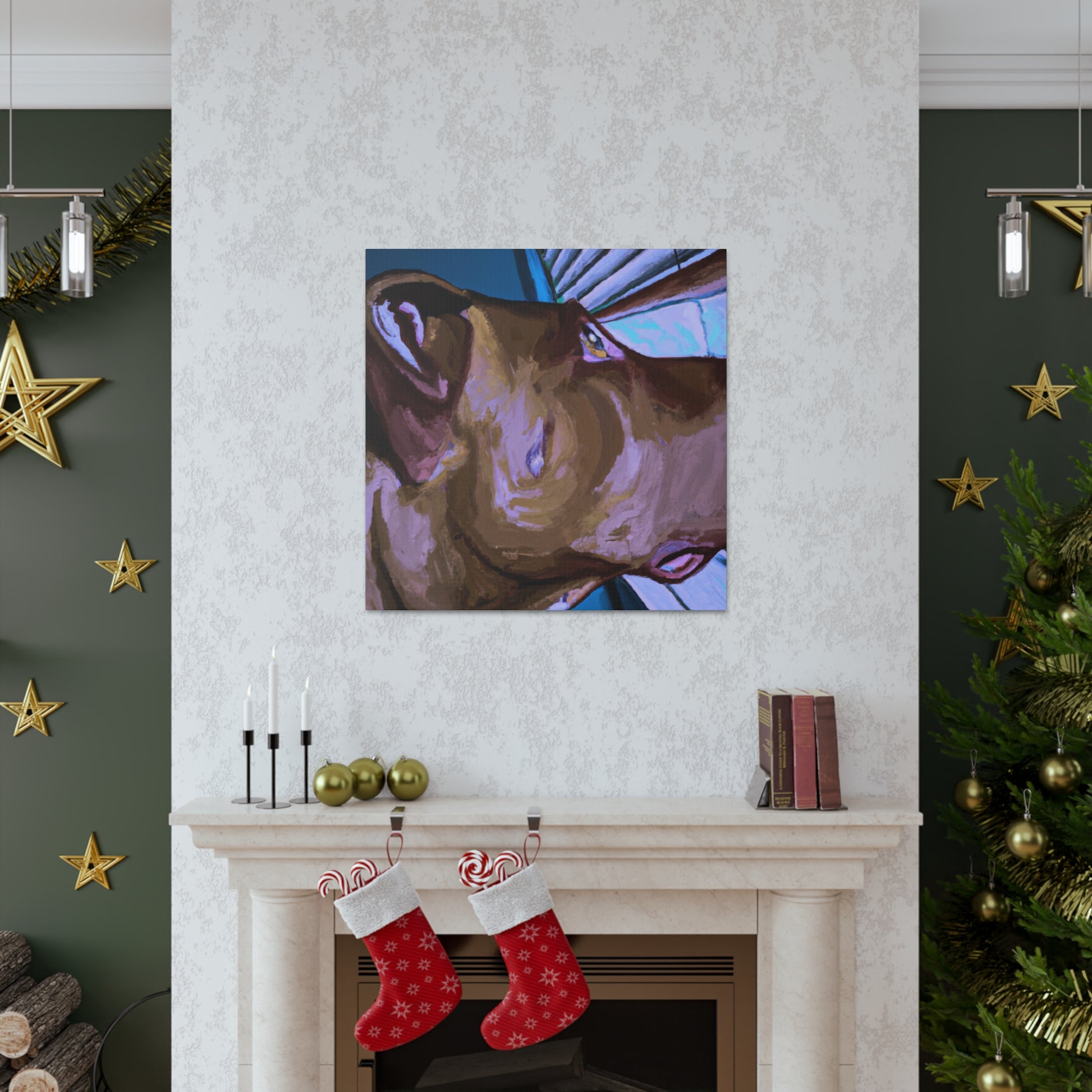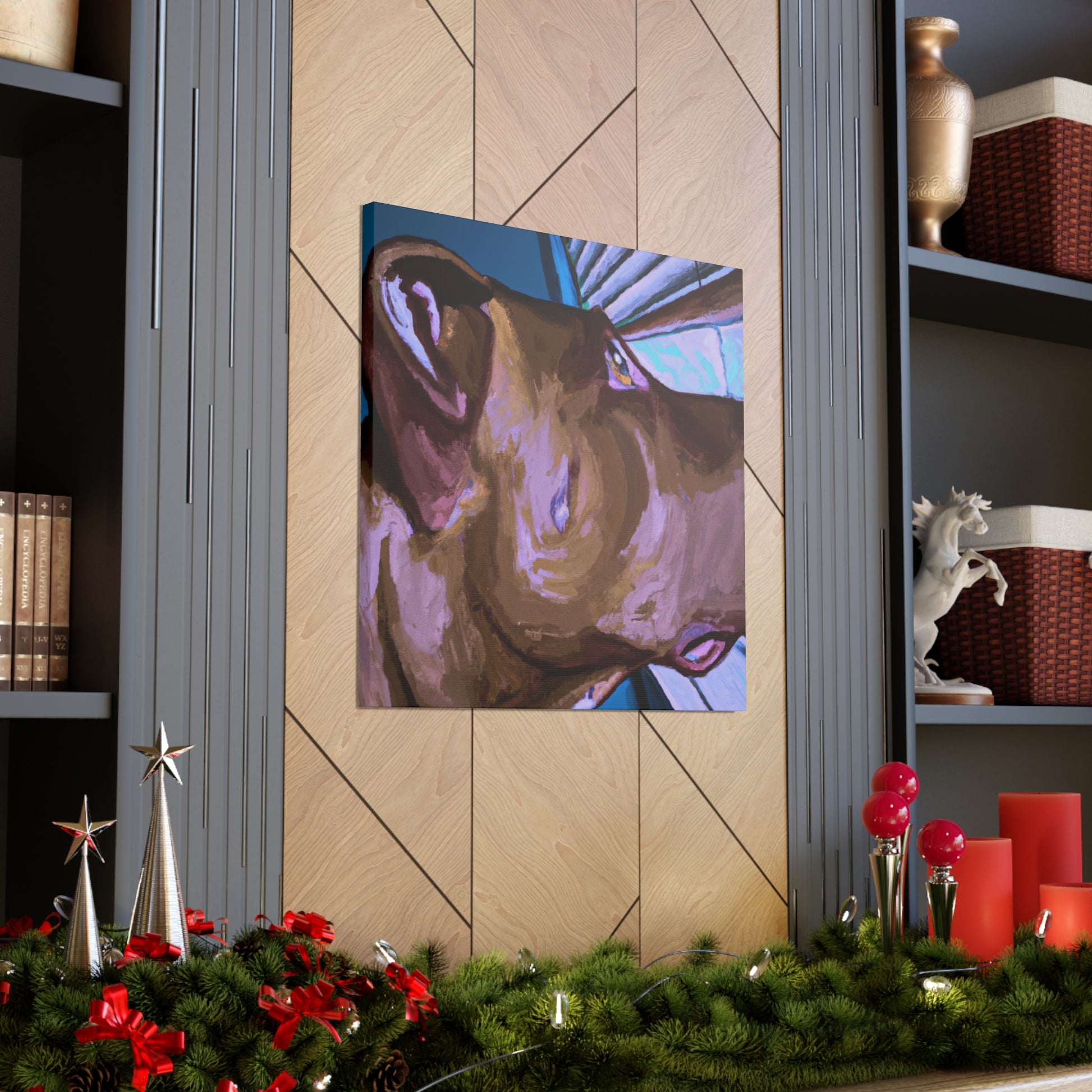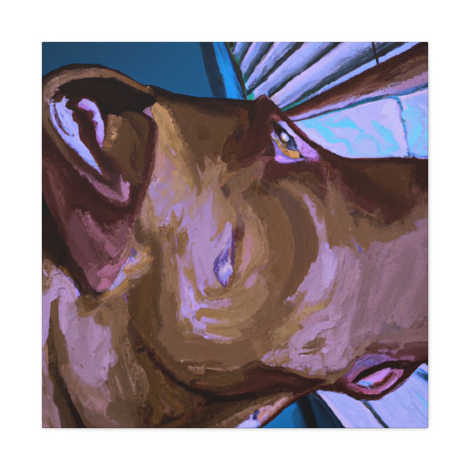 This abstract painting embraces the beauty of the unconditional bond between man and his best friend. The young brown pit bull looks longingly out a psychedelic window, his eyes alive and longing with the joy of life. Add this timeless piece to your home for a classy, yet unique touch. #abstractpainting #dogart #dogpaintings #canvasart #brownpitbull #psychedelicart #artwork #modernart #bondbetweenmananddogh #timelessart #doglovers #dogsmatter