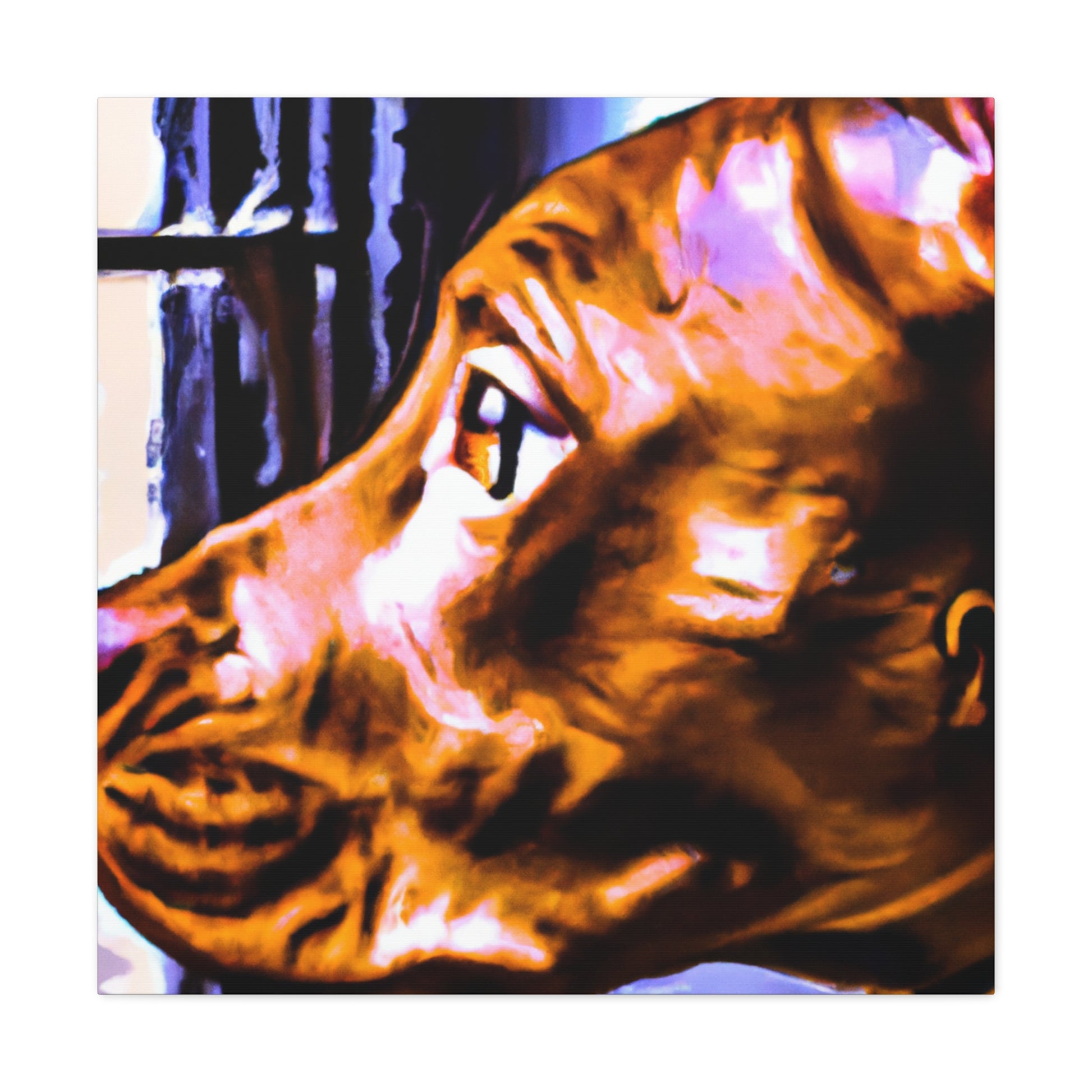 This abstract painting captivates the innocence of a young pit bull looking out the window. Brought to life with endless swirls of blues, greens, and yellows, and a hint of subtle brushstrokes on the walls. The focus of our attention is on the pit bull, his face full of life framed with bright colors. You can’t look away. #animalart #paintart #canvaspainting #abstractart #brownpitbull #youngdog #eyedog #trippycolors #realismart #wallart #windowart